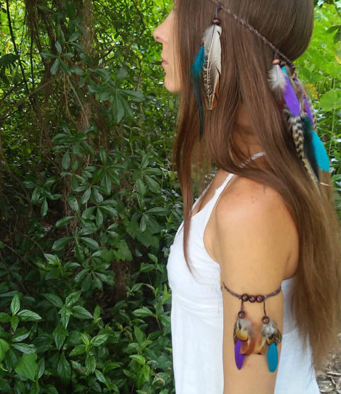 波西米亚风羽毛臂链臂环手臂装饰品胳膊非洲印第安人部落挂件配饰