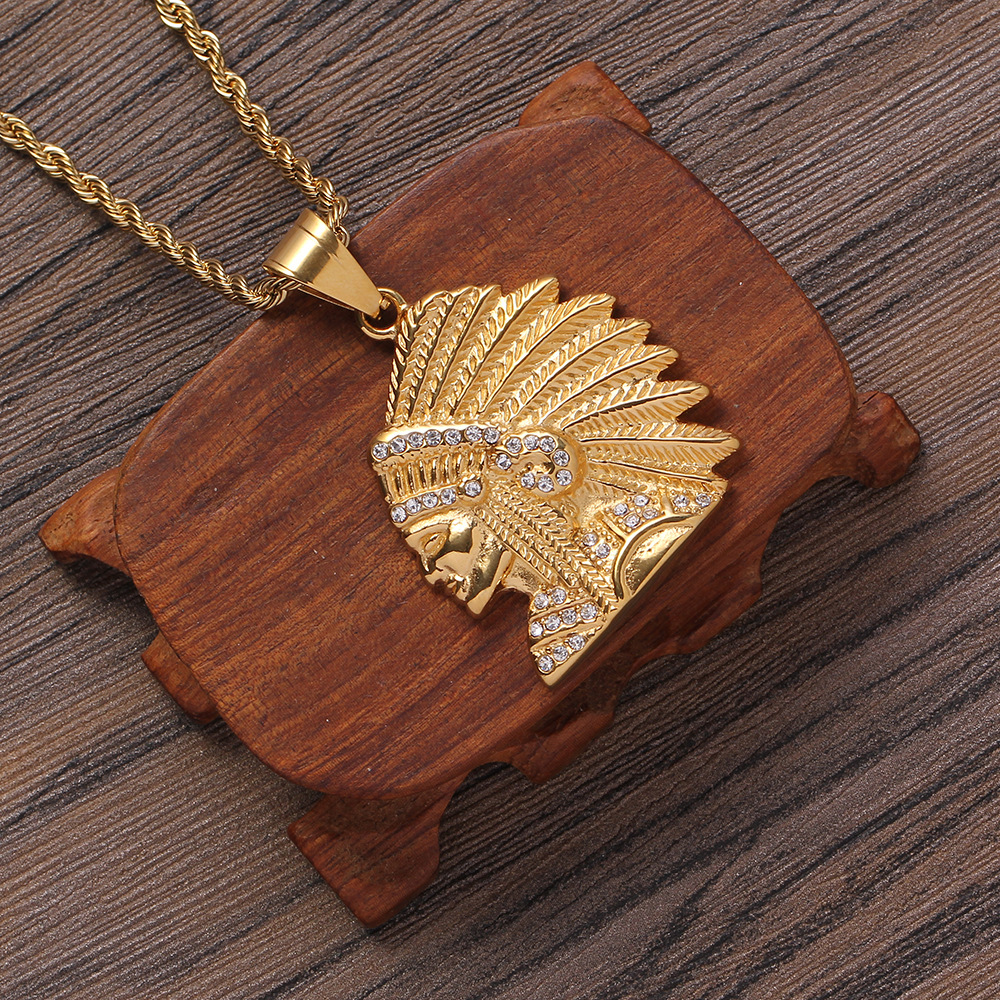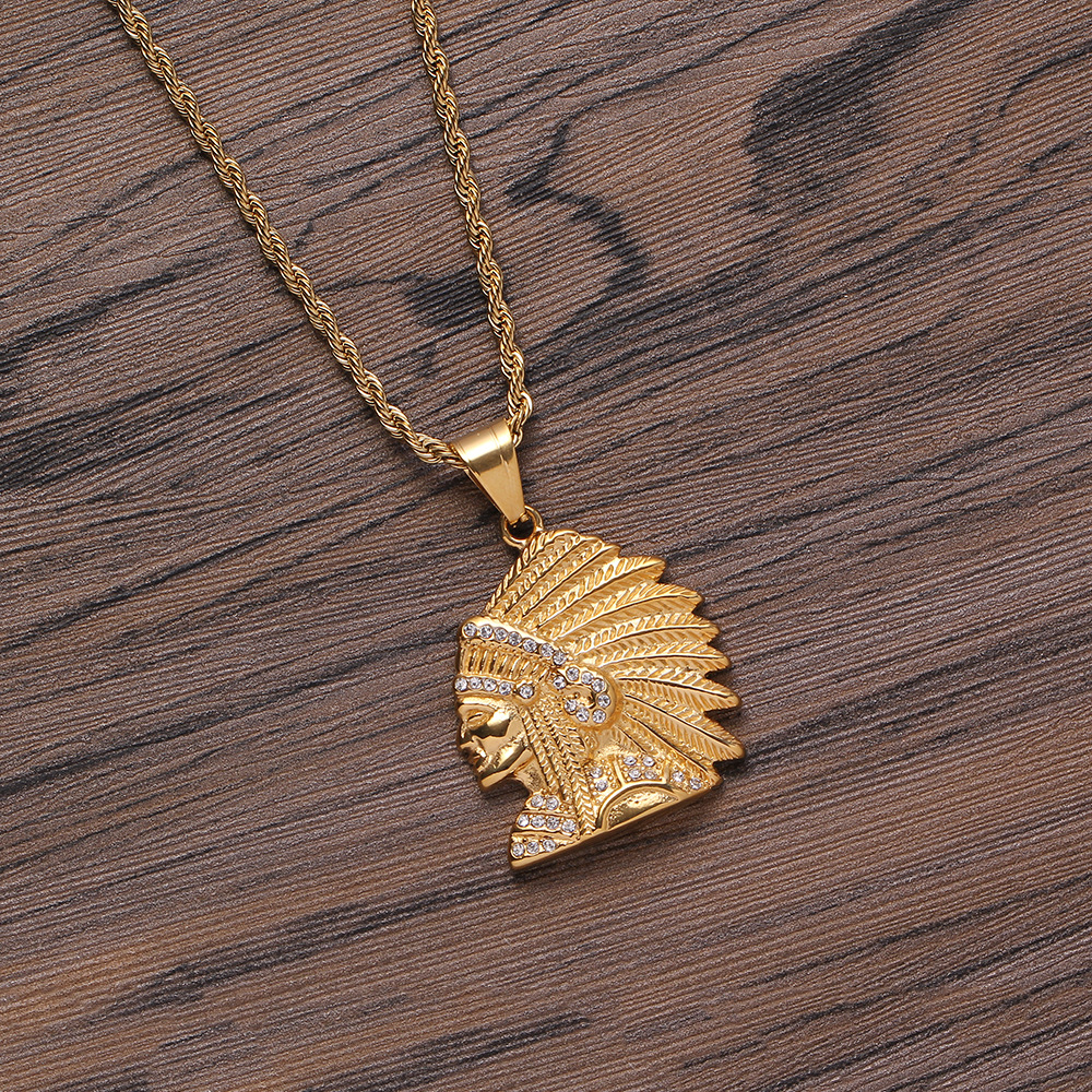 不锈钢材质 古埃及部落人头像吊坠 嘻哈饰品项链