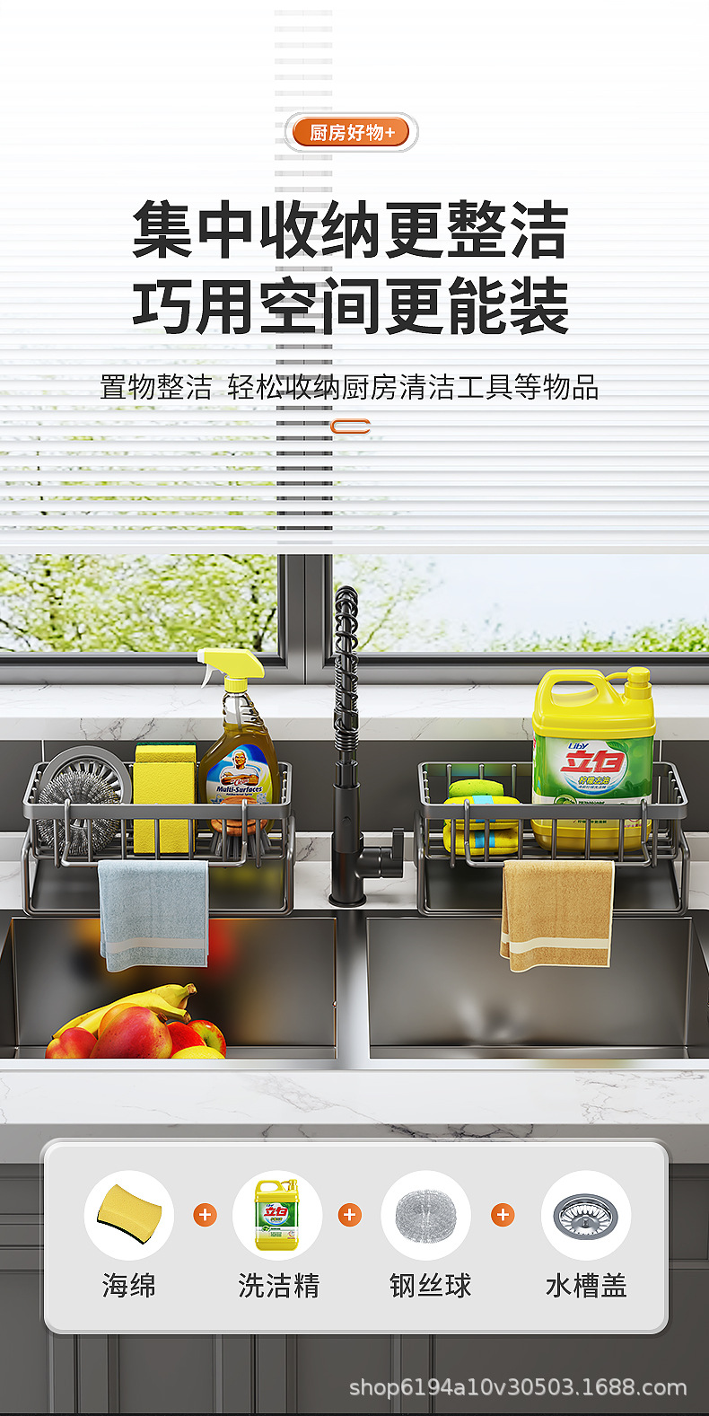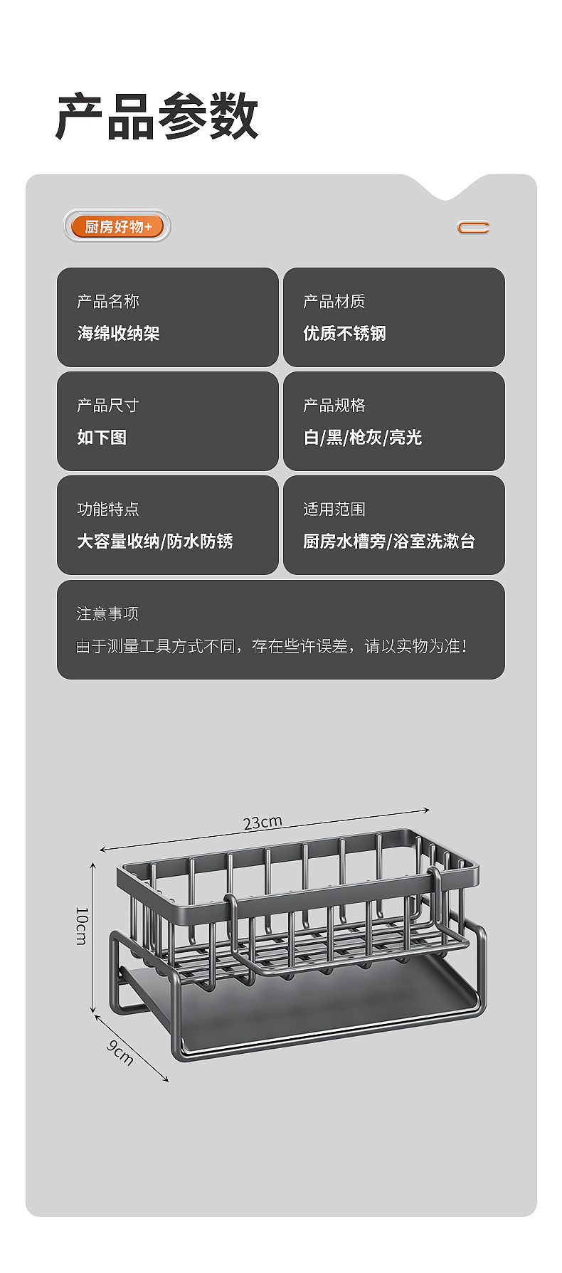 厨房置物架清洁棉抹布架厨房置物架水槽沥水架海绵收纳架