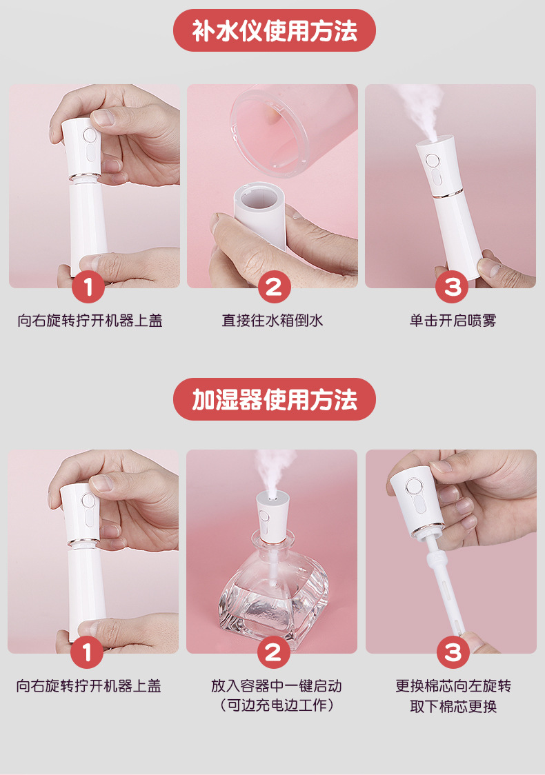 小蛮腰二合一加湿器迷你小型便携式充电款手持喷雾脸部美容补水仪