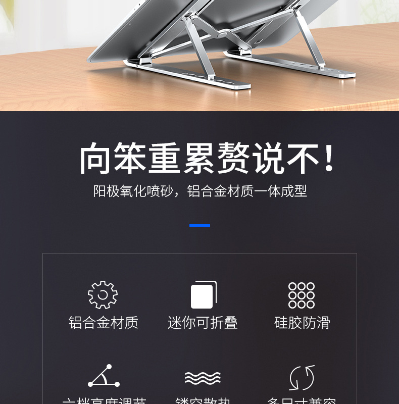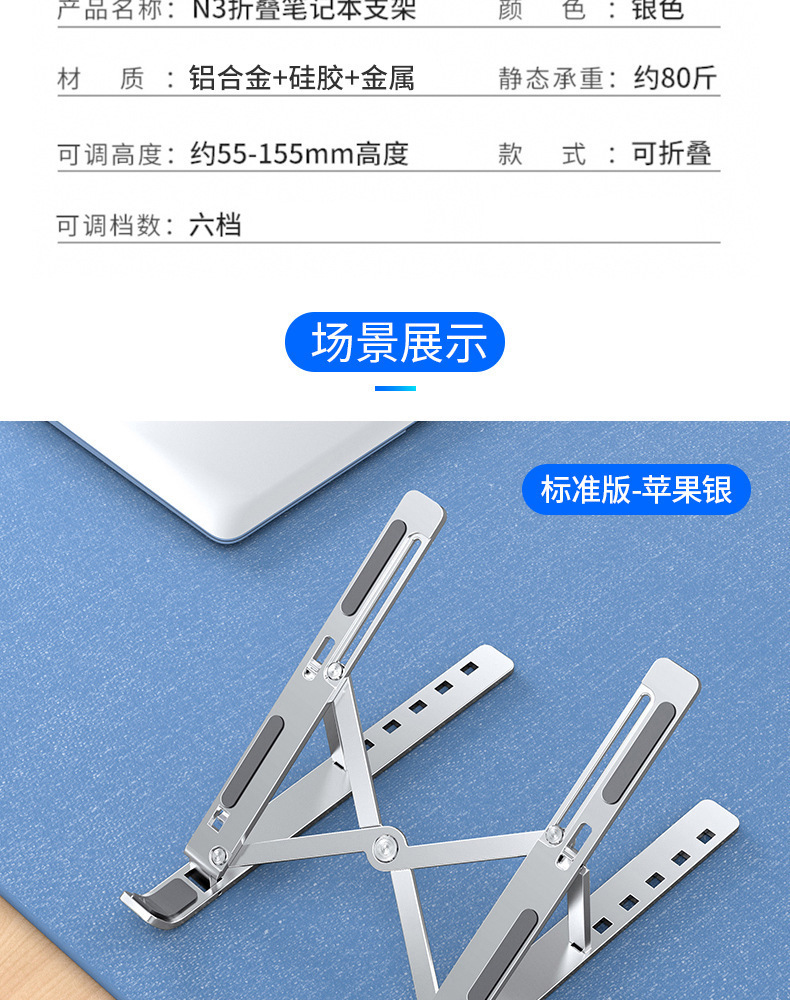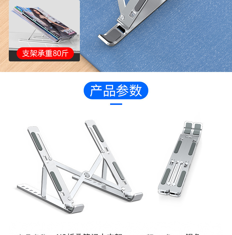 N3笔记本支架 铝合金平板电脑桌面升降托架散热折叠便携收纳底座