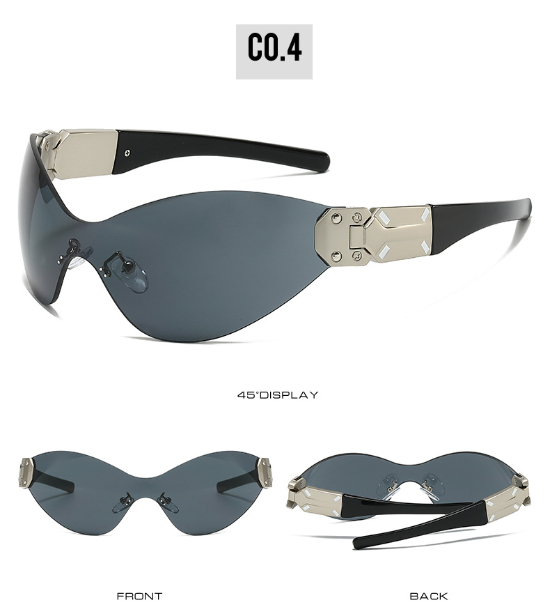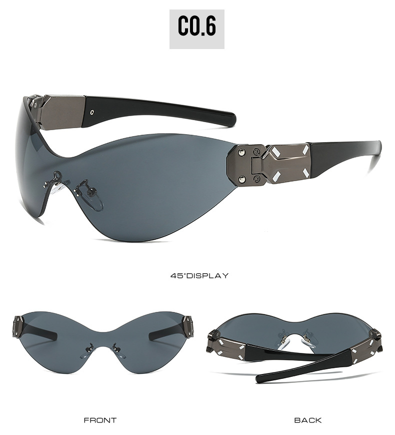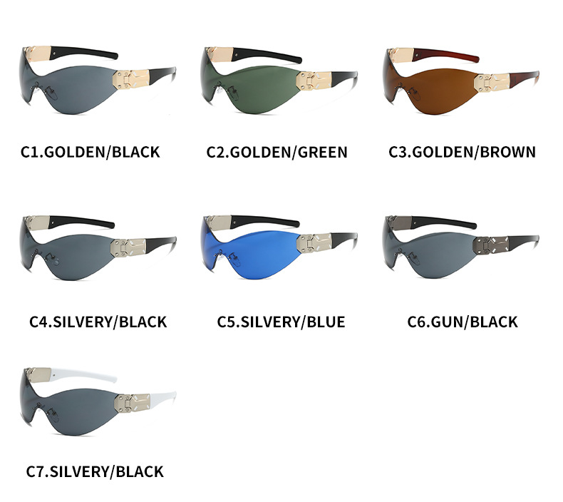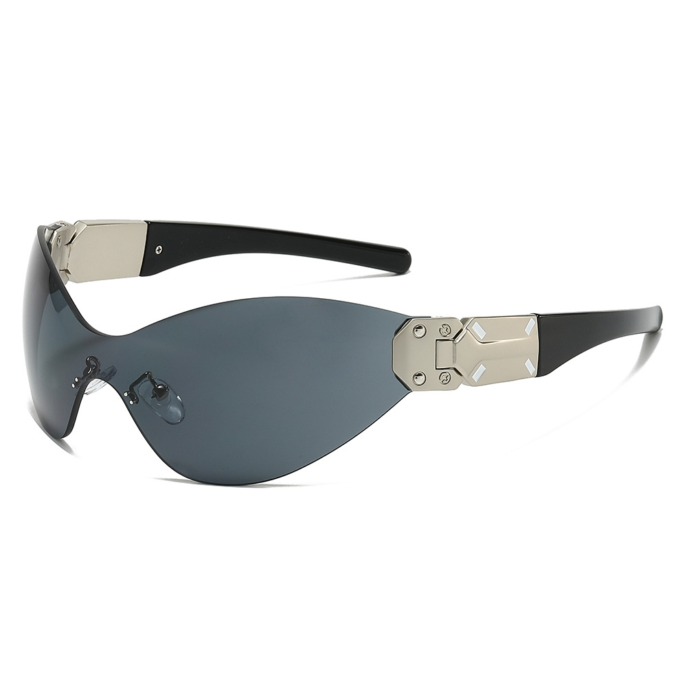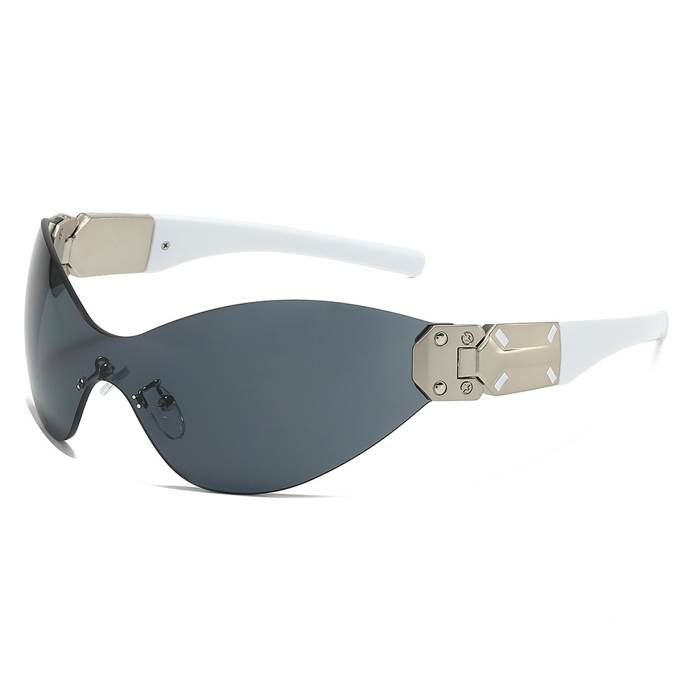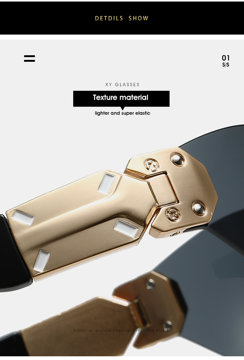 2024跨境专供一体方形墨镜女摩登复古镜腿呈跳跃造型装饰太阳镜女
