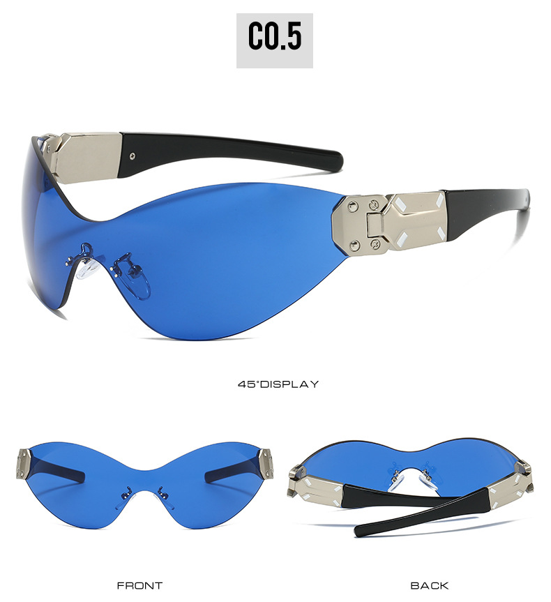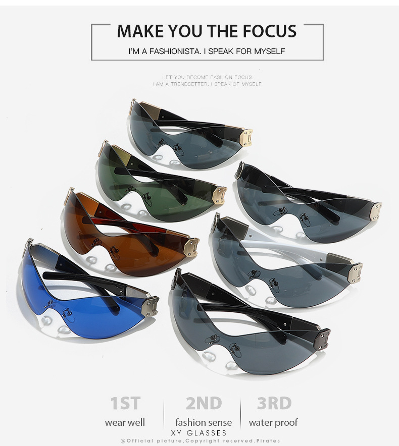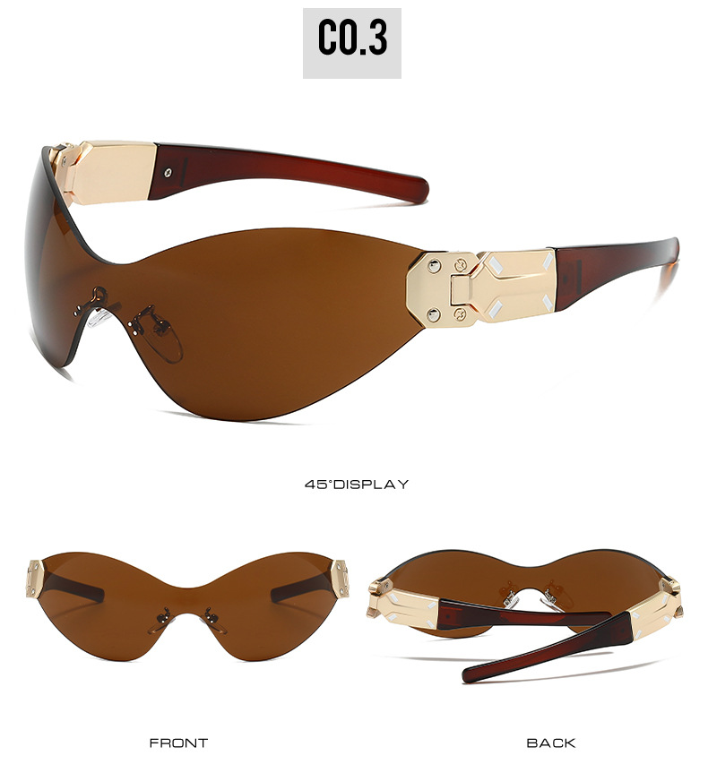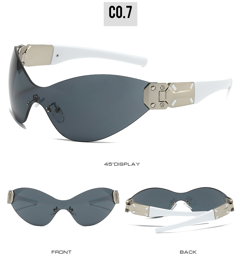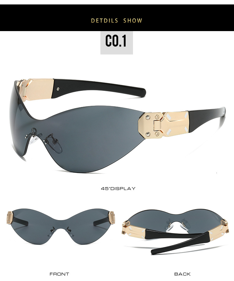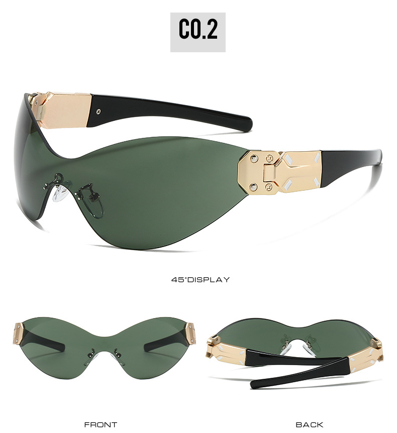 2024跨境专供一体方形墨镜女摩登复古镜腿呈跳跃造型装饰太阳镜女
