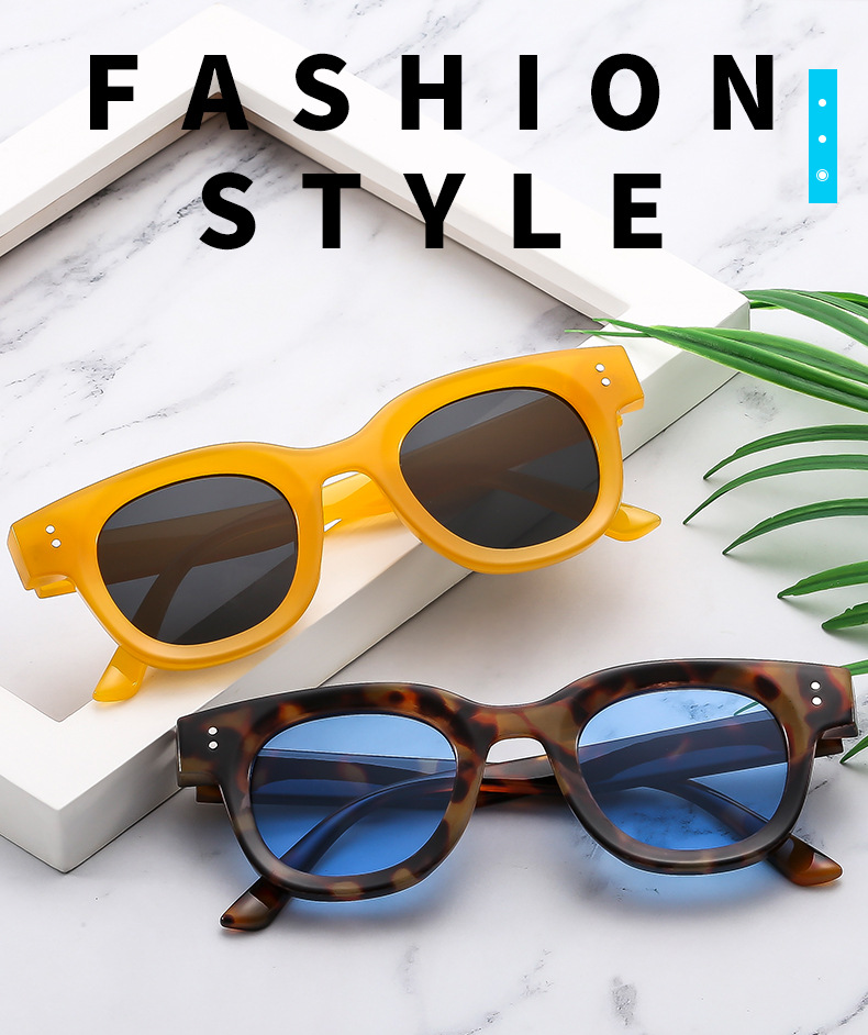 2024跨境新款太阳镜海洋片复古椭圆框加厚小框时尚墨镜女太阳眼镜