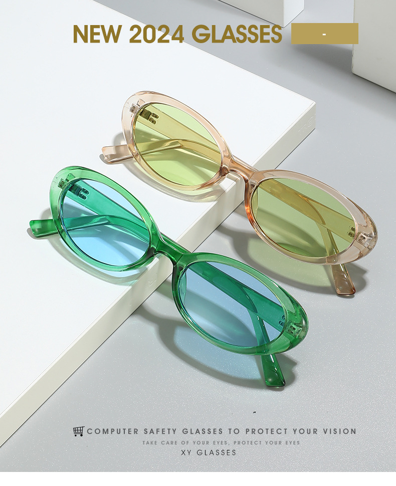 24年爆款复古椭圆小框个性太阳镜跨境欧美亚马逊希音热销太阳眼镜
