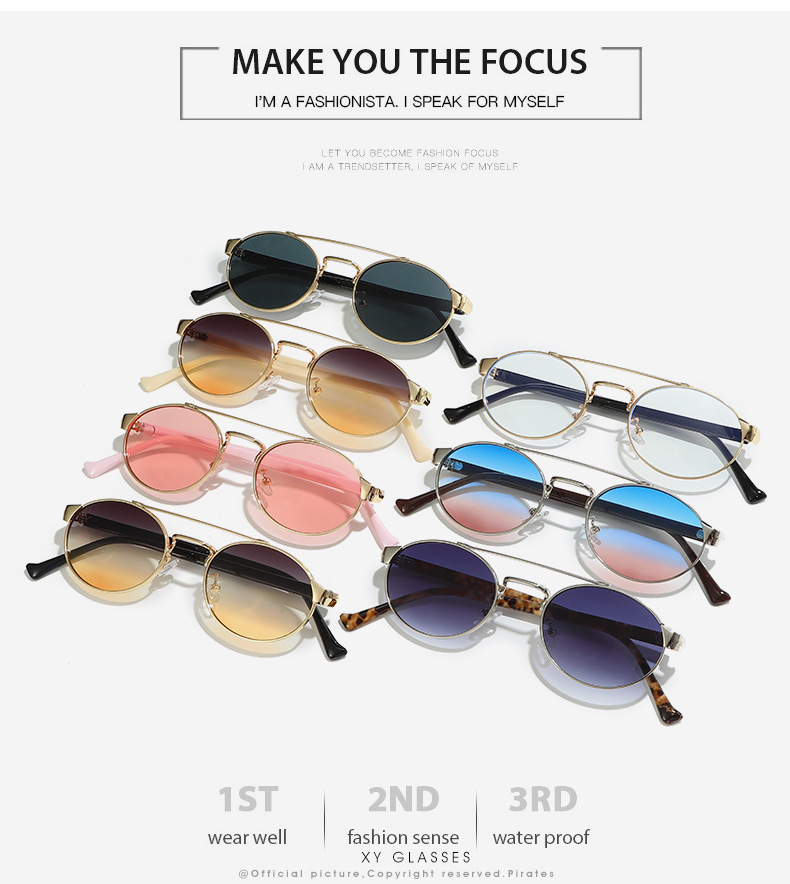 2024跨境新款双梁太阳镜 欧美个性椭圆网红百搭外贸爆款简约墨镜