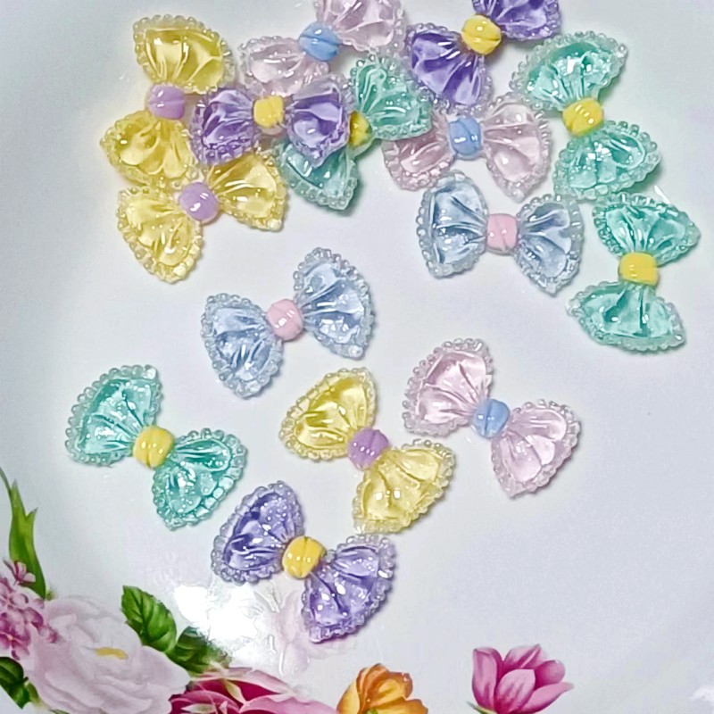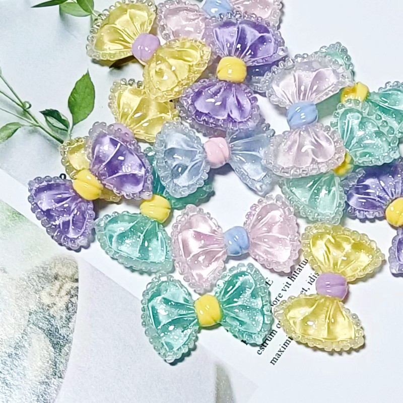 透明色蝴蝶结树脂饰品配饰diy发夹手机壳服饰数据线装饰配件贴片
