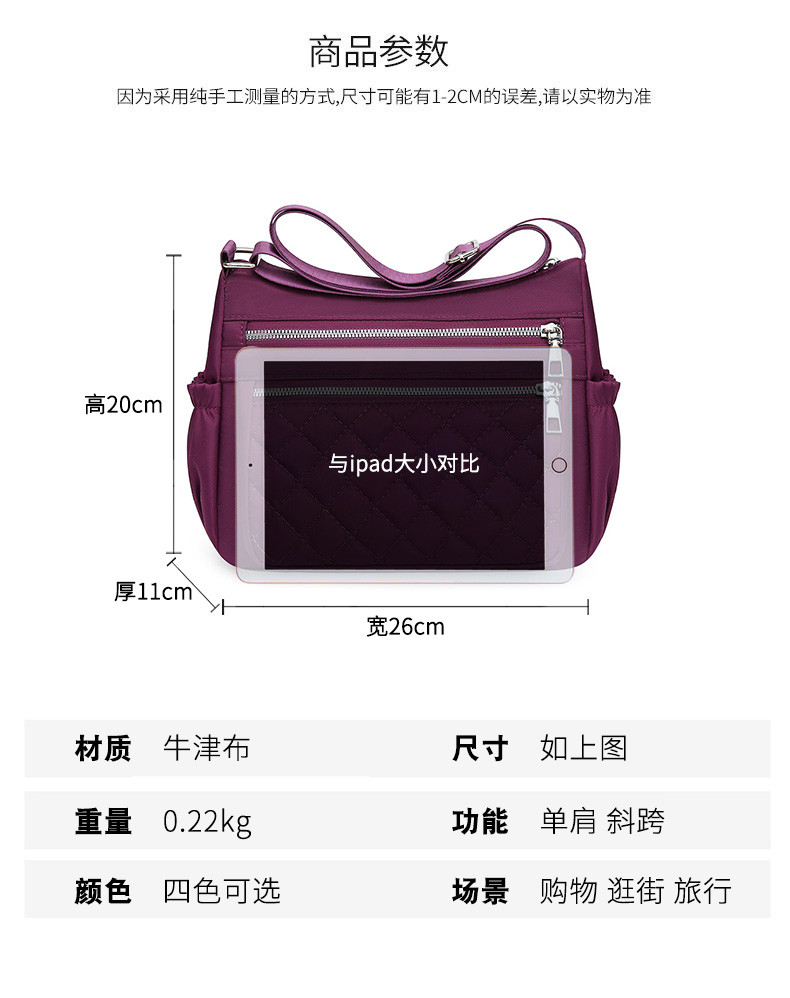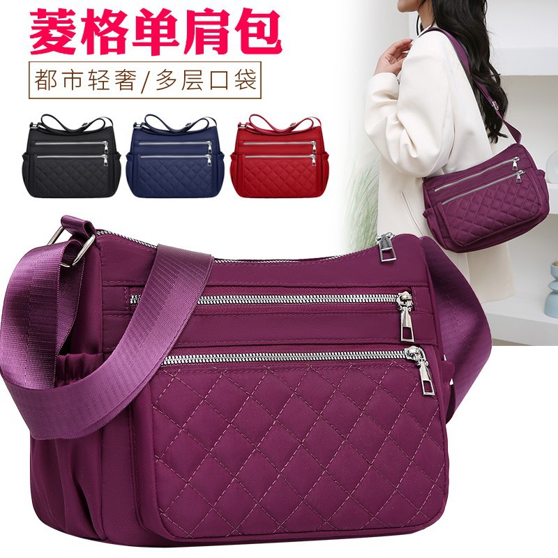 休闲尼龙布斜挎包女新款潮中年女包包单肩妈妈包多兜潮流女包
