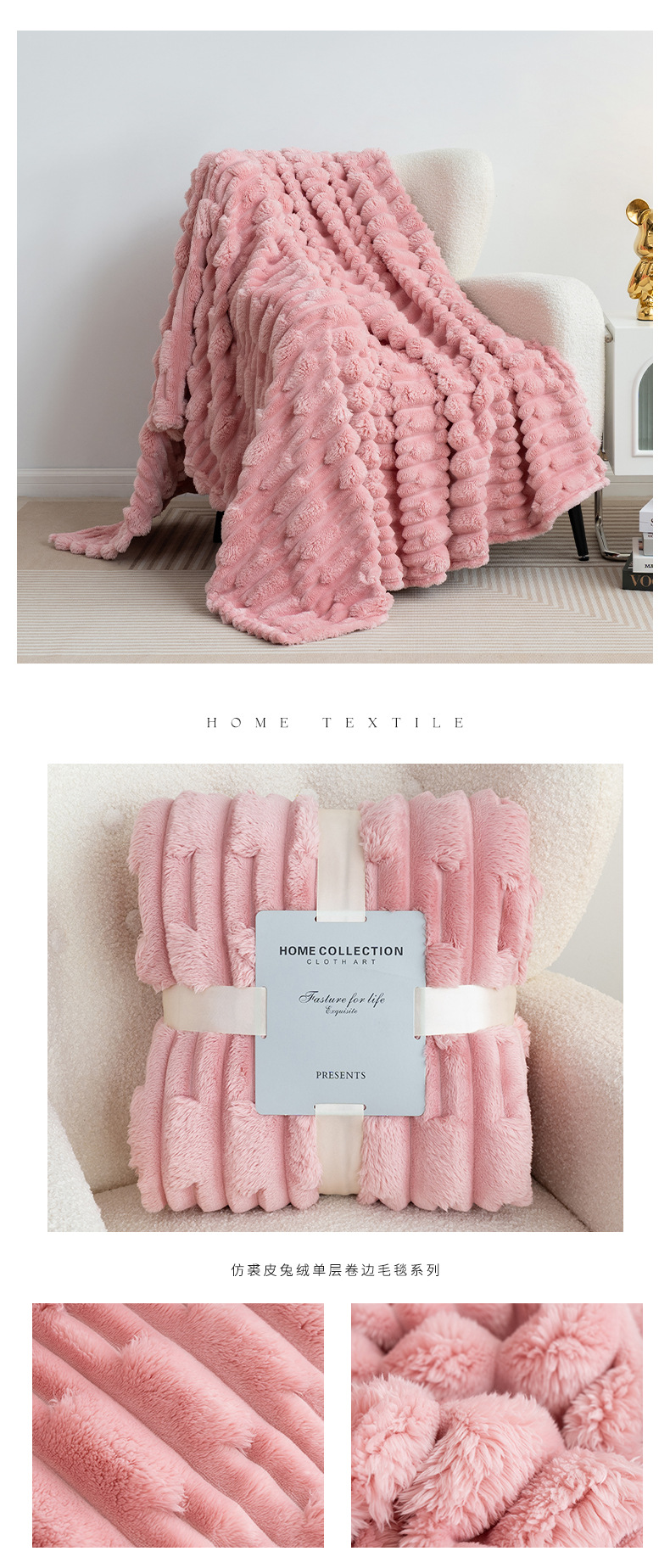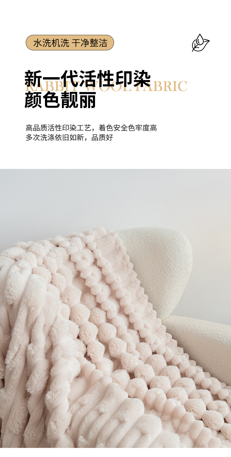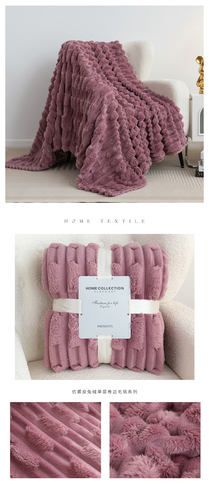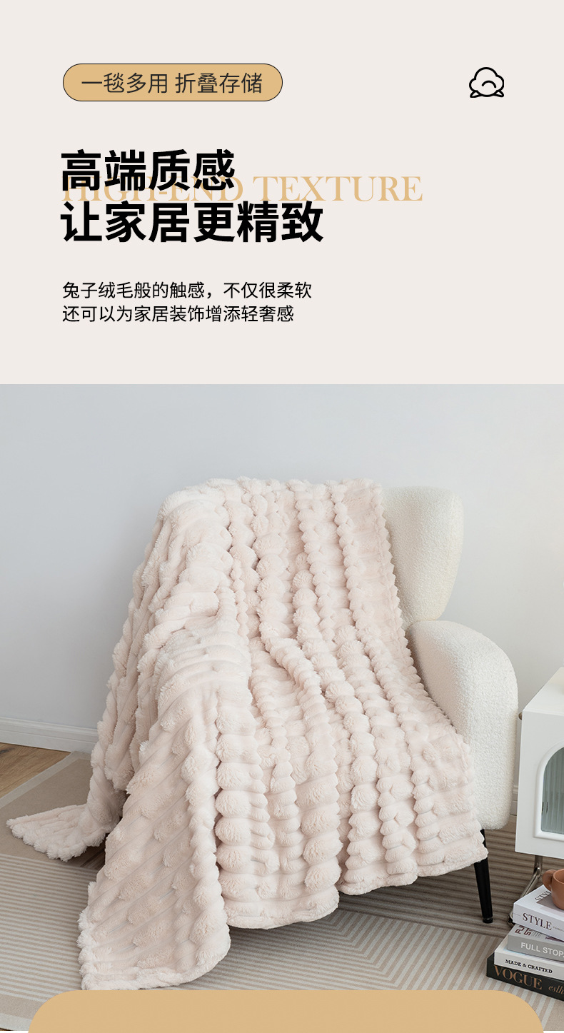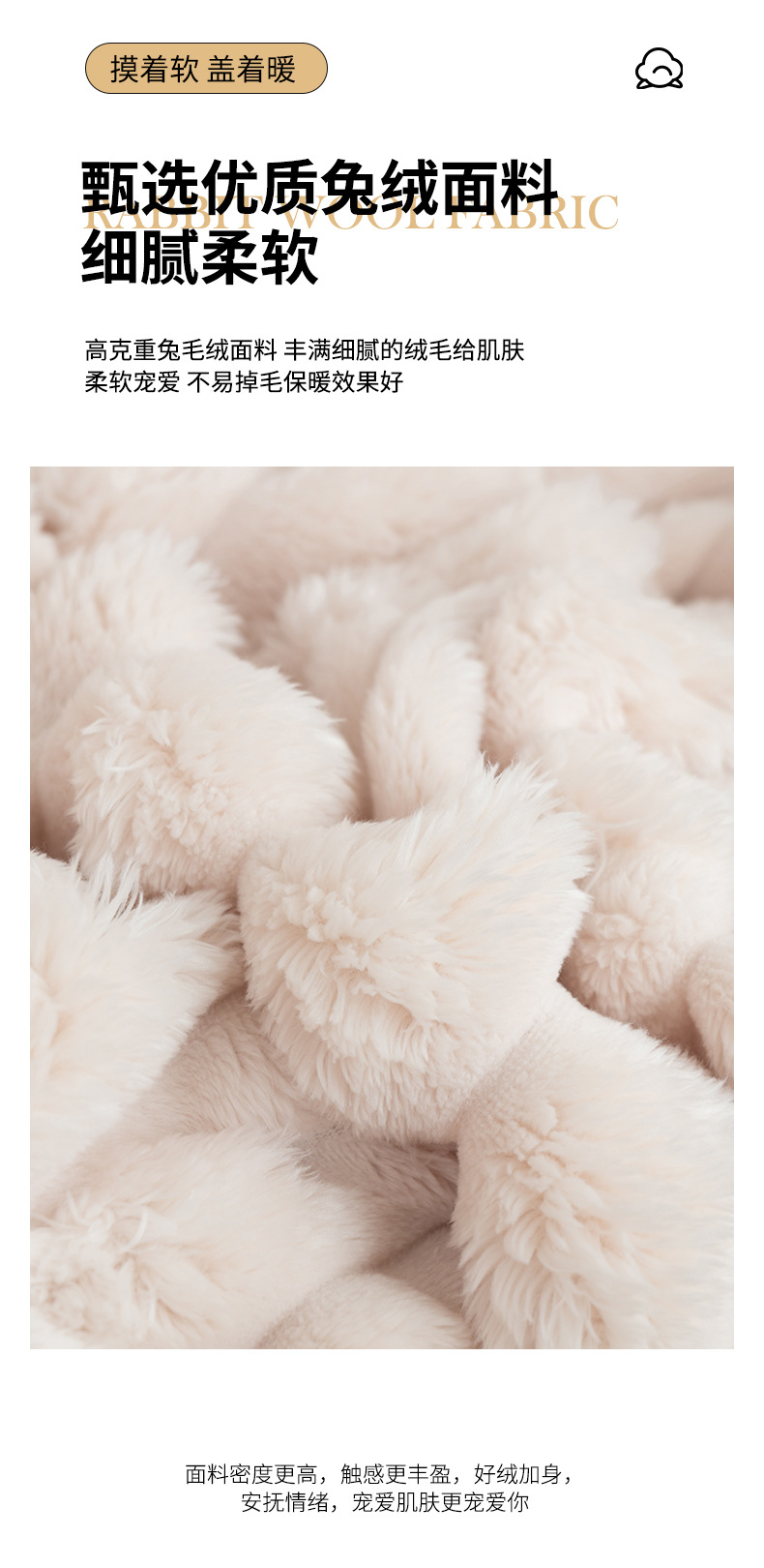 跨境加厚仿兔兔绒竹结绒毛毯办公室午睡盖毯法兰绒毯子亚马逊外贸