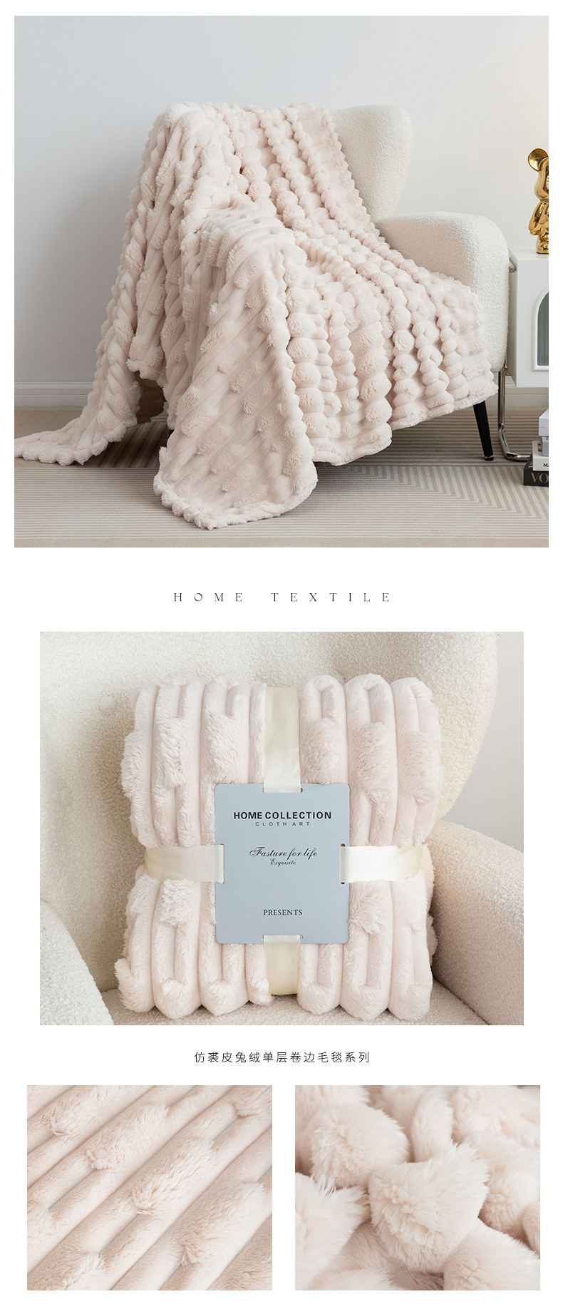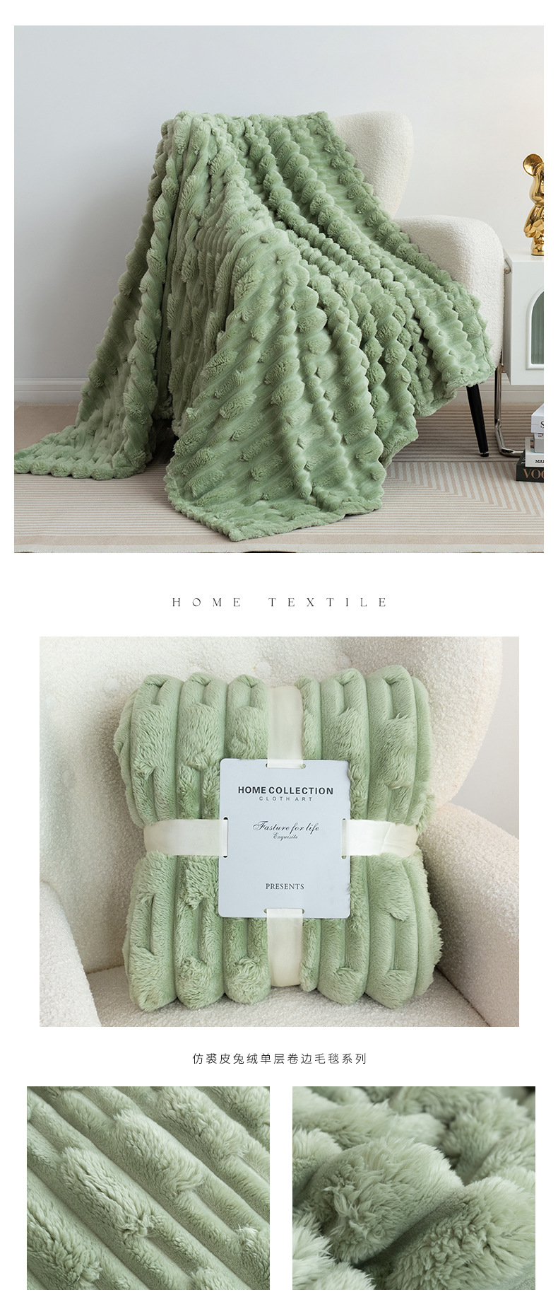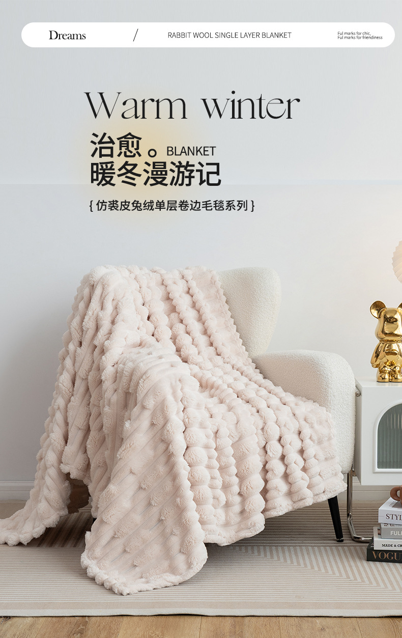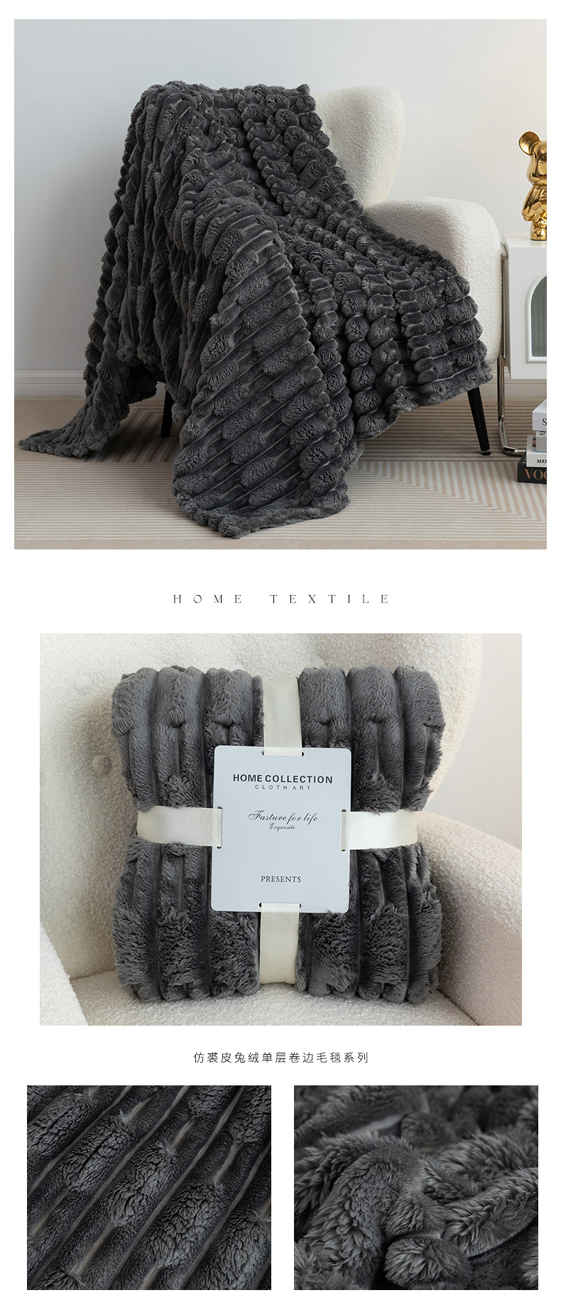 跨境加厚仿兔兔绒竹结绒毛毯办公室午睡盖毯法兰绒毯子亚马逊外贸
