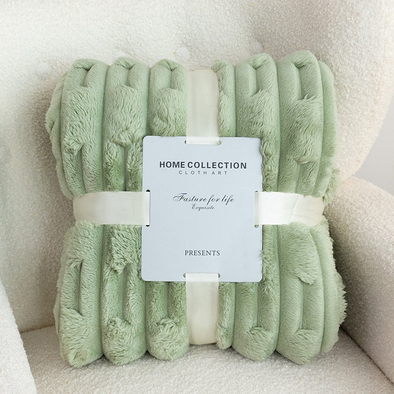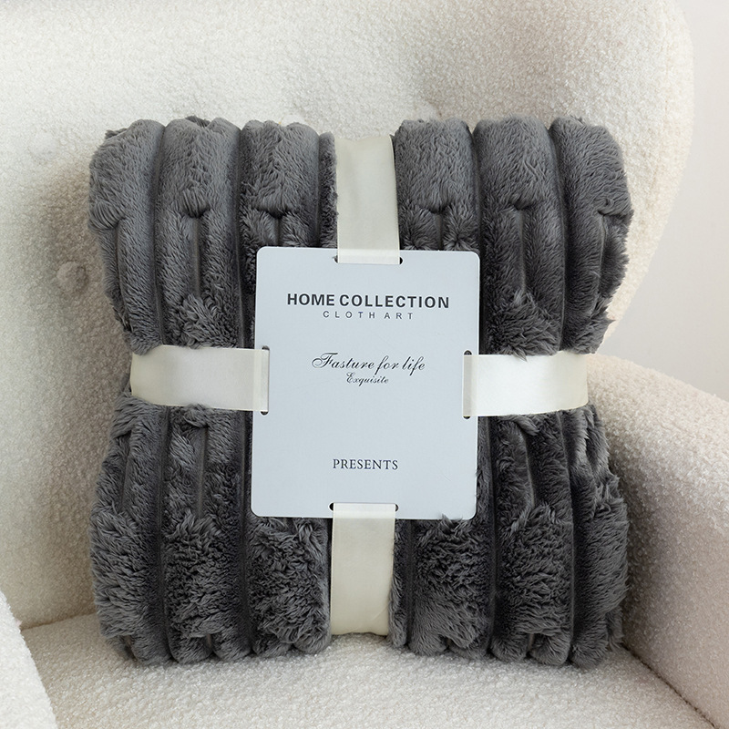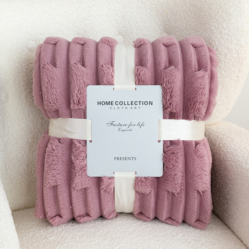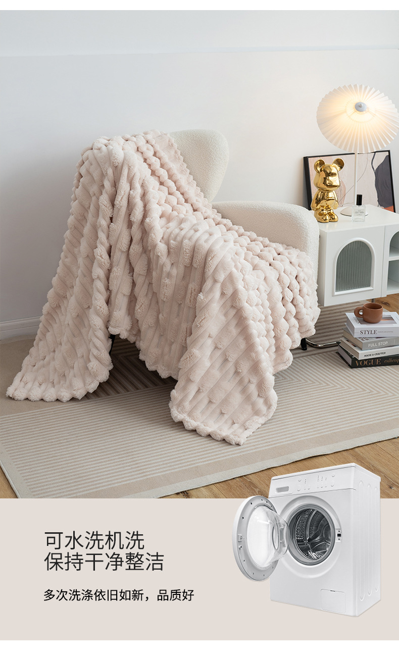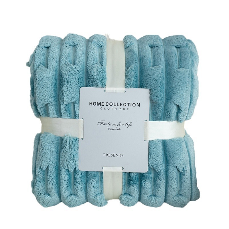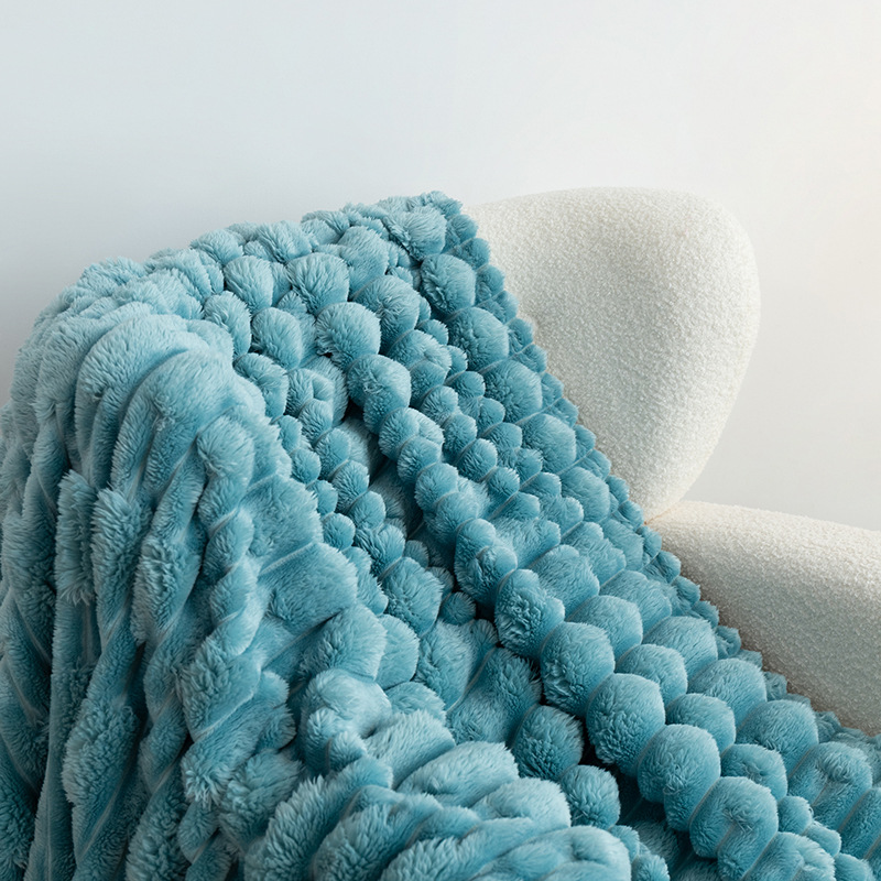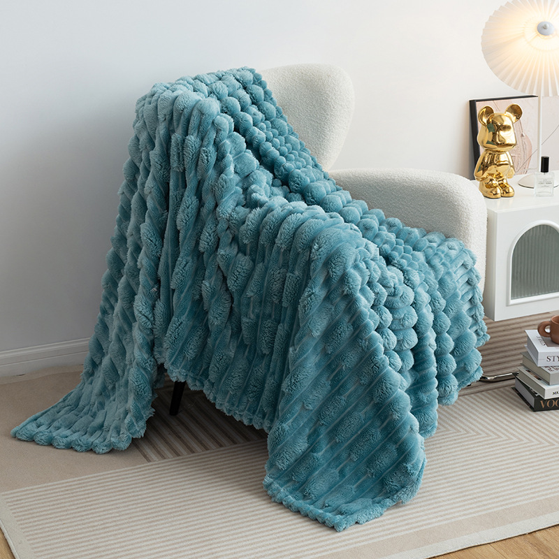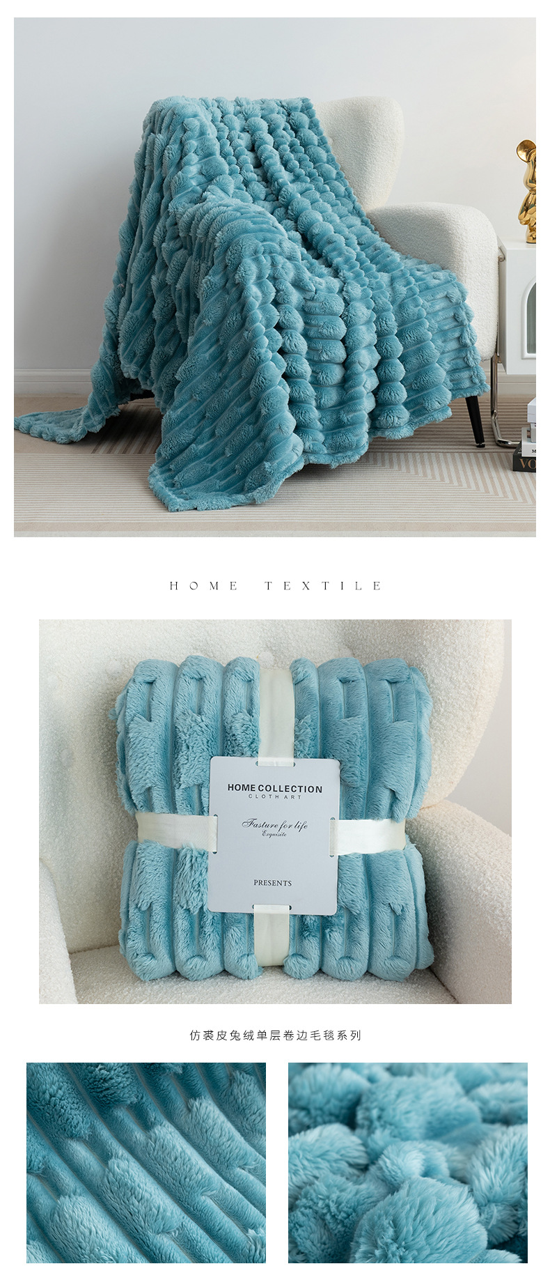 跨境加厚仿兔兔绒竹结绒毛毯办公室午睡盖毯法兰绒毯子亚马逊外贸
