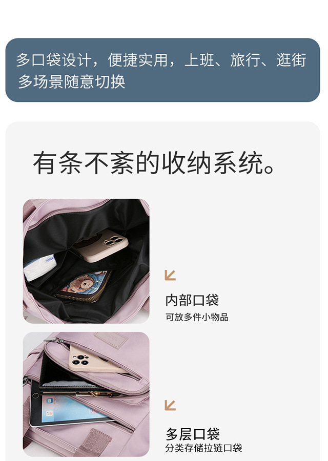 单肩斜挎帆布手提袋多分隔层妈咪外出遛娃上班潮流女包女小托特包