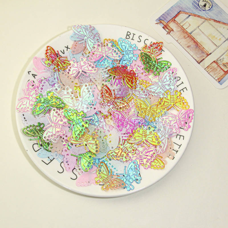 超声波压花蝴蝶DIY饰品配件双面AB幻彩蝴蝶结 芭比草娃娃装饰材料