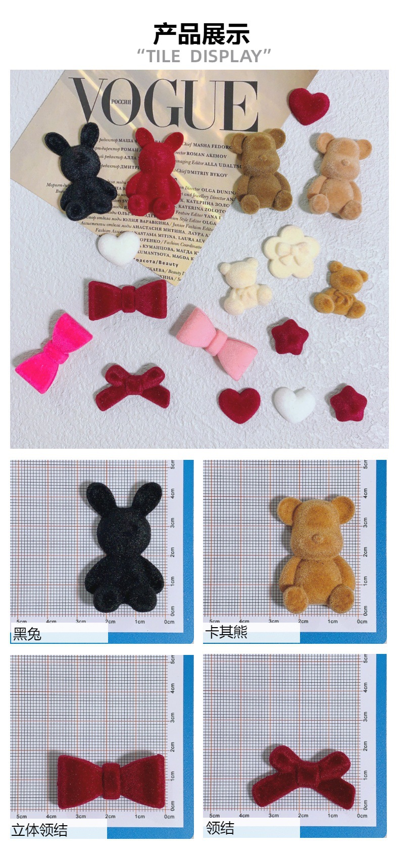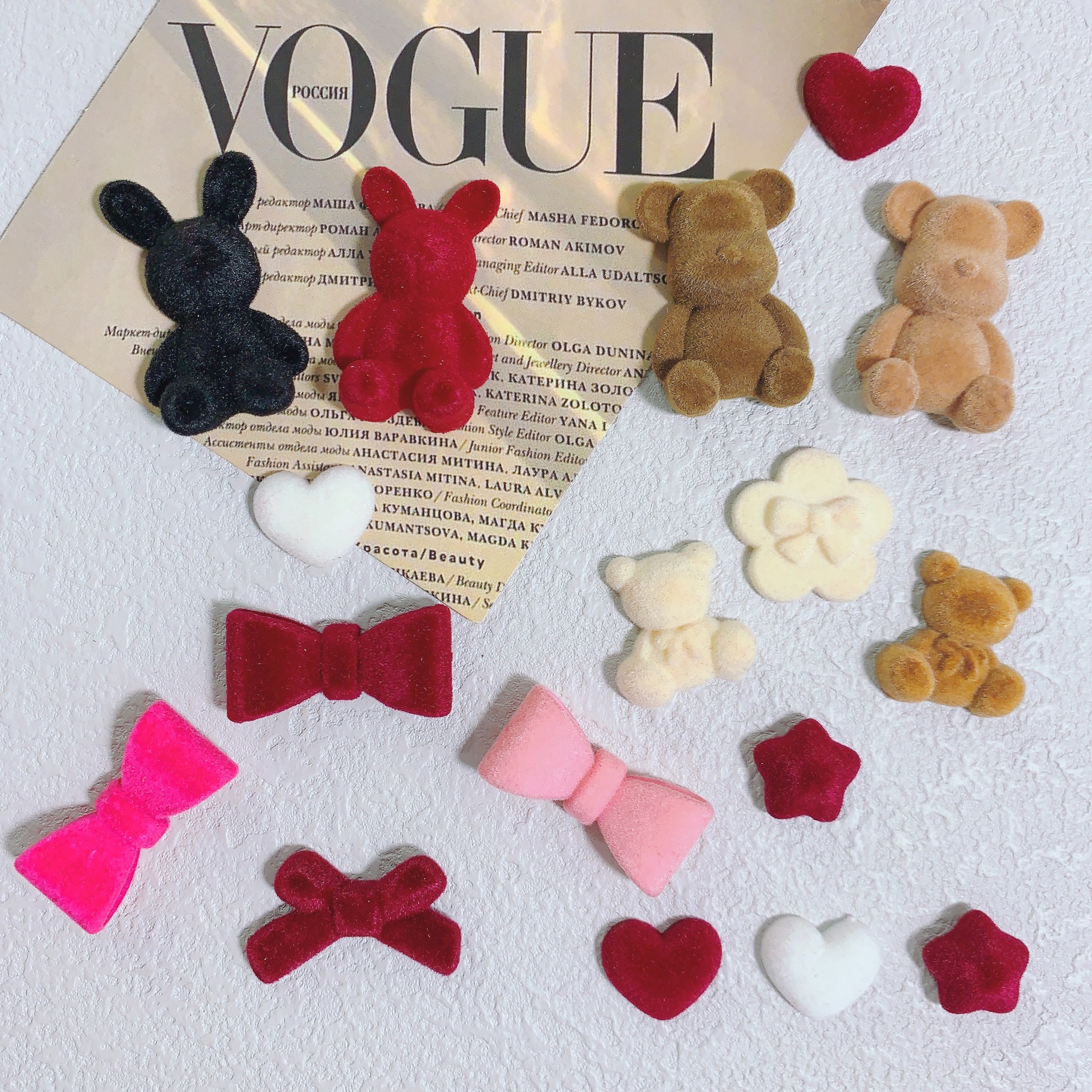 新款植绒红色花形蝴蝶结熊发夹DIY饰品手机壳鞋包贴片材料配件
