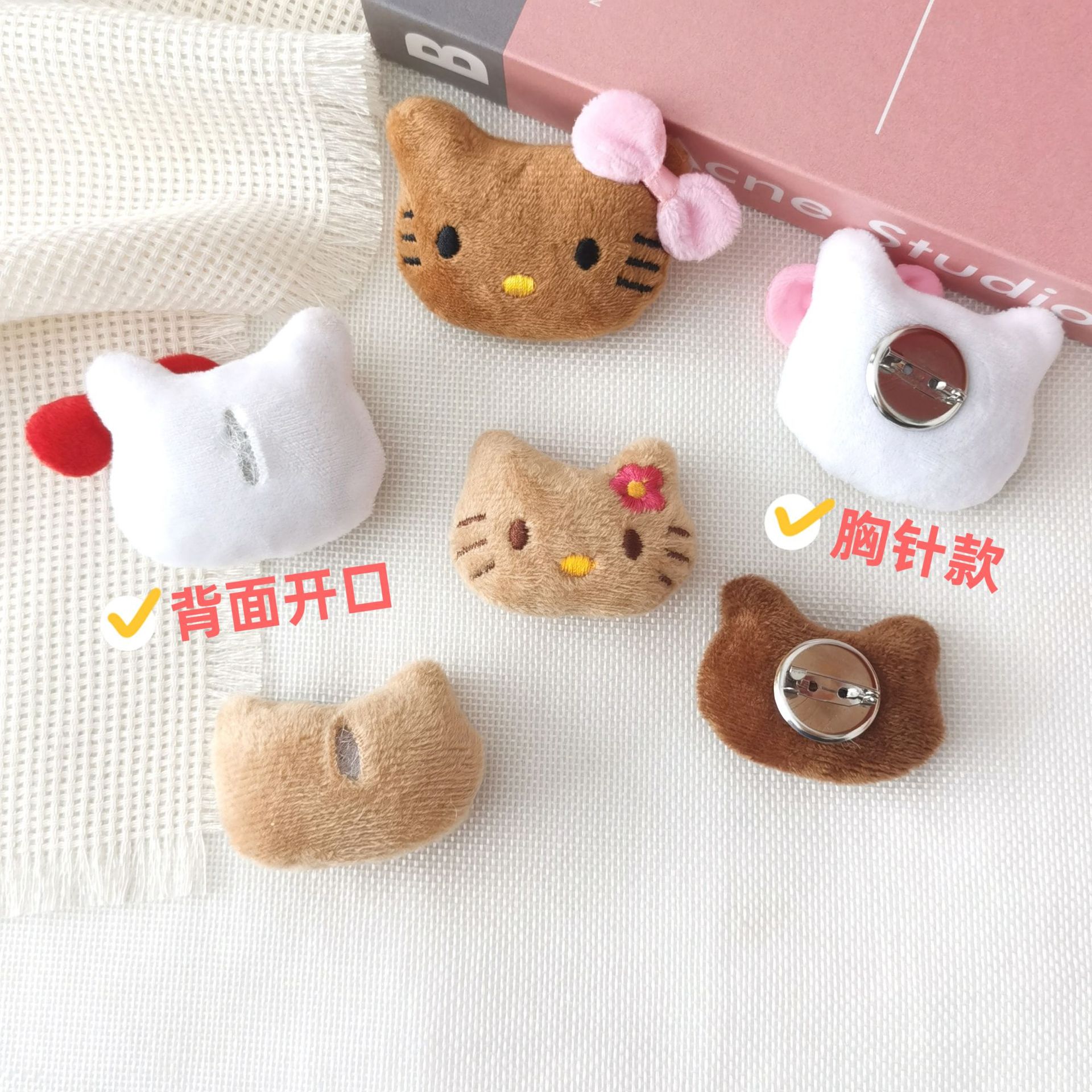 卡通毛绒KT猫配饰蝴蝶结小猫胸针头饰配件服装包包鞋袜手机壳辅料