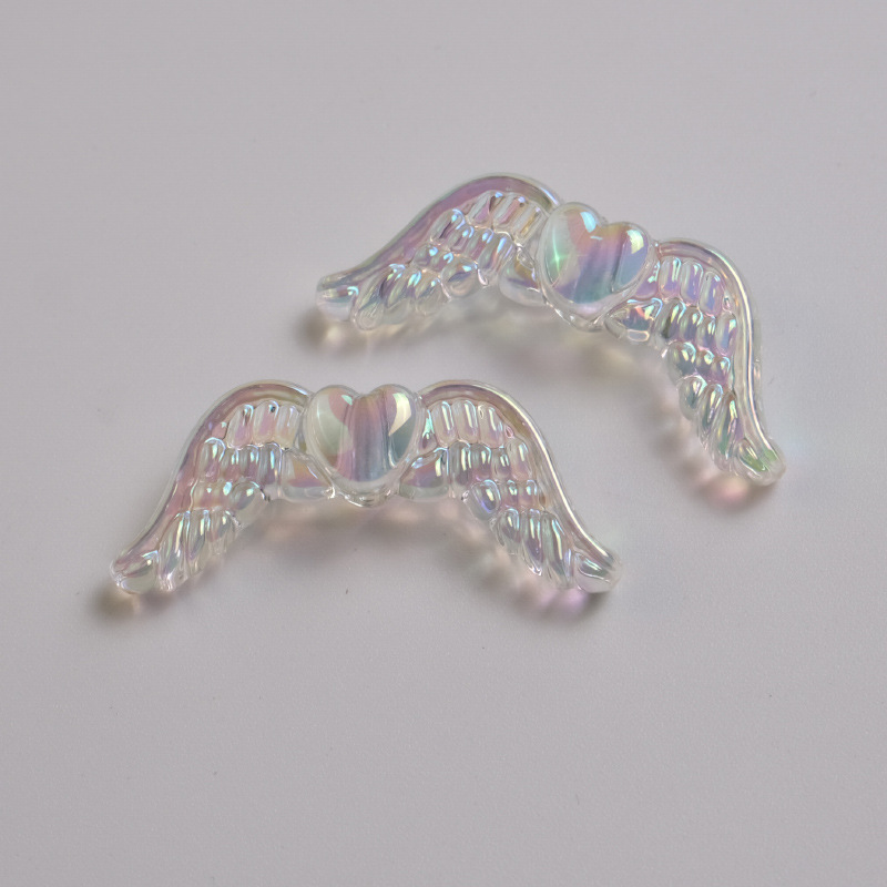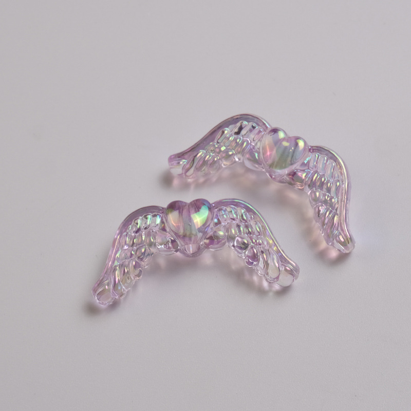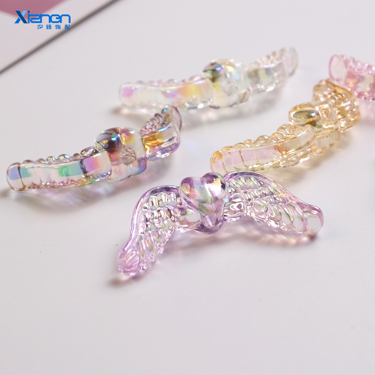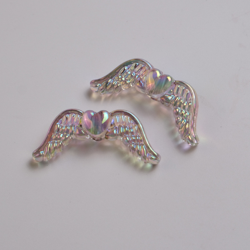 镀彩uv透明爱心翅膀竖孔蝴蝶结珠亚克力串珠手机链手链diy配件