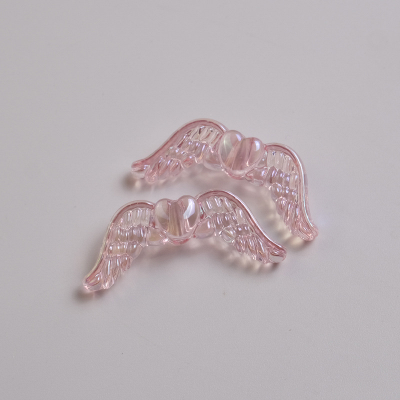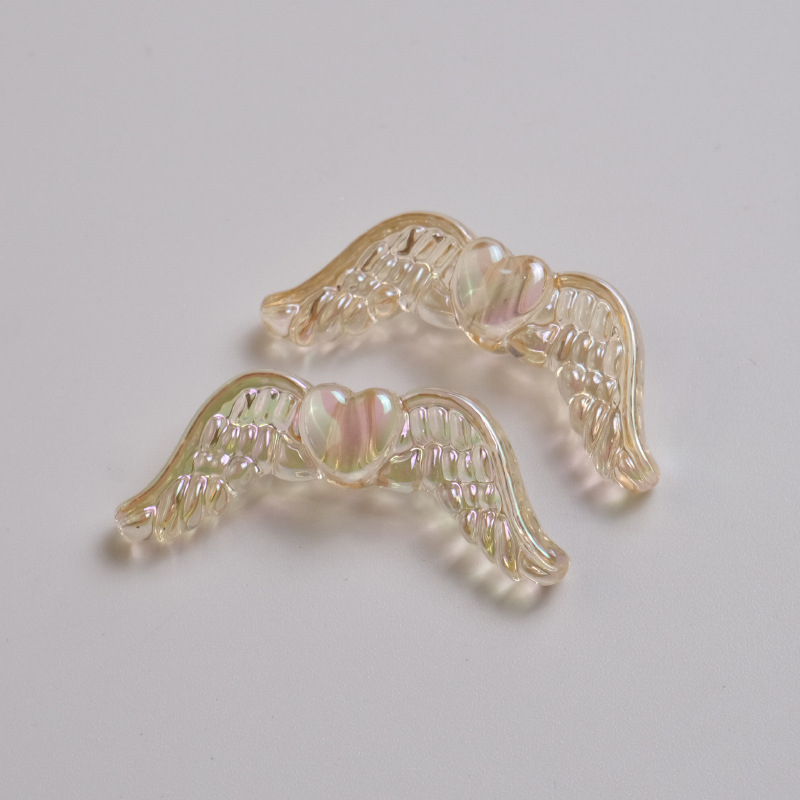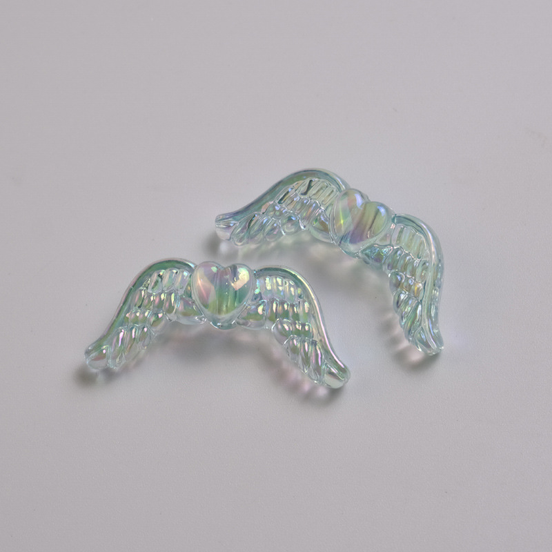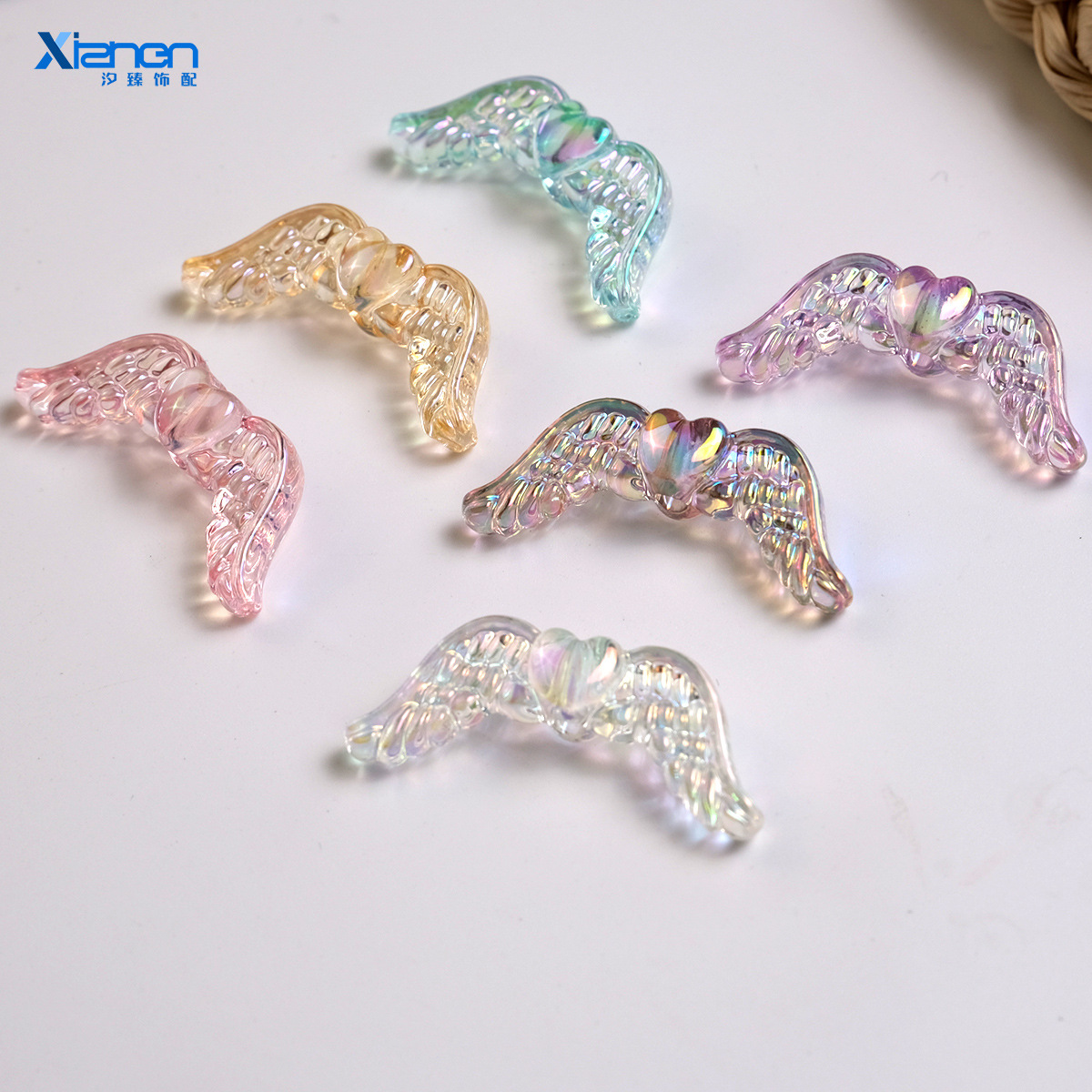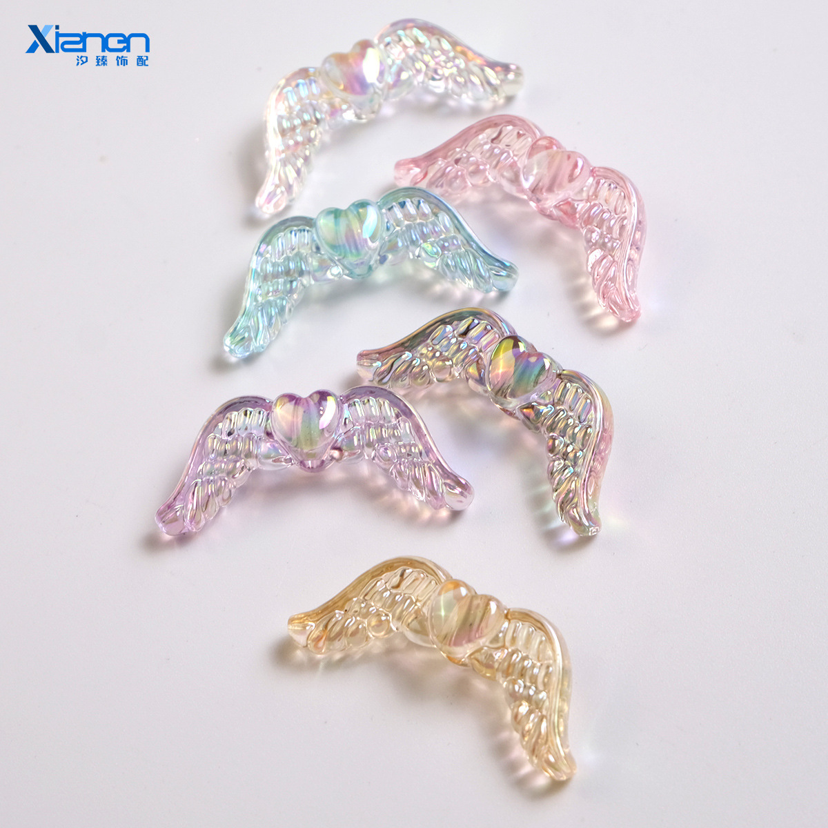 镀彩uv透明爱心翅膀竖孔蝴蝶结珠亚克力串珠手机链手链diy配件