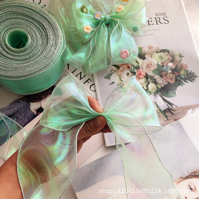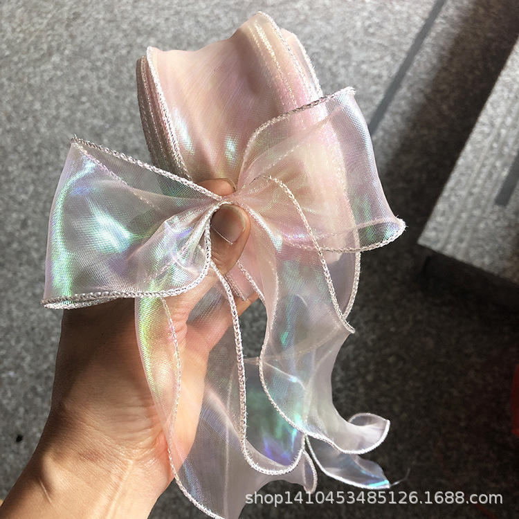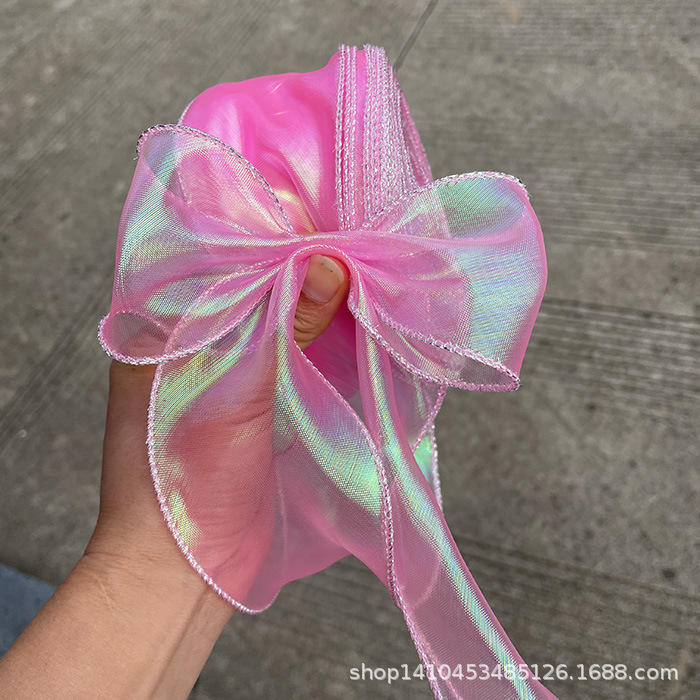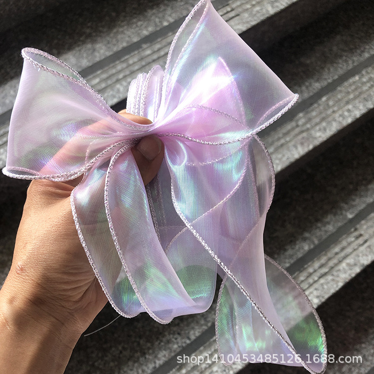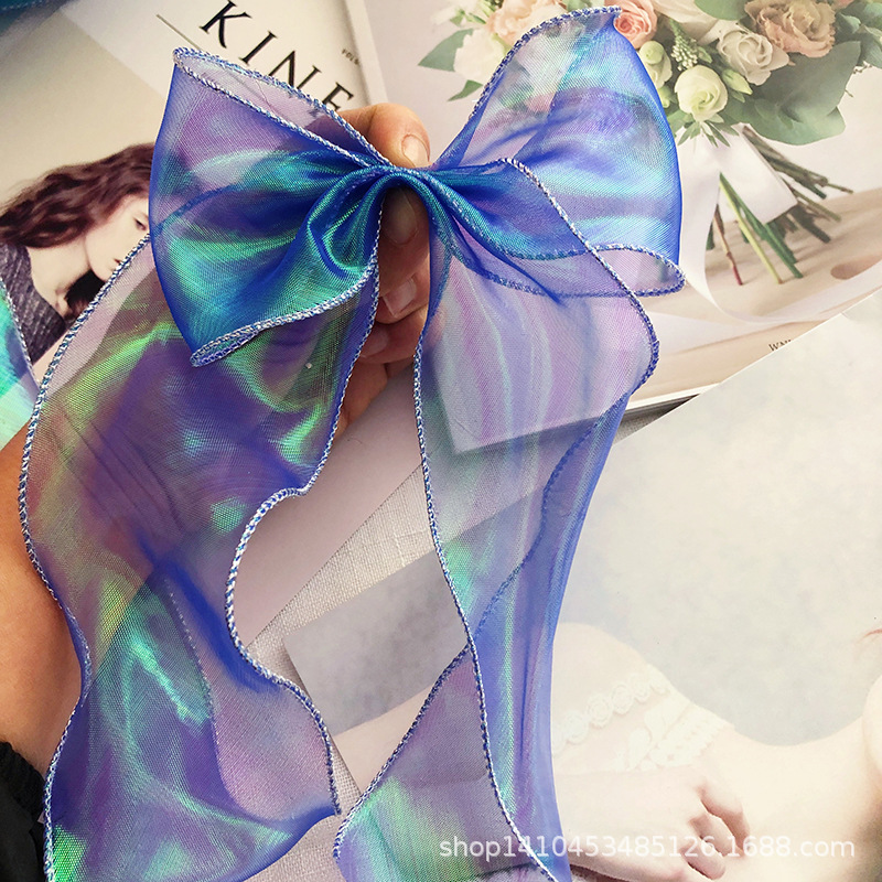 新款七彩纱银线拷边带 人鱼姬 diy儿童发饰配件 手工蝴蝶结材料