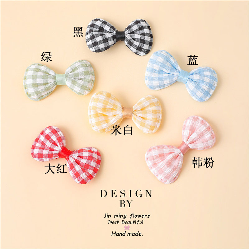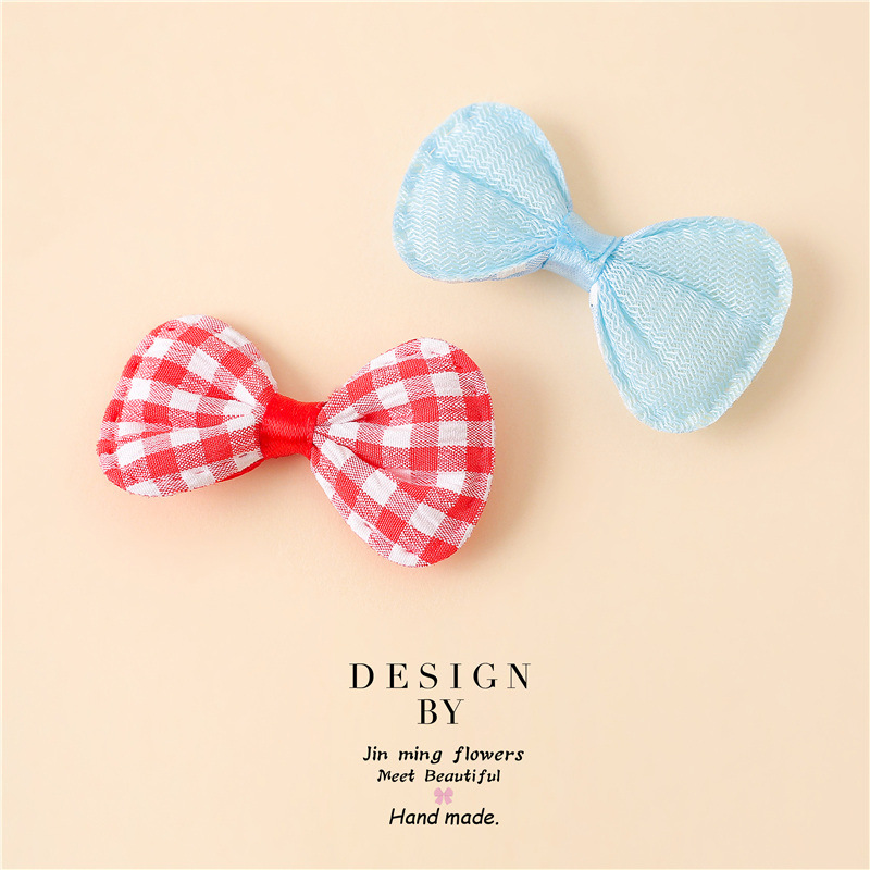 格子蝴蝶结diy配饰发夹发饰半成品手工布艺配件服装辅料 皱格平结