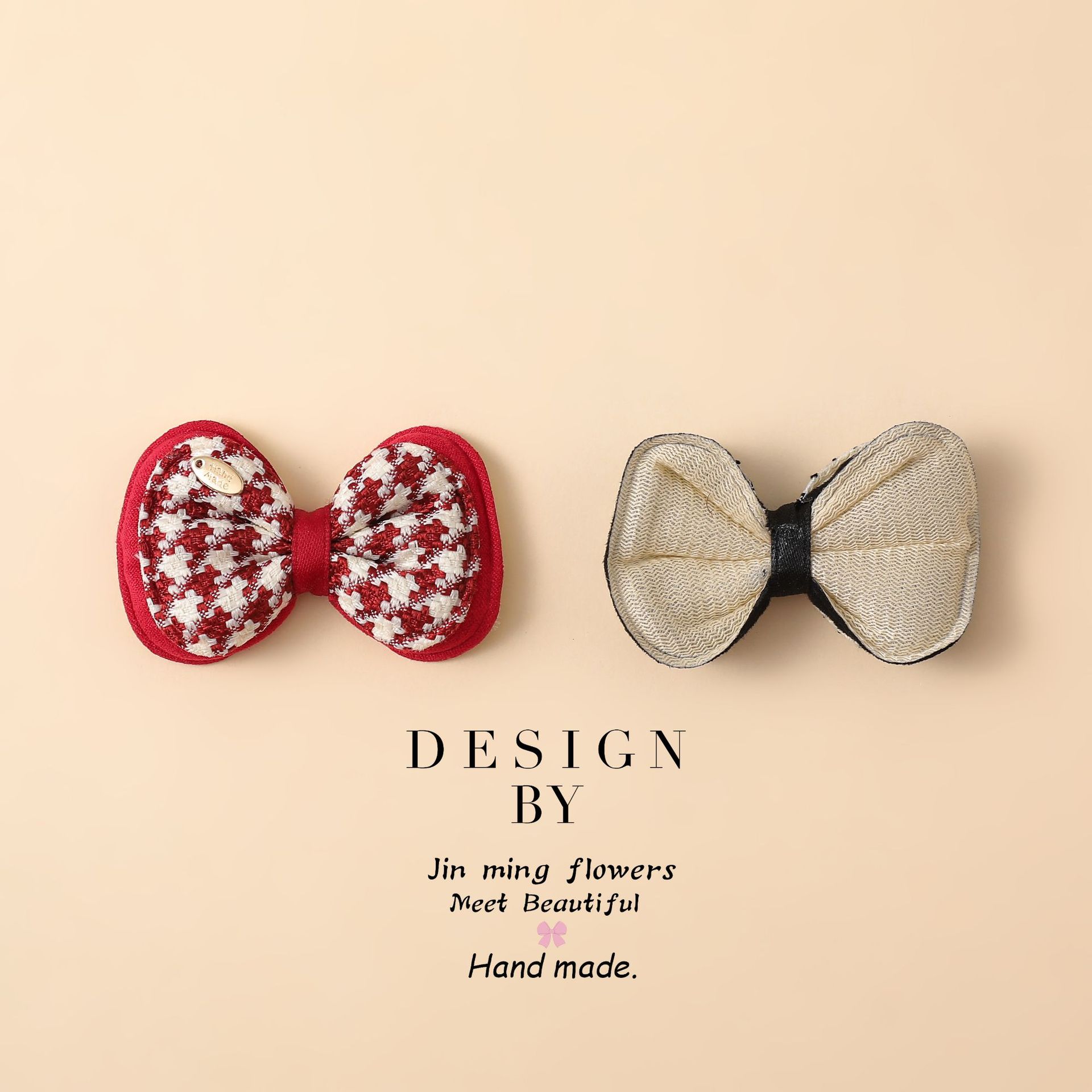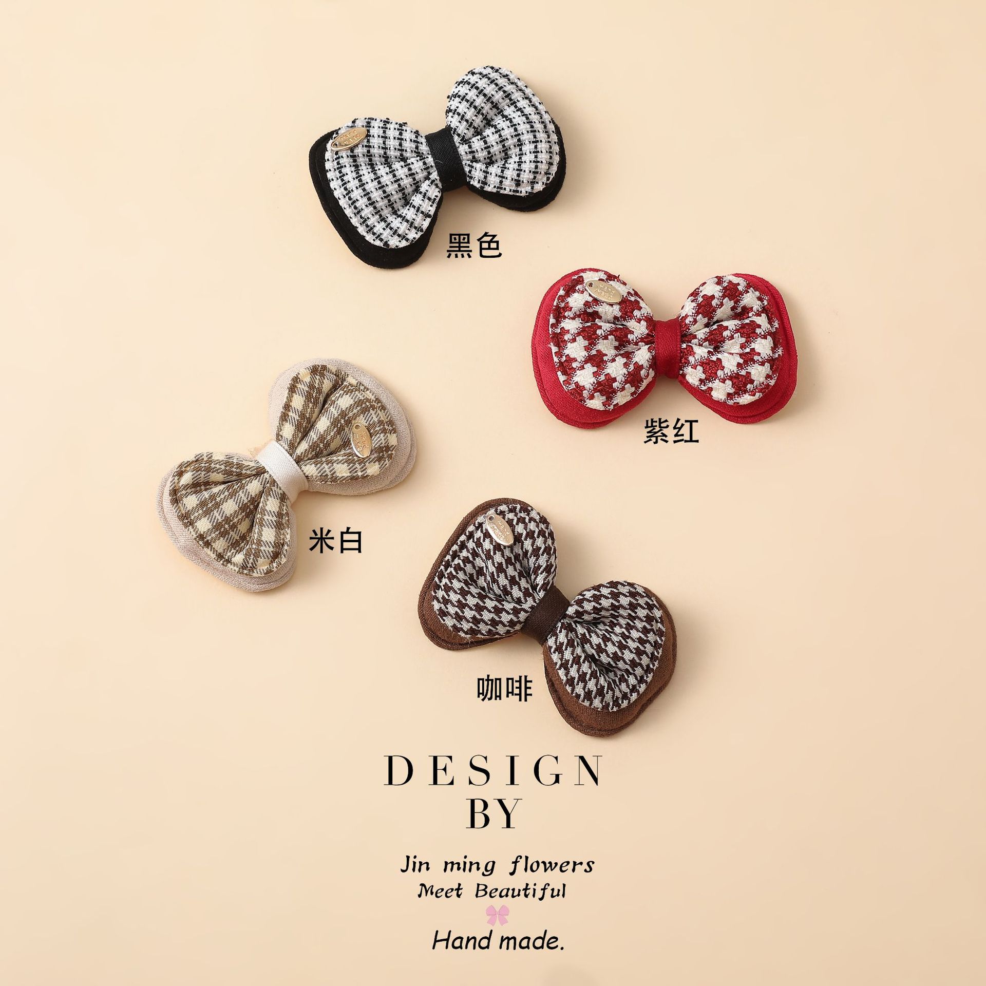 千鸟格蝴蝶结diy配饰 布艺手工配件 衣服鞋子辅料 格子双层平结