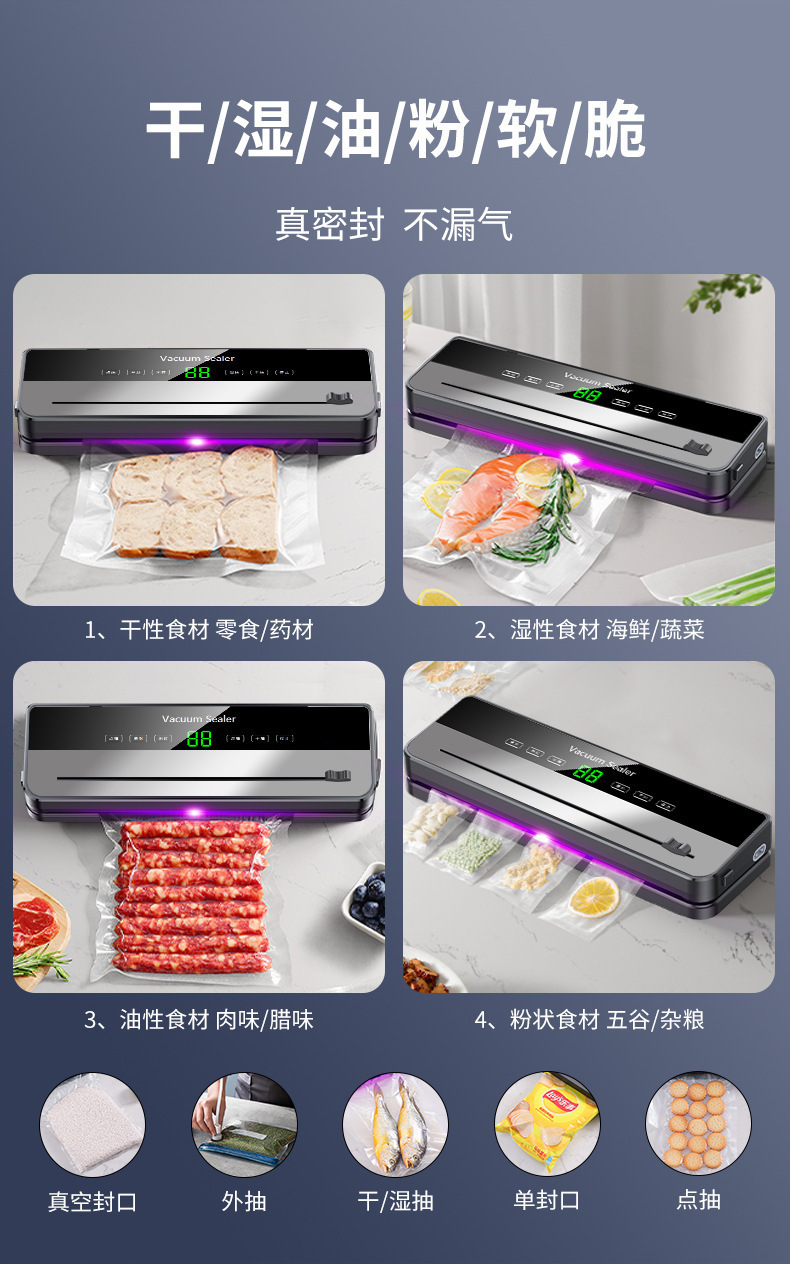 跨境抽真空封口机全自动家用小型食品包装机塑封机商用保鲜带切刀