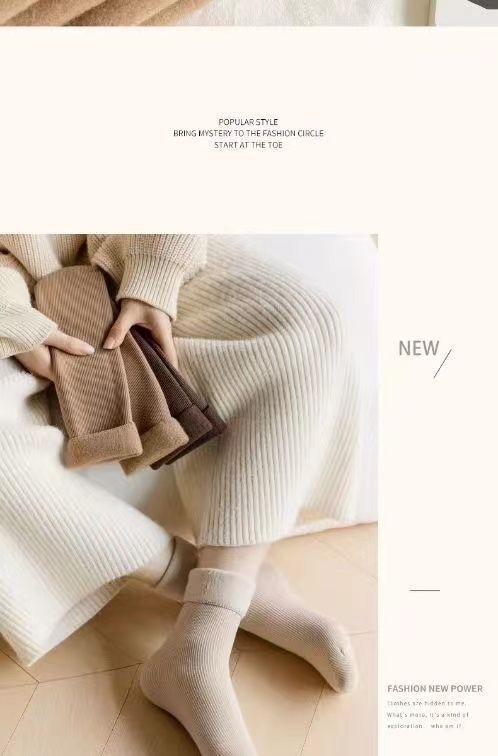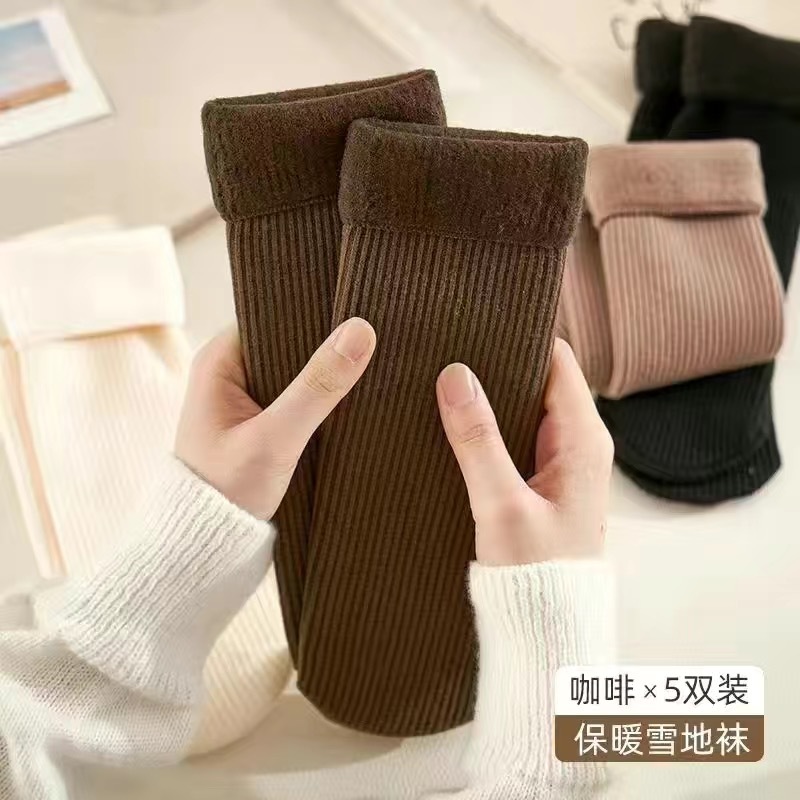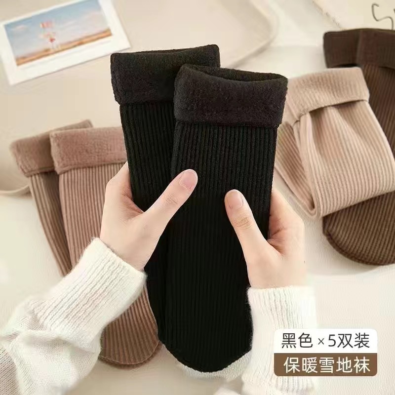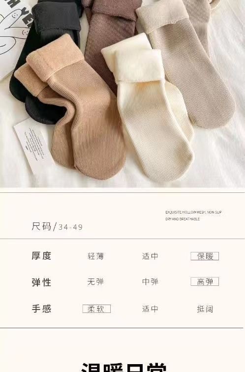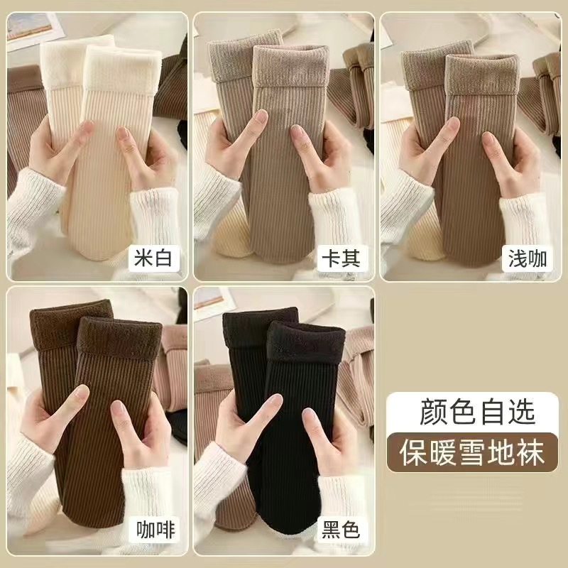 袜子女雪地袜冬季加厚保暖月子袜女士中筒毛圈袜秋冬天不倒绒女袜