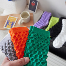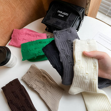 袜子女秋冬爆款复古中筒袜 咖色系ins菱格潮袜厚款英伦风女士棉袜