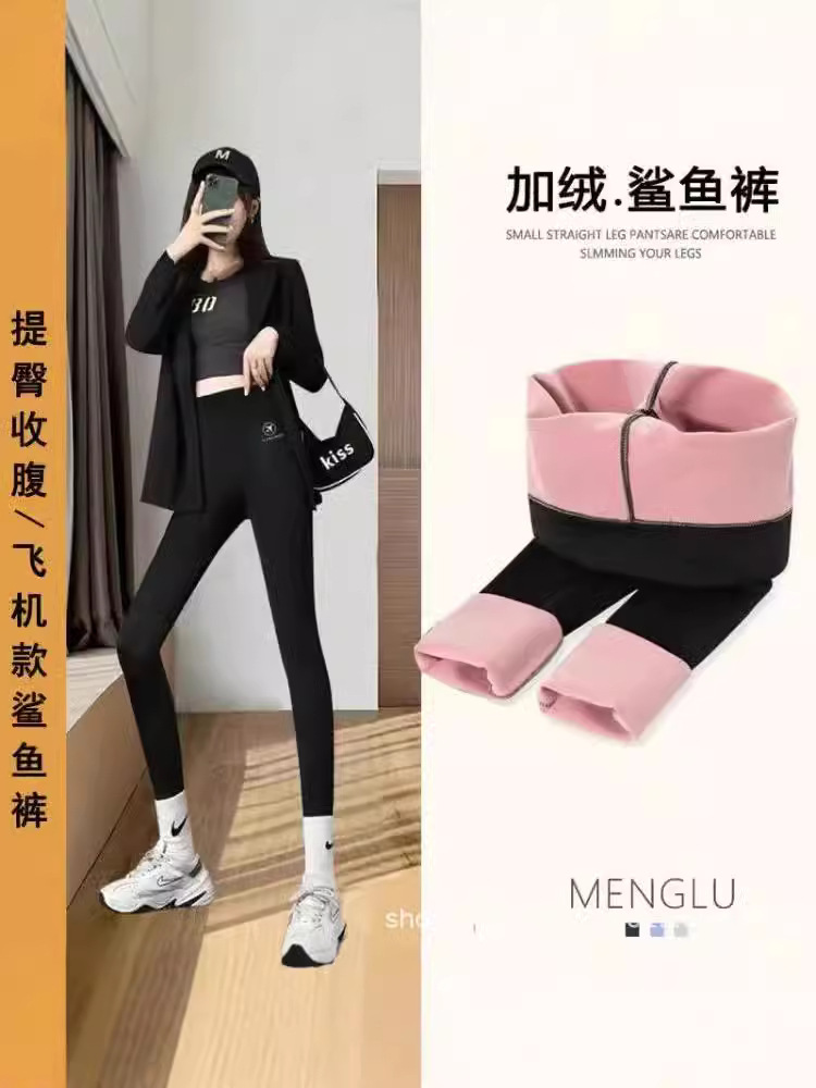 spring and autumn leggings women shark pants female fleece-lined outer wear spring and autumn tight bottoming yoga weight loss pants hip raise slimming