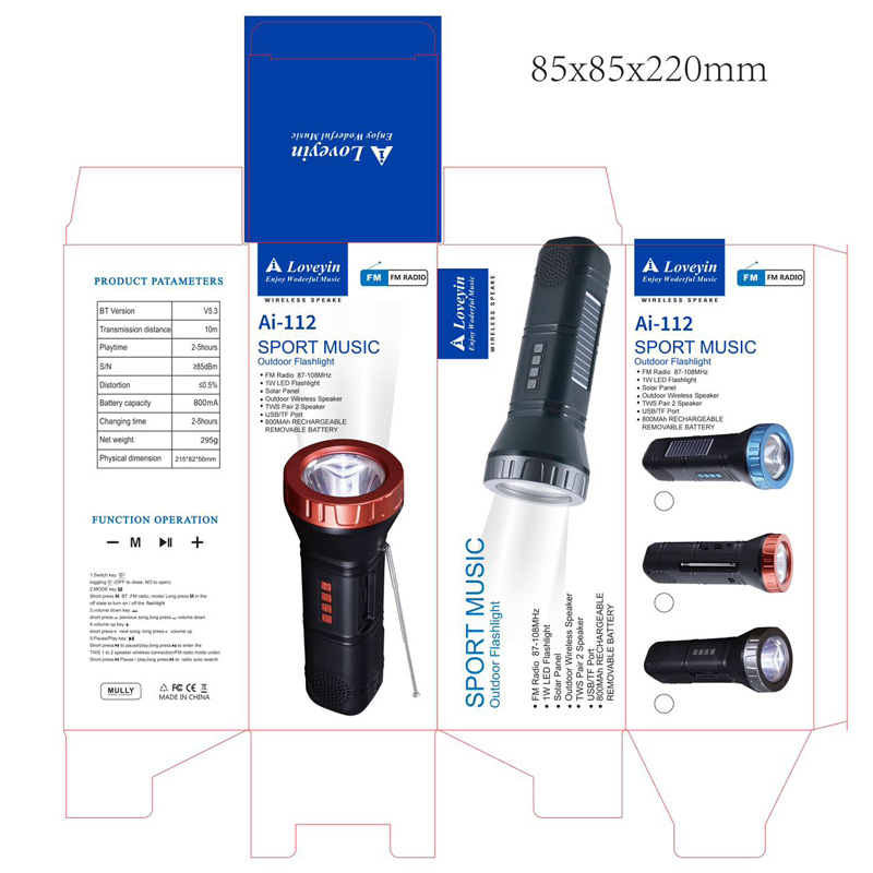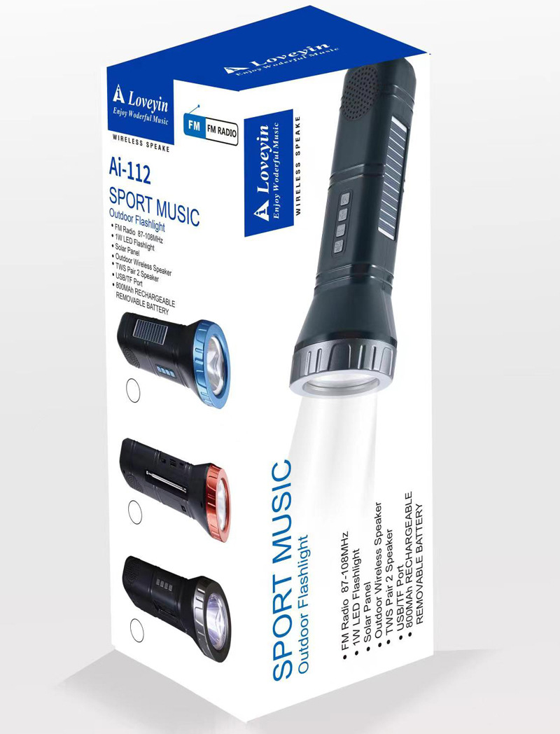 Ai-112 电镀色户外蓝牙音响手电筒多功能收音机音箱便携式低音炮