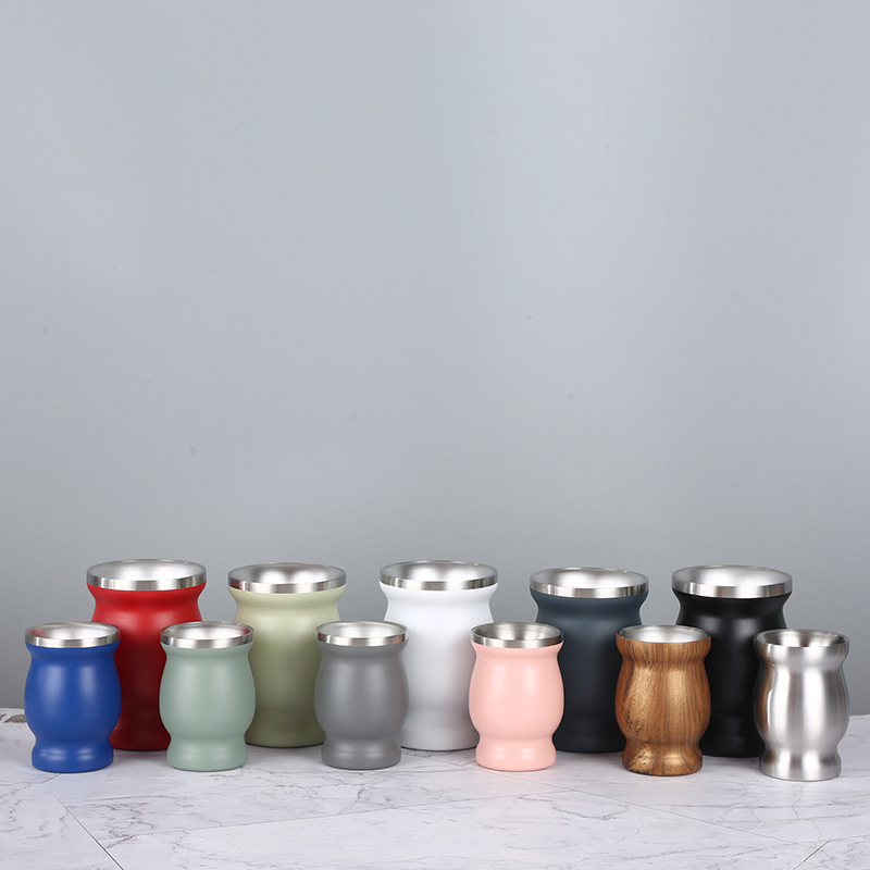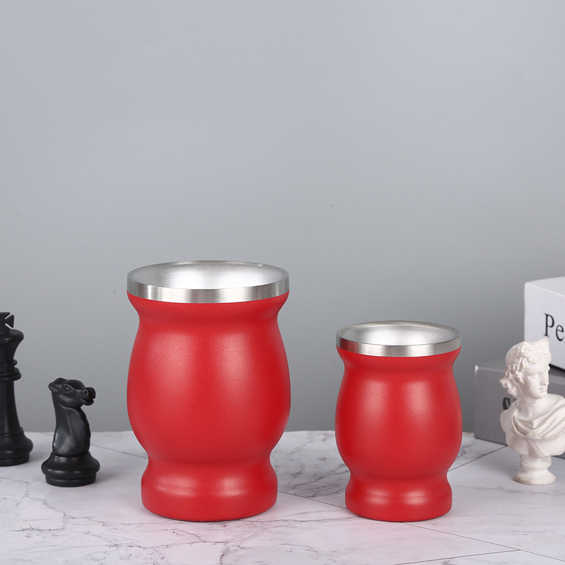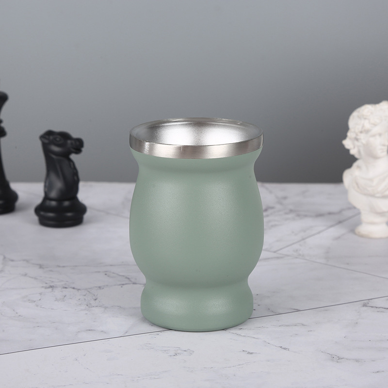 阿根廷双层304不锈钢马黛杯真空喷塑葫芦型咖啡杯跨境保温杯批发