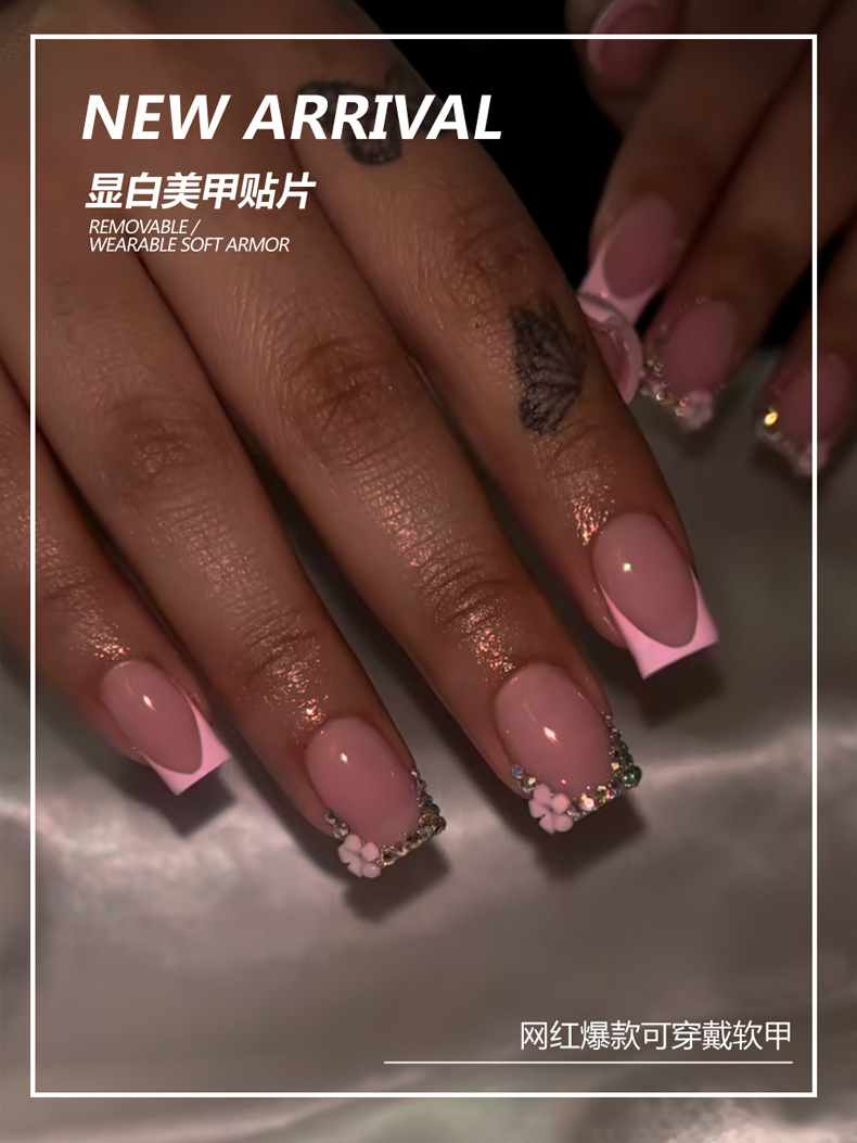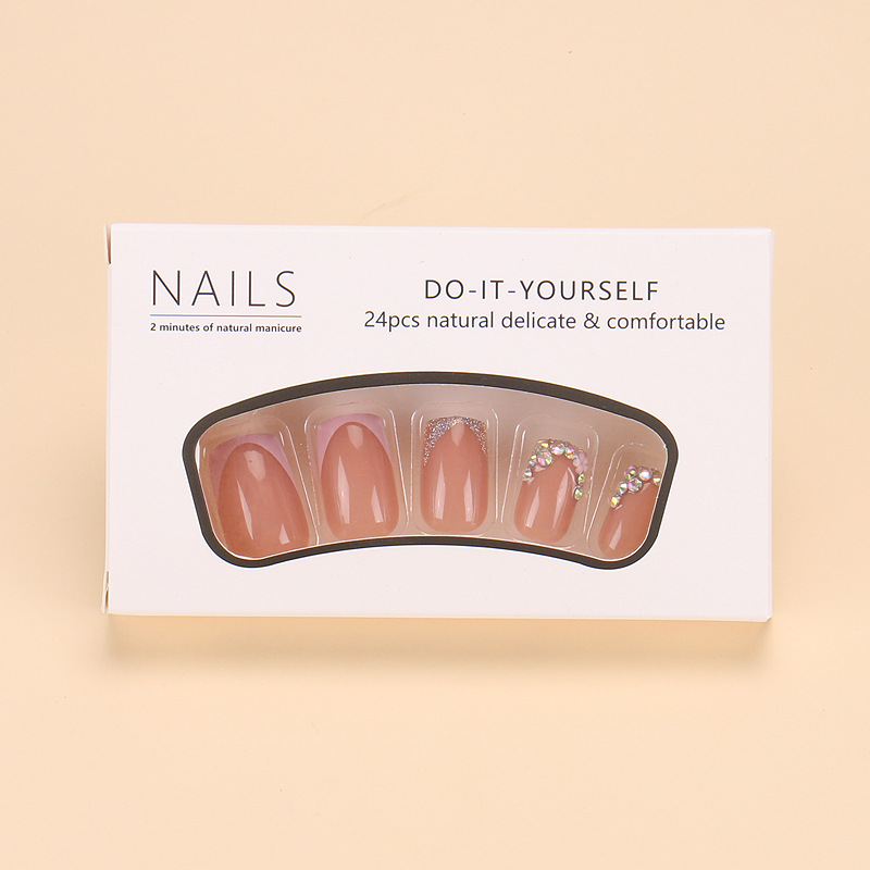跨境穿戴甲批发成品24片美甲贴片水钻花朵可拆卸欧美热销假指甲片