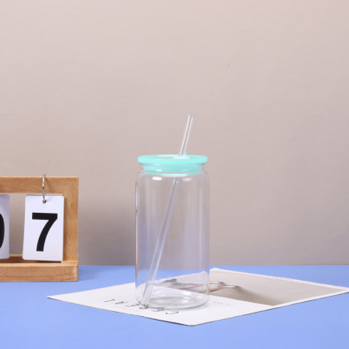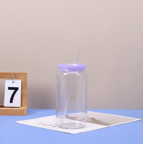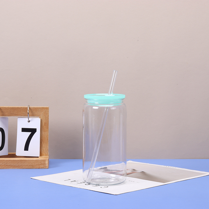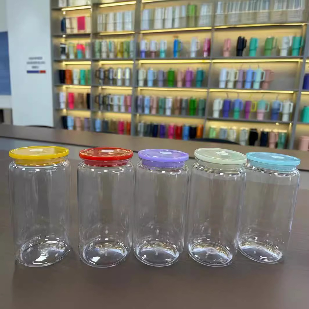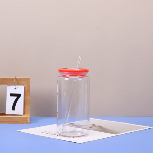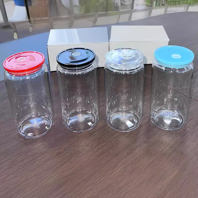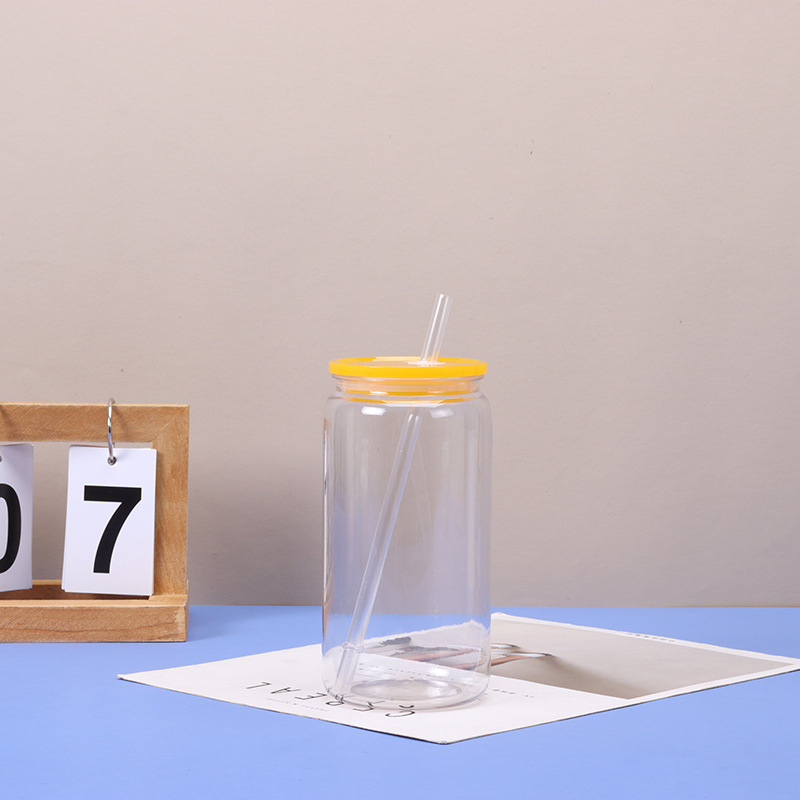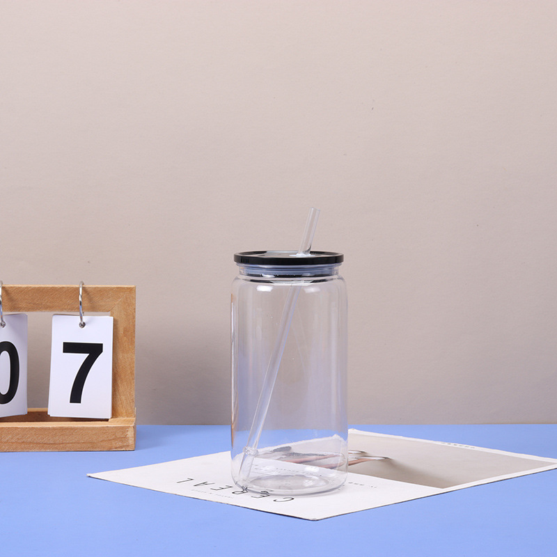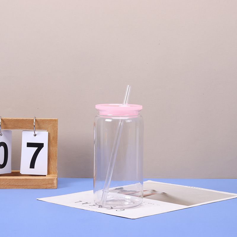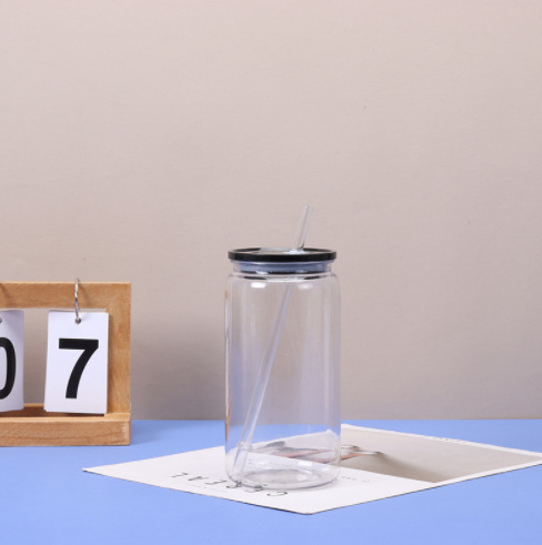 新款塑料杯16oz梅森杯亚克力可乐罐吸管杯彩色盖加厚防漏防摔水杯