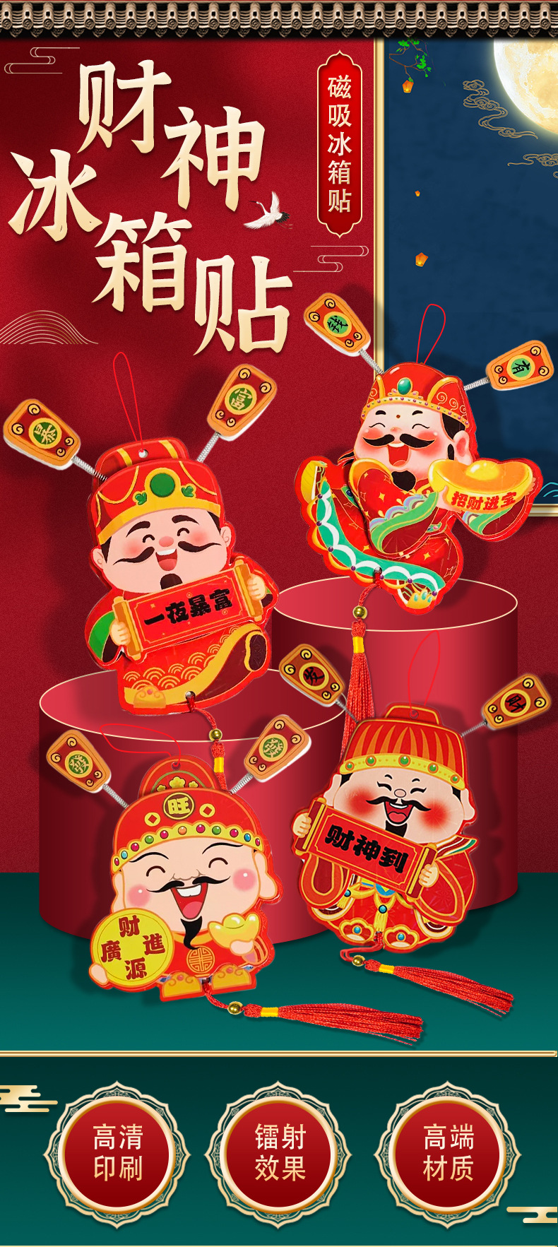 china new year god of wealth refridgerator magnets pendant 2025 magnetic magnet three-dimensional creativity pendant home decorations