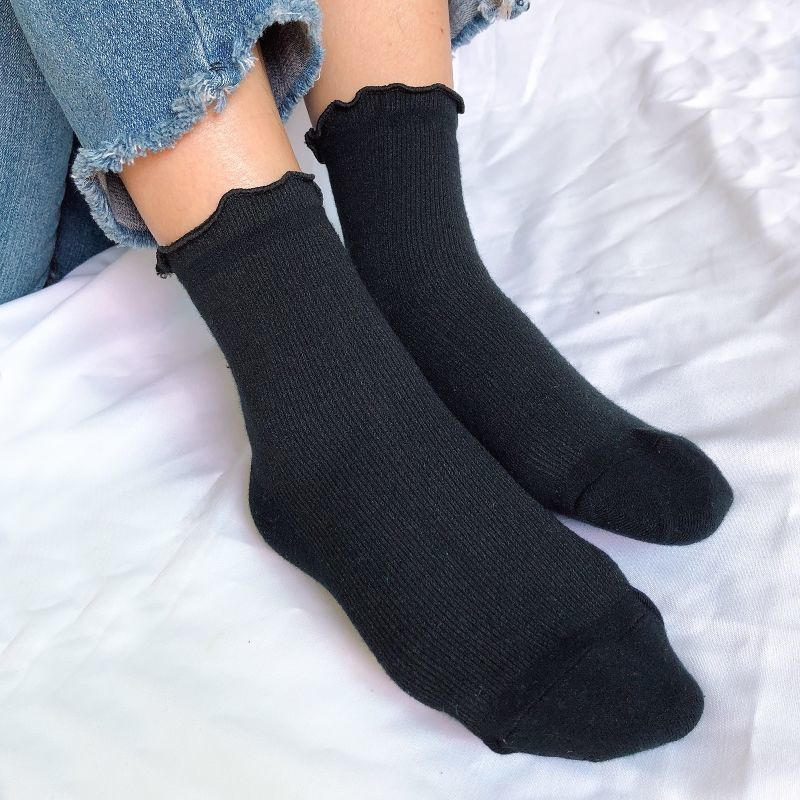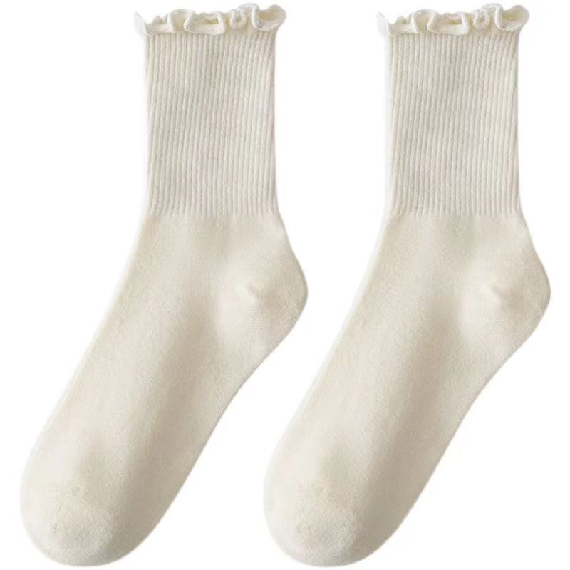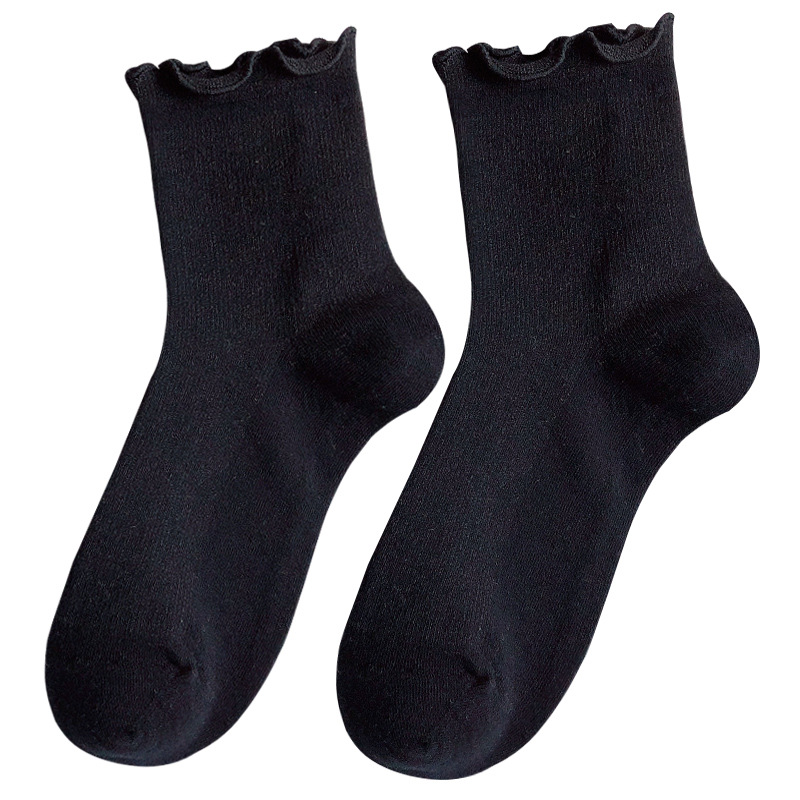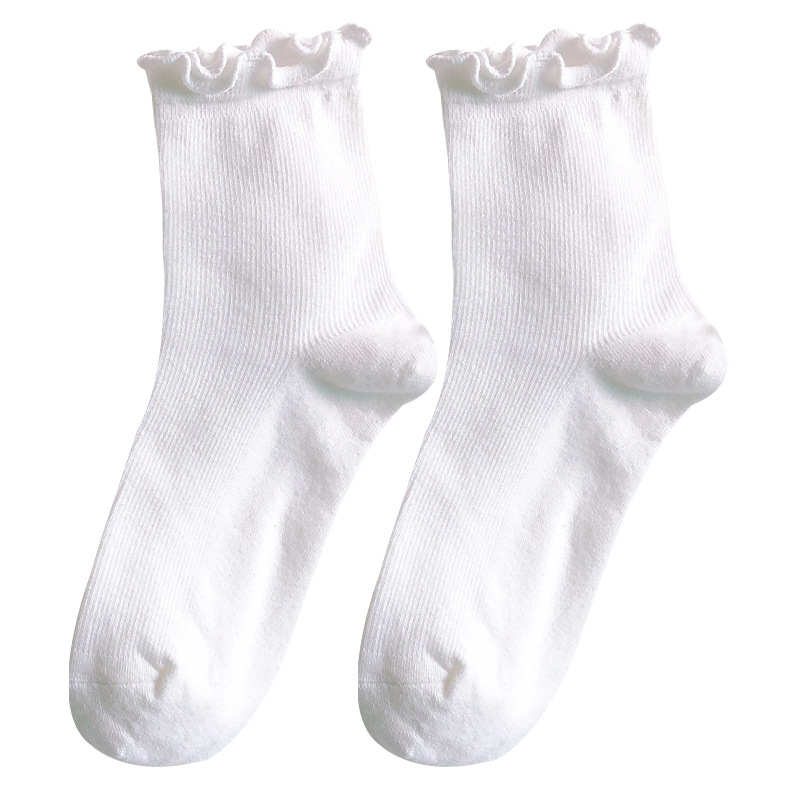 白色木耳袜子女中筒春夏季黑白堆堆袜jk制服泡泡口花边lolita长袜