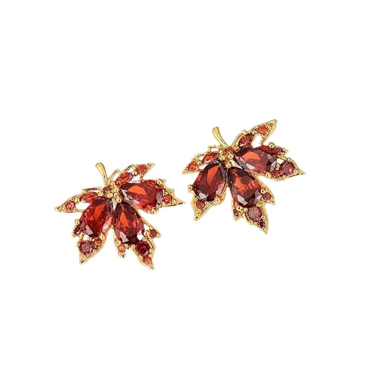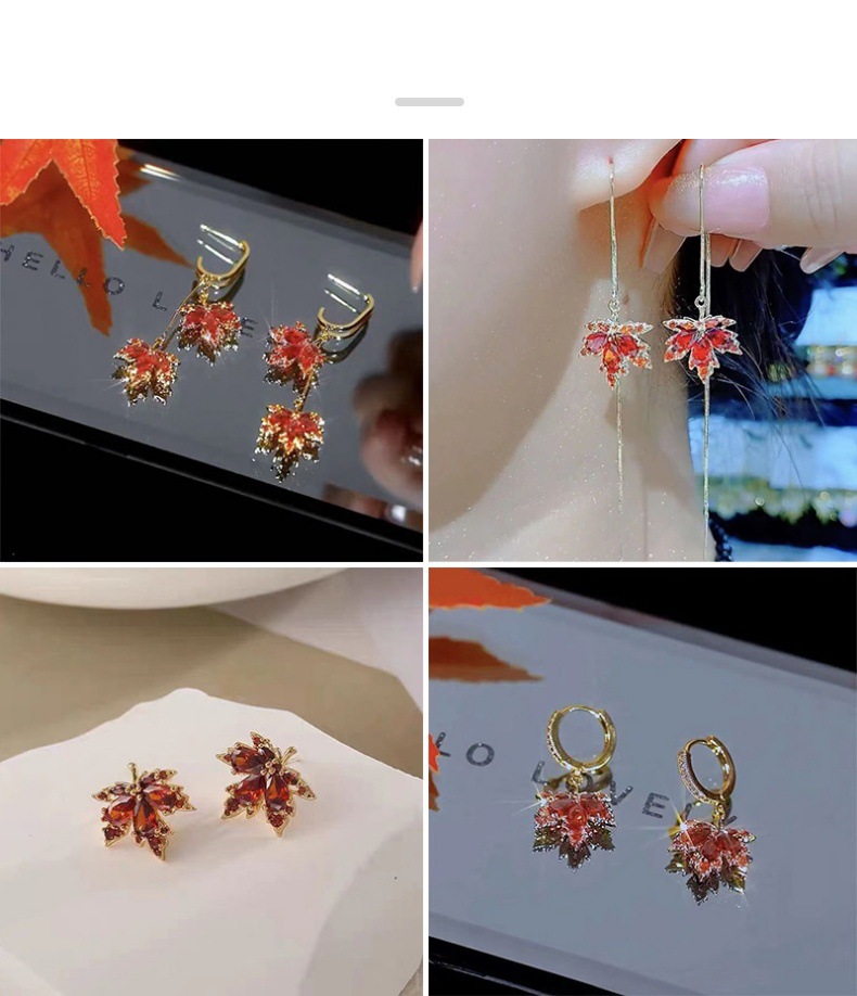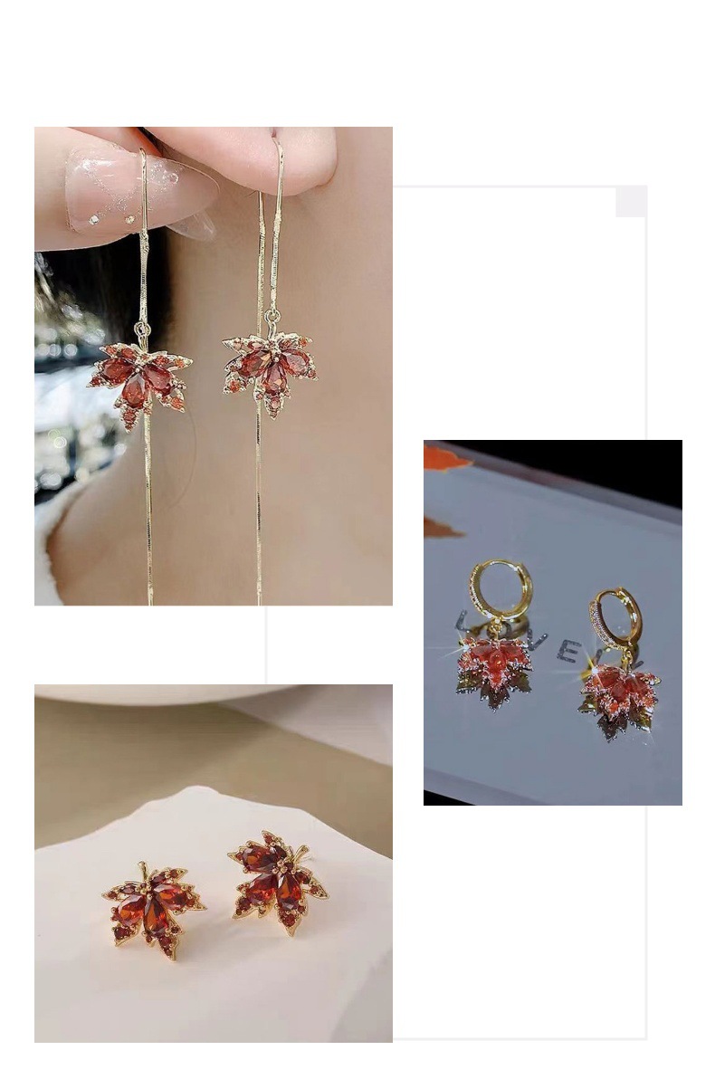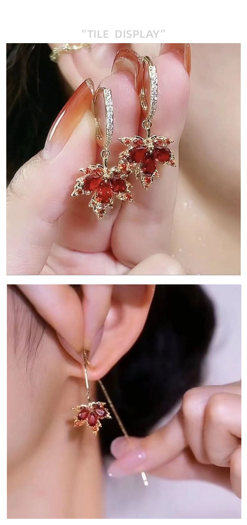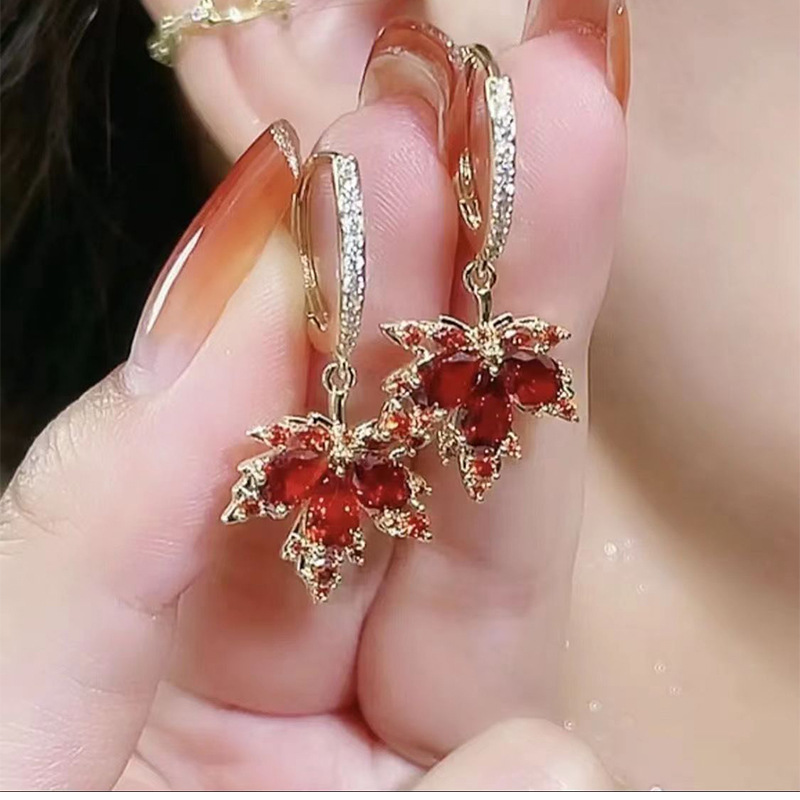 爆款枫叶流苏耳钉耳环高级时尚女神范红色水晶叶子百搭耳饰