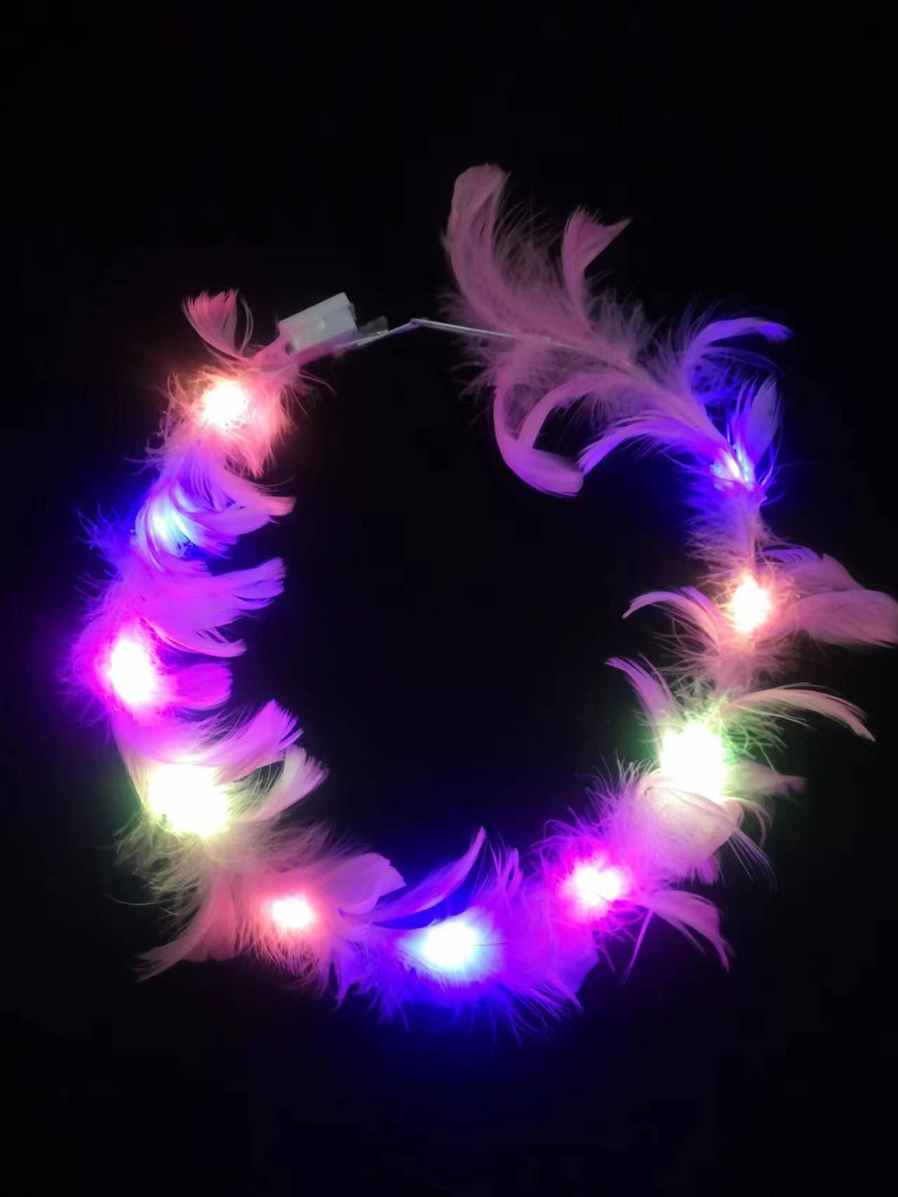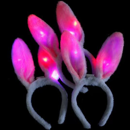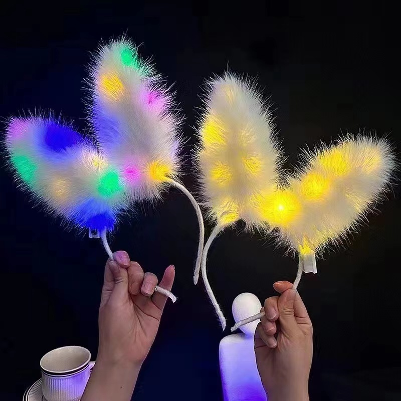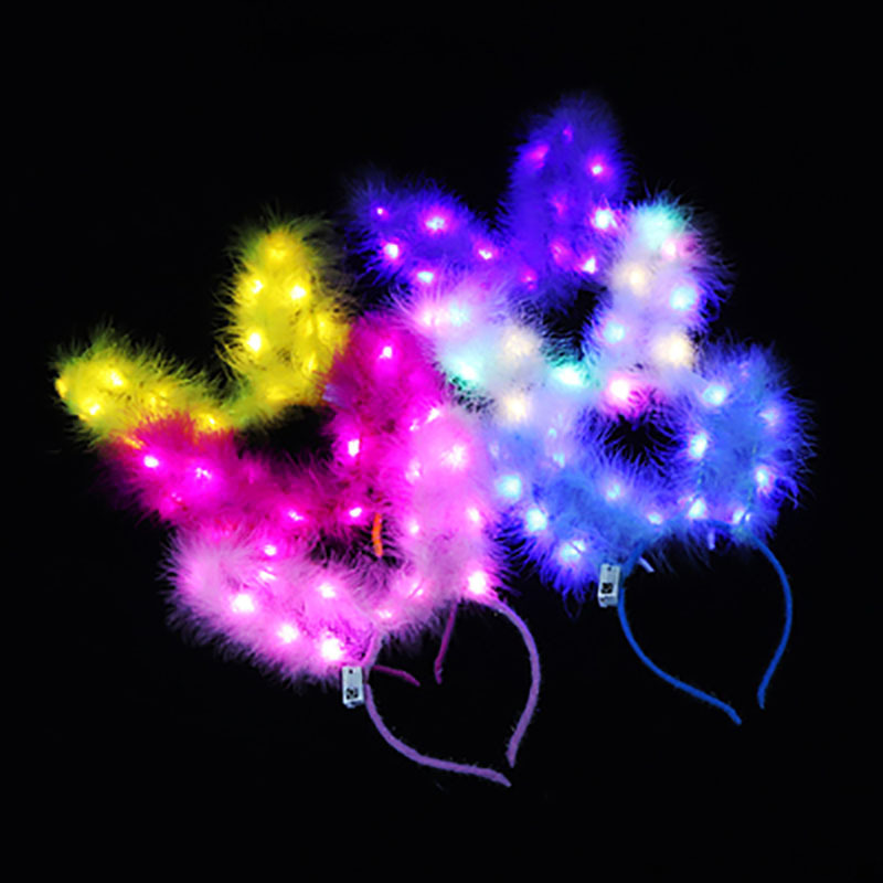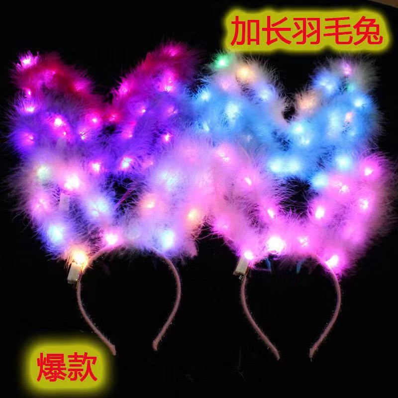 网红新款发光羽毛兔子耳朵头饰带灯发光发箍夜市儿童玩具小礼品