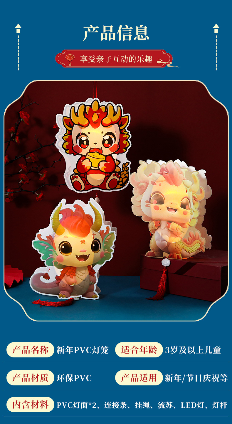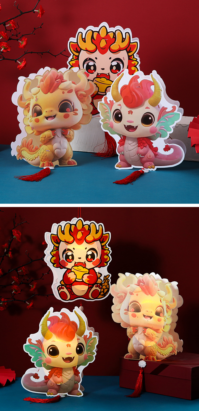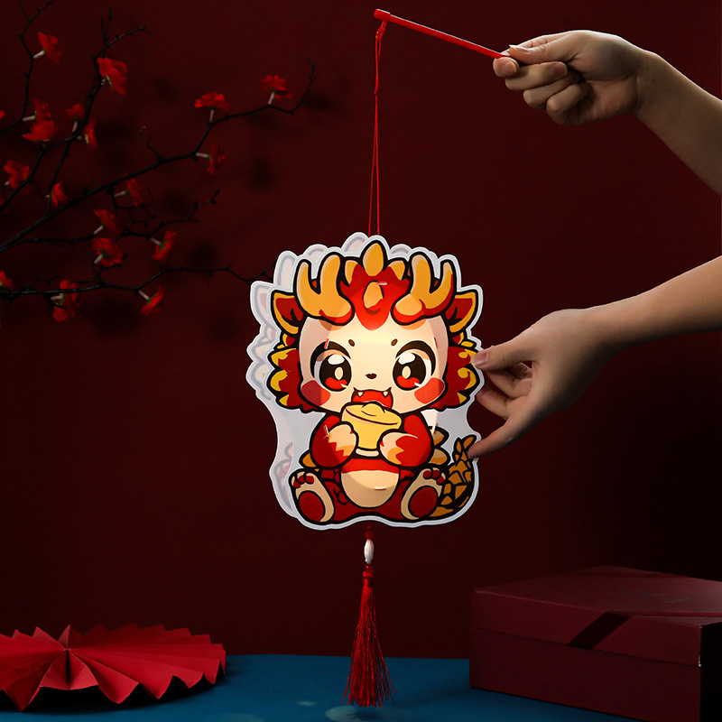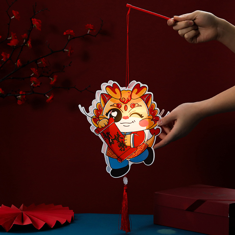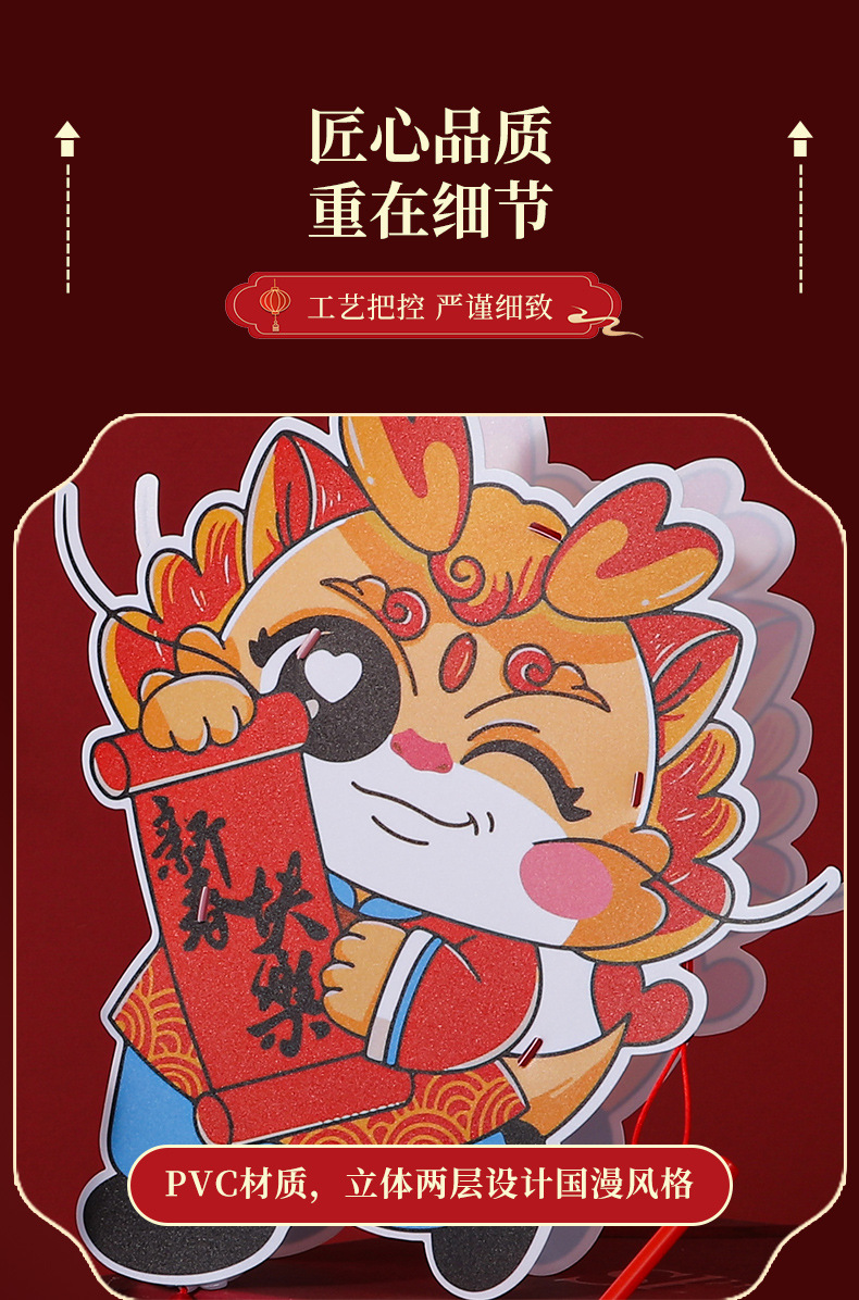 2024龙年春节卡通灯笼儿童手工DIY发光手提灯笼PVC卡片新年灯笼