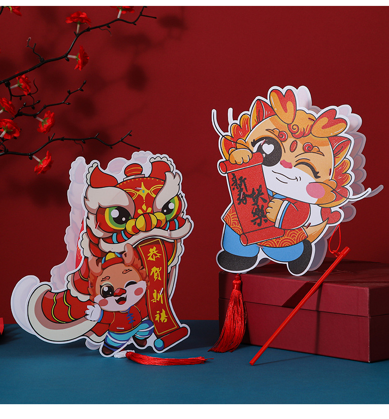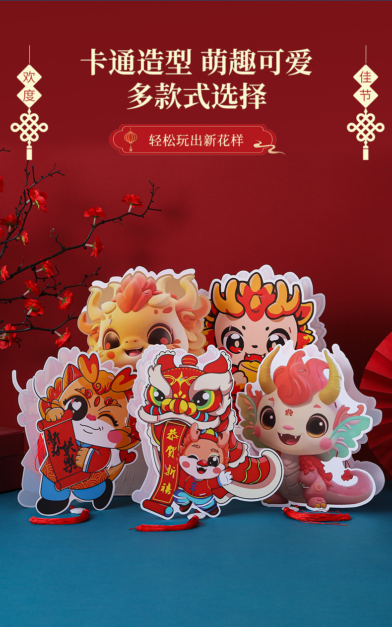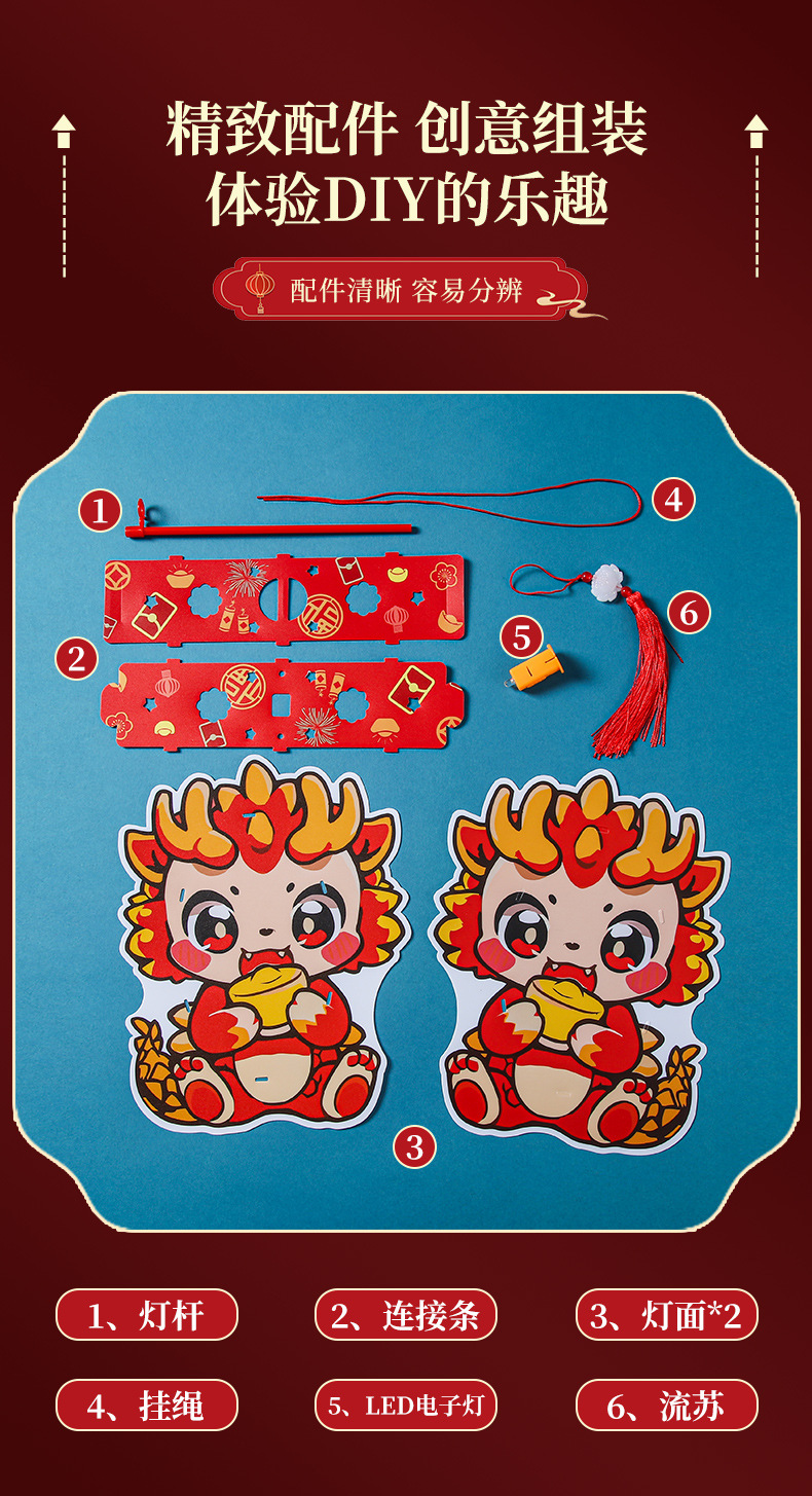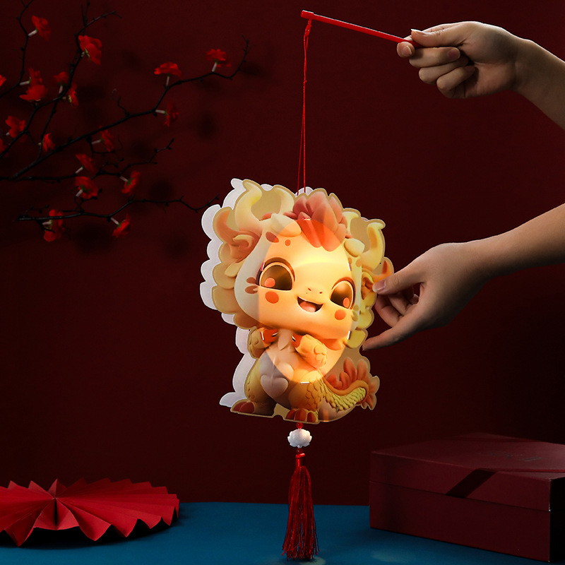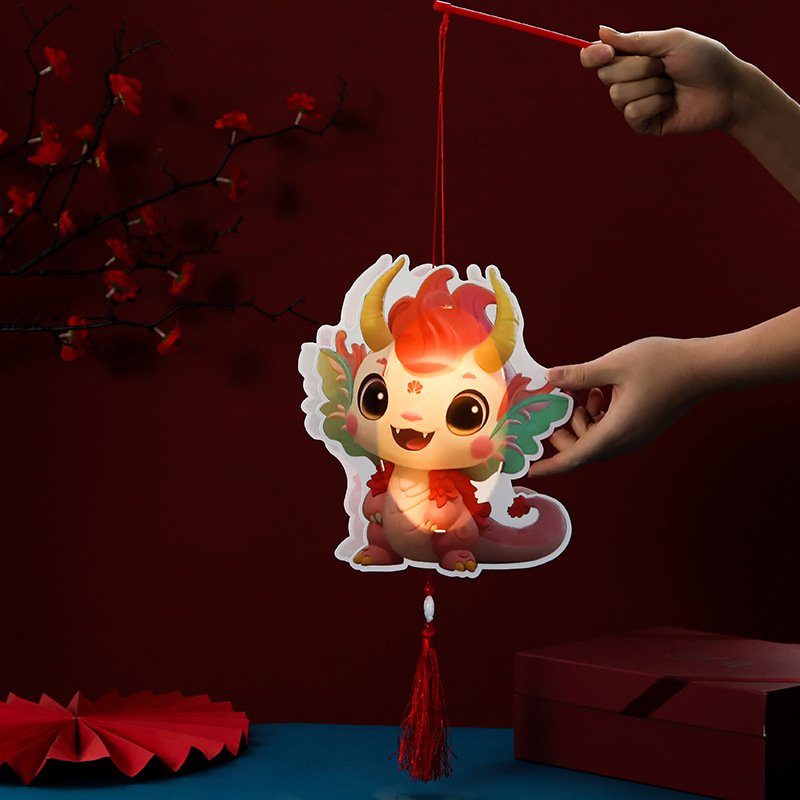 2024龙年春节卡通灯笼儿童手工DIY发光手提灯笼PVC卡片新年灯笼