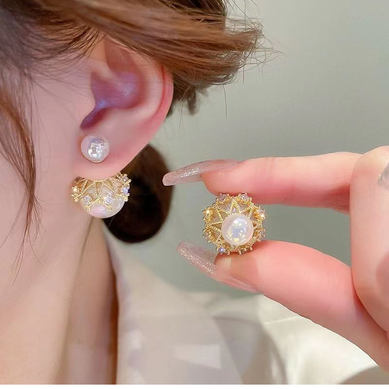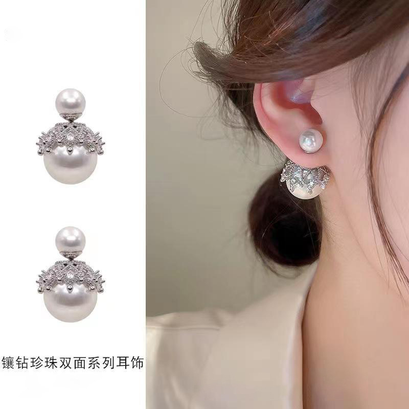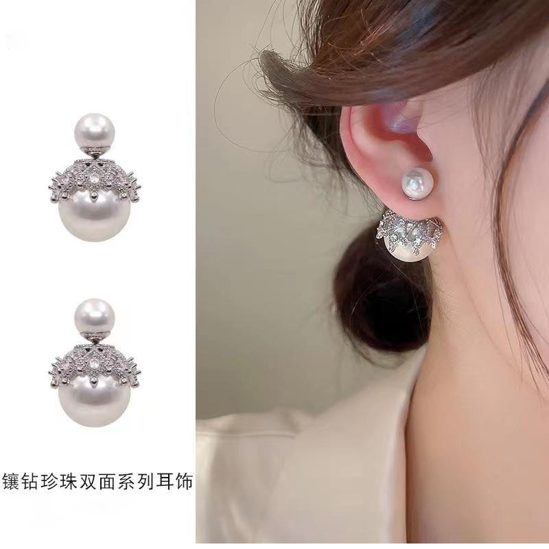 高级双面前后两戴式珍珠耳钉女耳环轻奢复古气质小众设计百搭耳饰