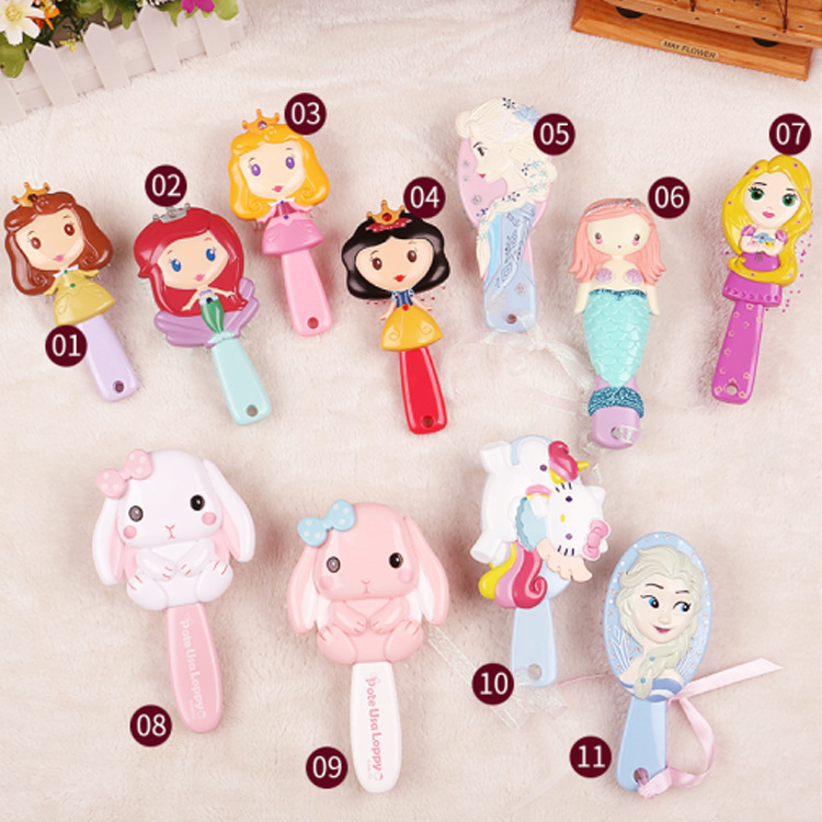 儿童卡通美发梳美人鱼塑料气囊按摩梳子艾莎垂耳兔可爱造型梳批发