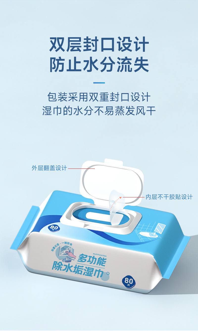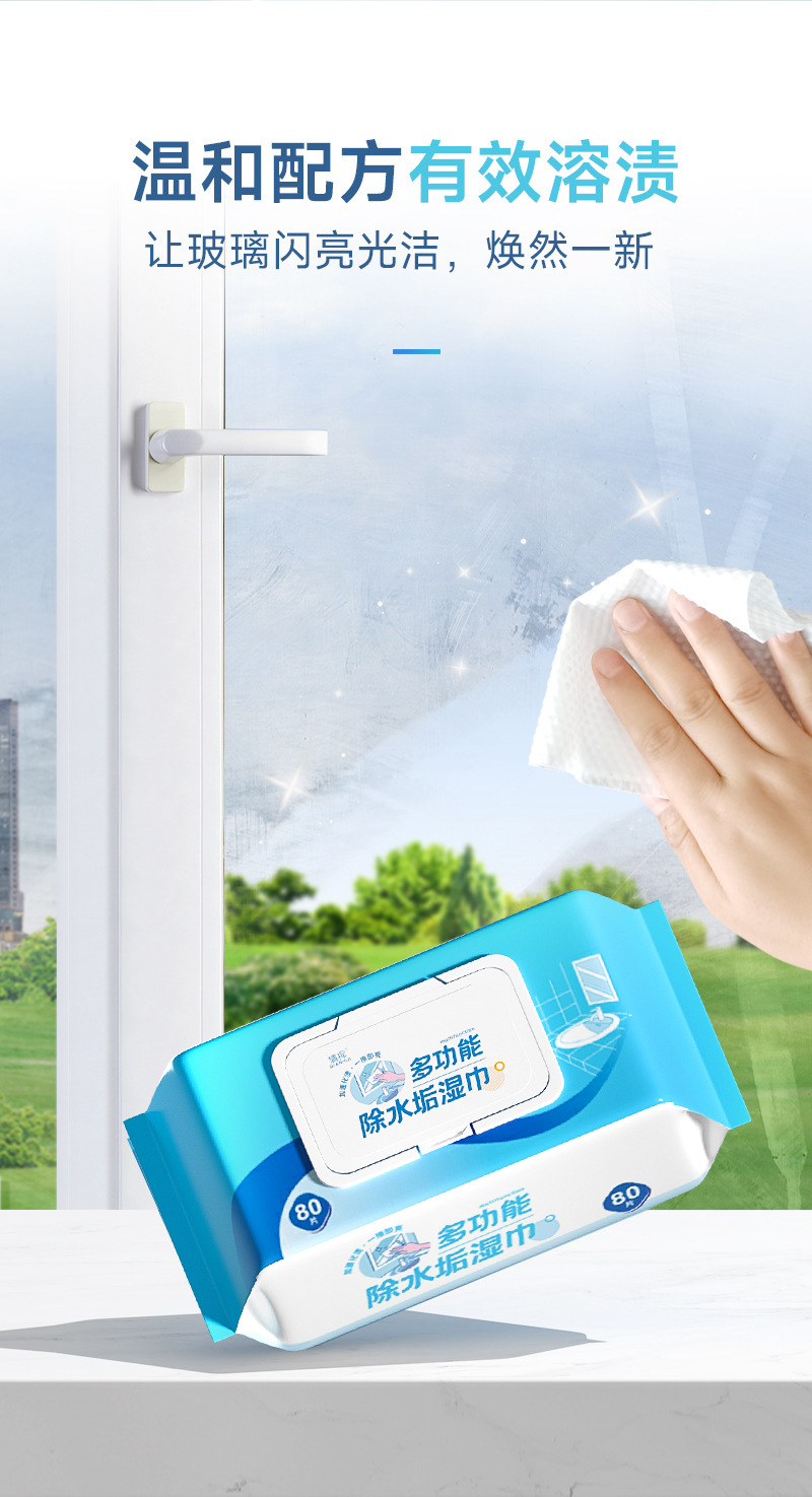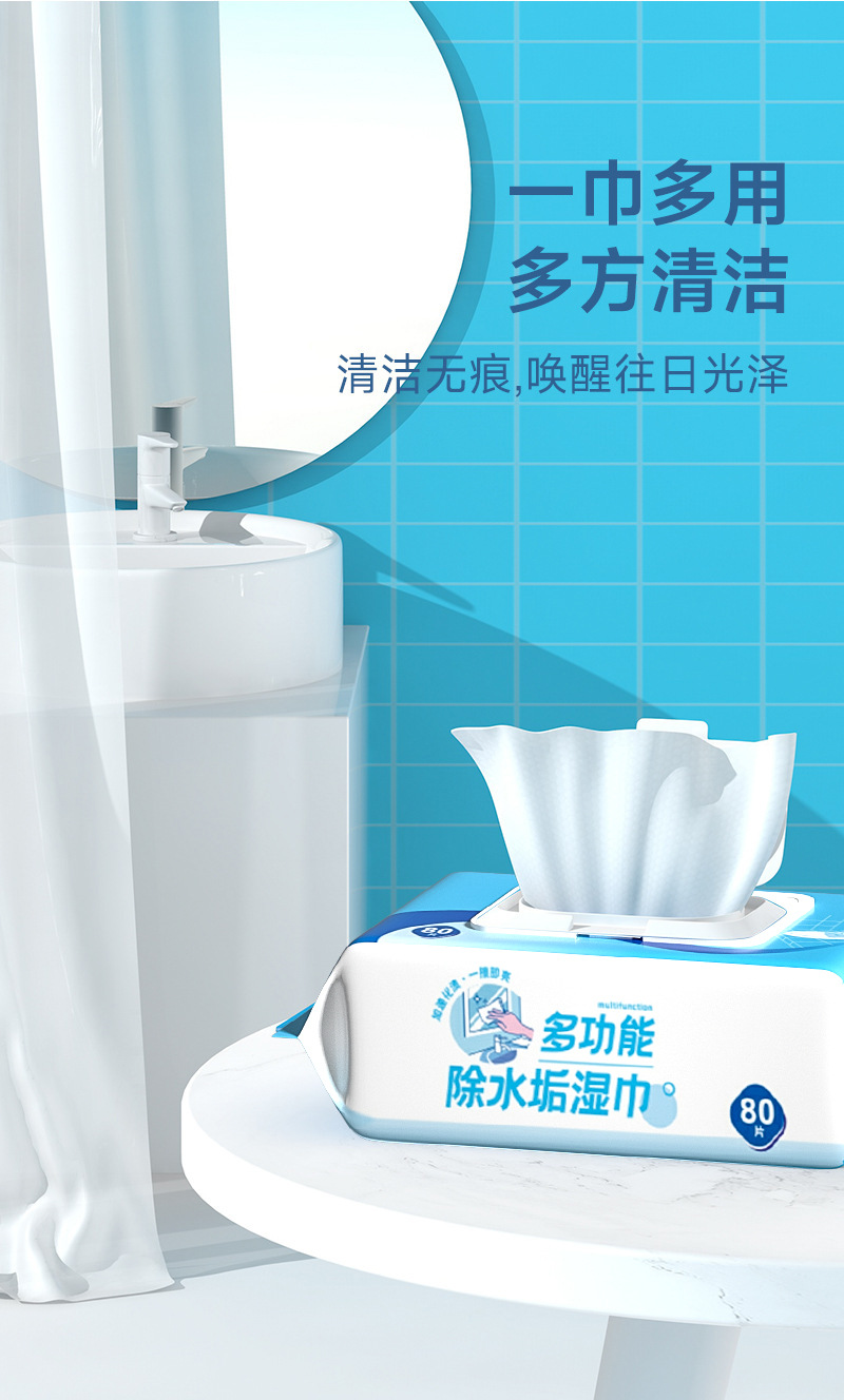 除水垢卫生湿巾 多功能厨房浴室玻璃瓷砖水垢清洁除垢家用 湿纸巾