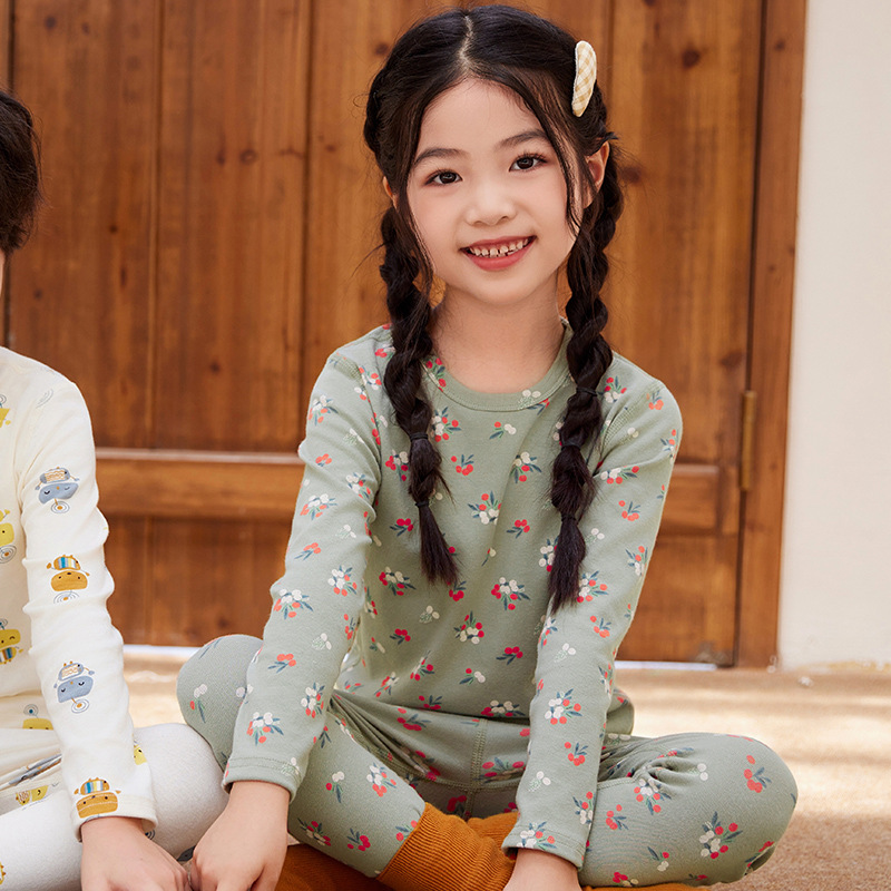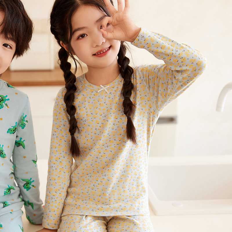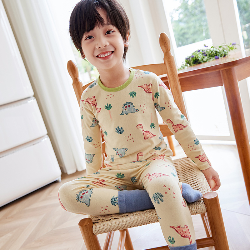 儿童莱卡棉内衣套装男童女童卡通印花圆领家居服秋衣秋裤宝宝睡衣