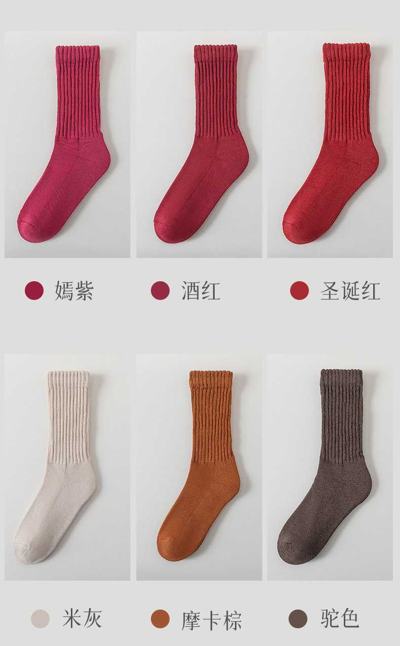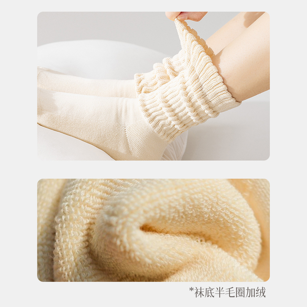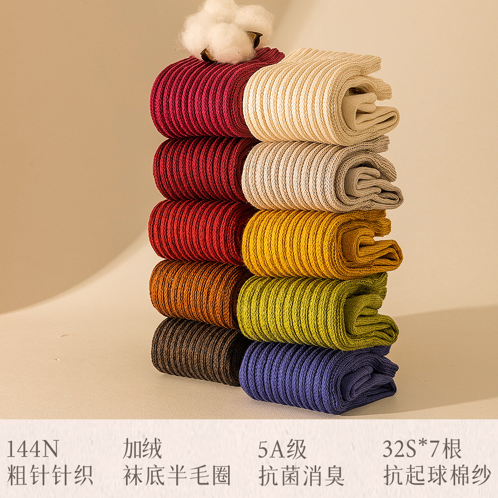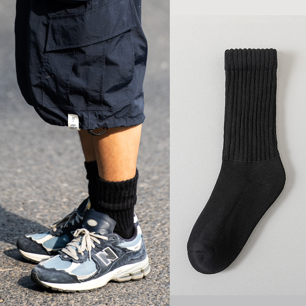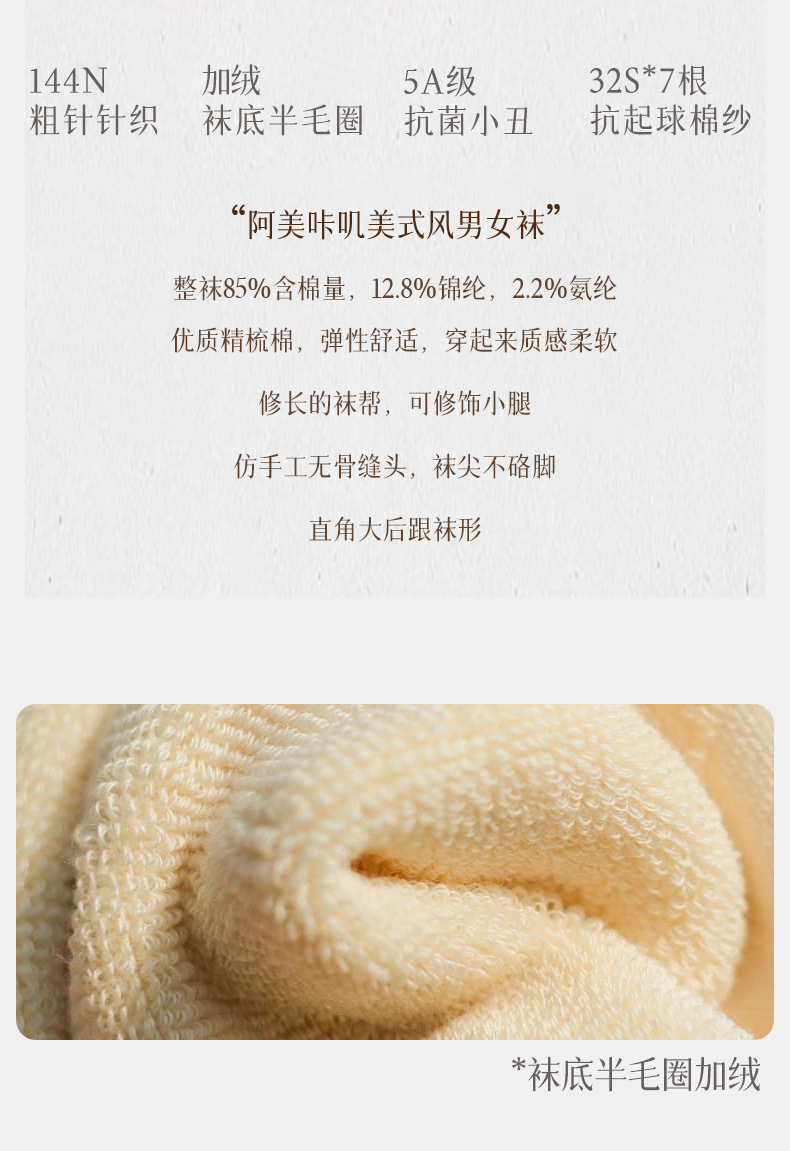 袜子女秋冬加绒中筒袜保暖吸汗毛圈袜黑色男加厚长袜透气棉袜
