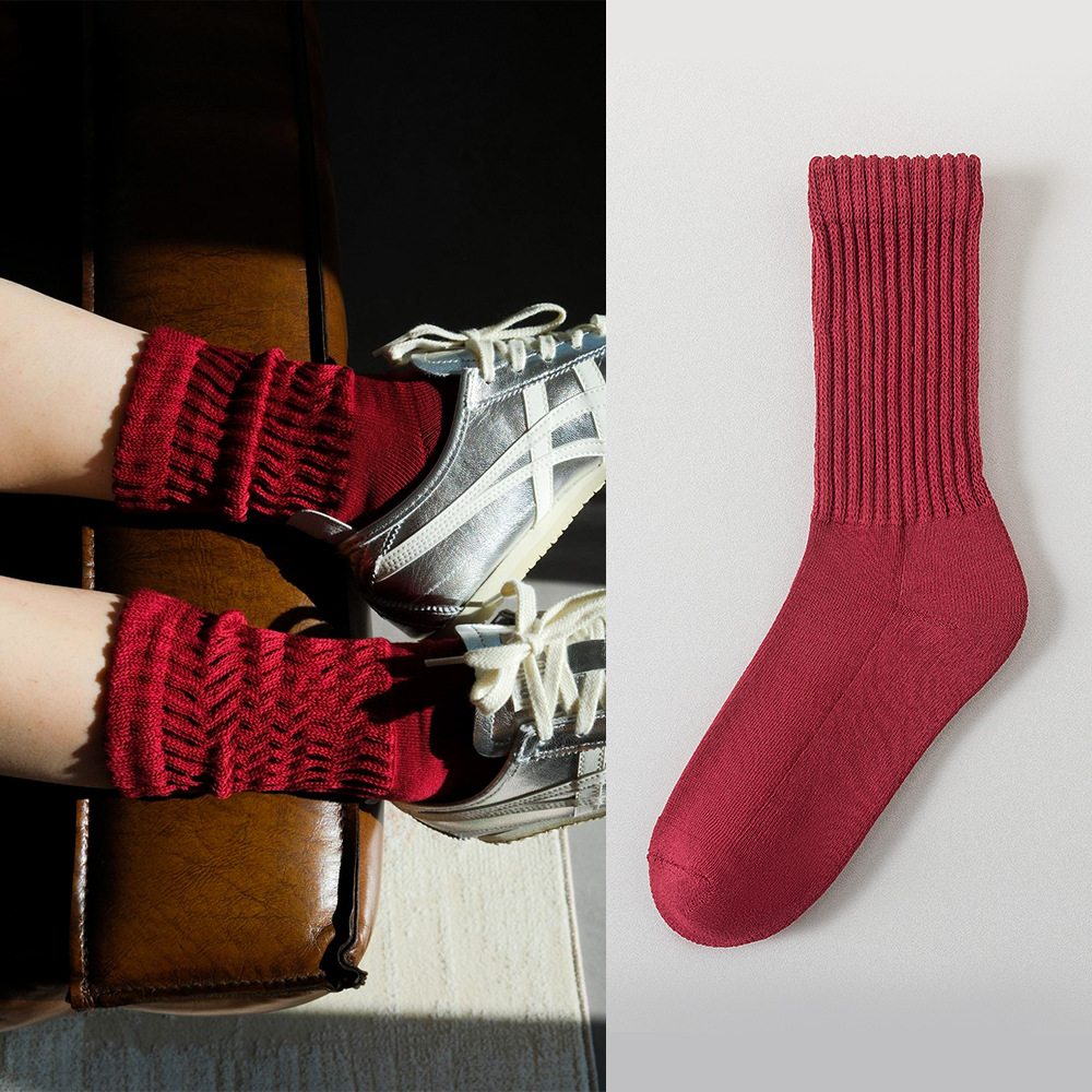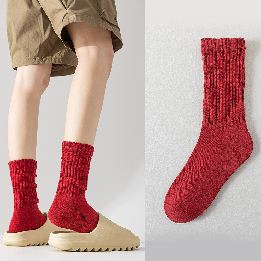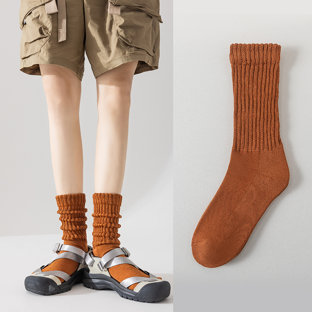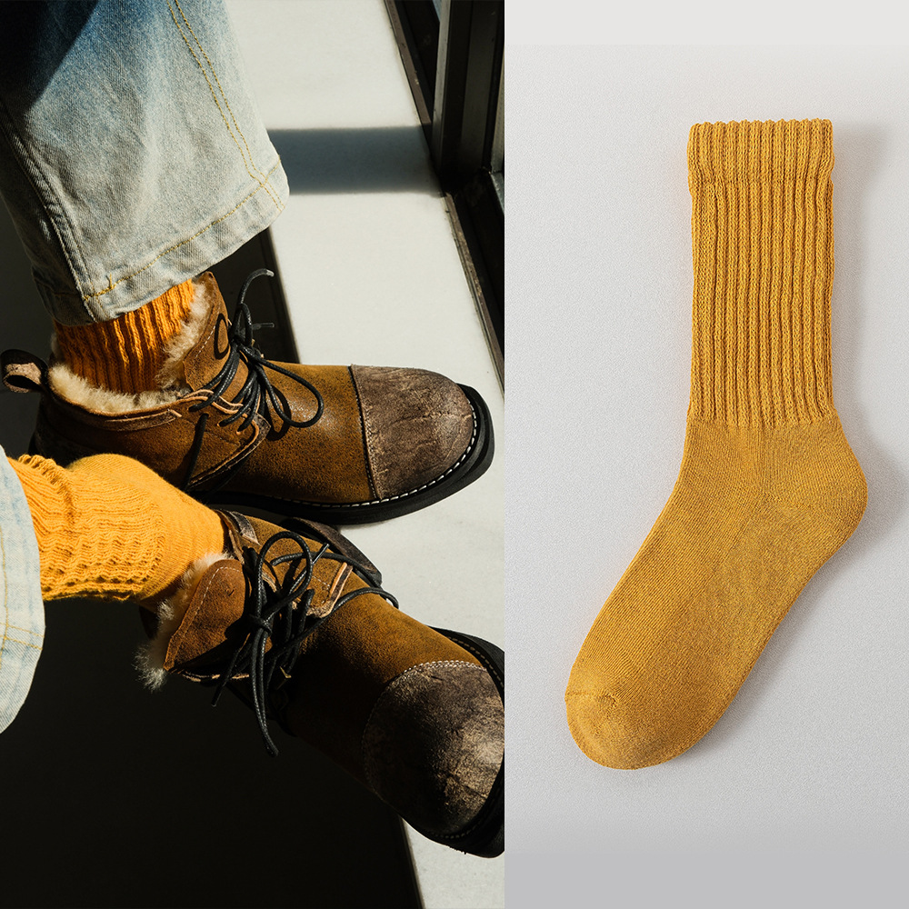 袜子女秋冬加绒中筒袜保暖吸汗毛圈袜黑色男加厚长袜透气棉袜