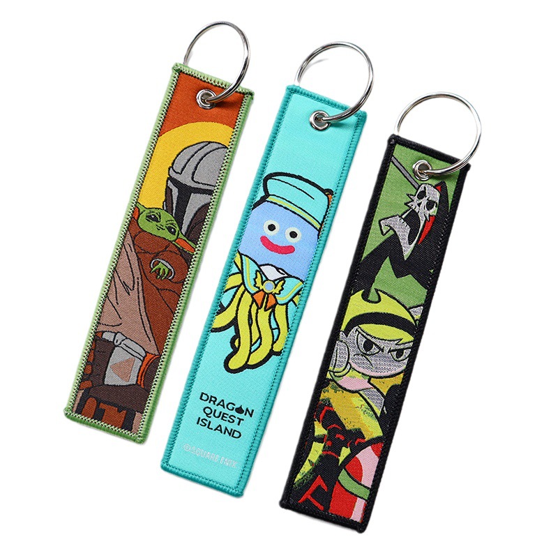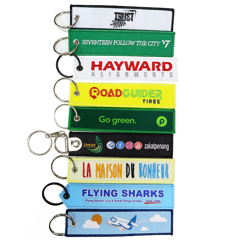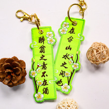 涤纶布刺绣包边钥匙扣飘带双面绣字母LOGO织带钥匙扣简约礼品挂件