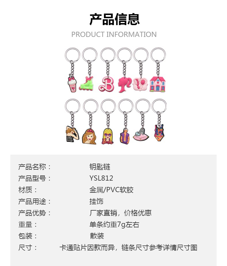 Barbie 芭比配件 跨境卡通钥匙扣 PVC软胶钥匙链包包挂件小礼品