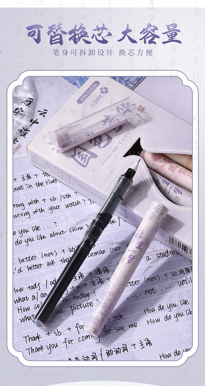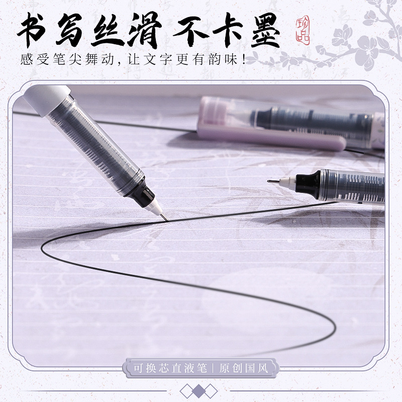 直液式速干走珠笔高颜值学生中性笔刷题笔可替换芯办公记事塑料笔