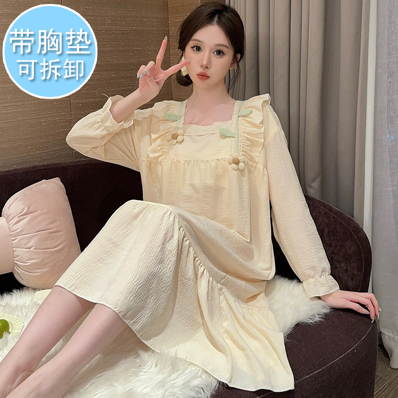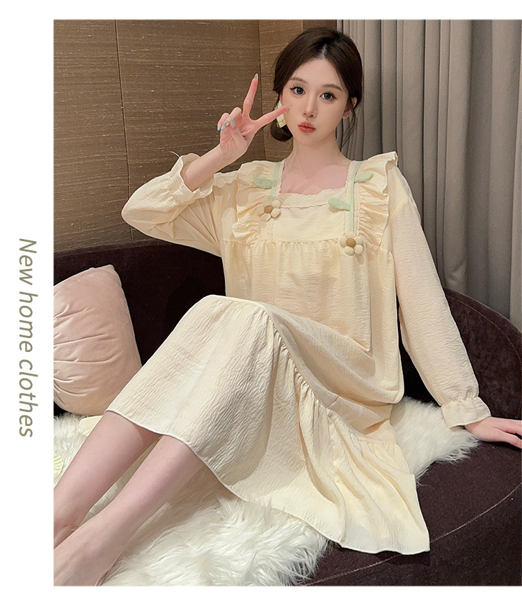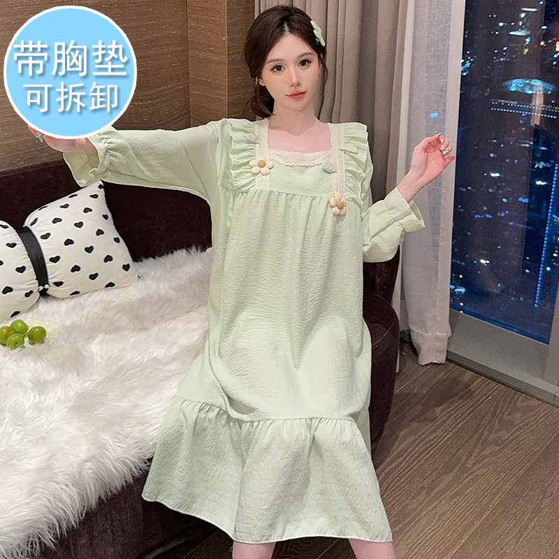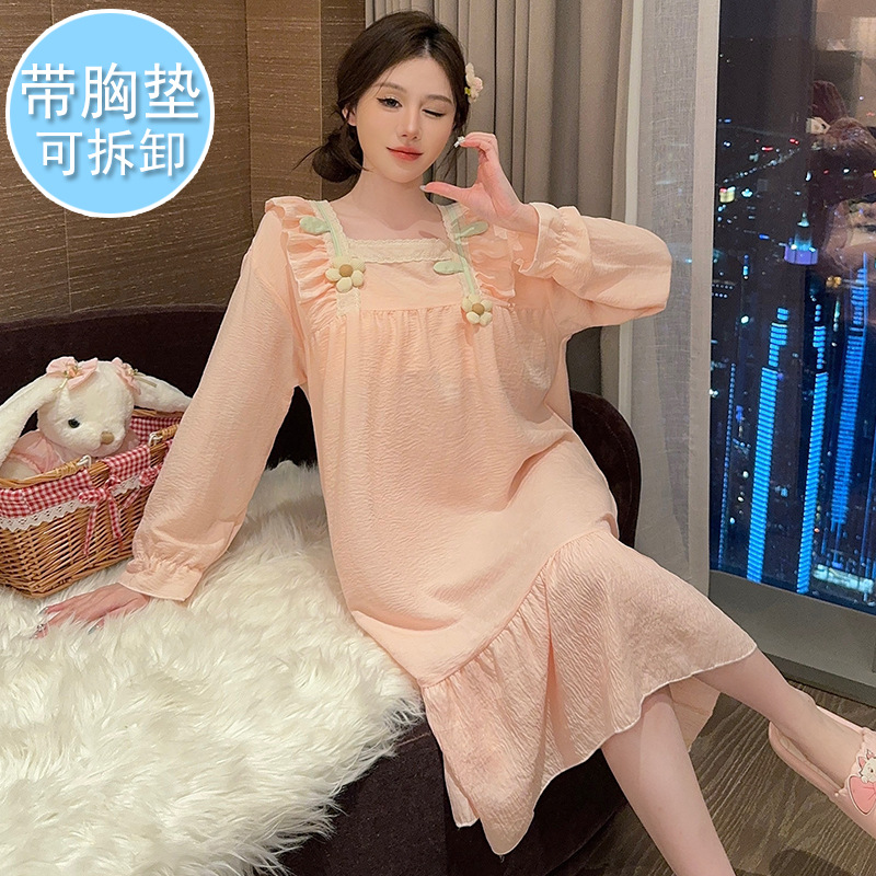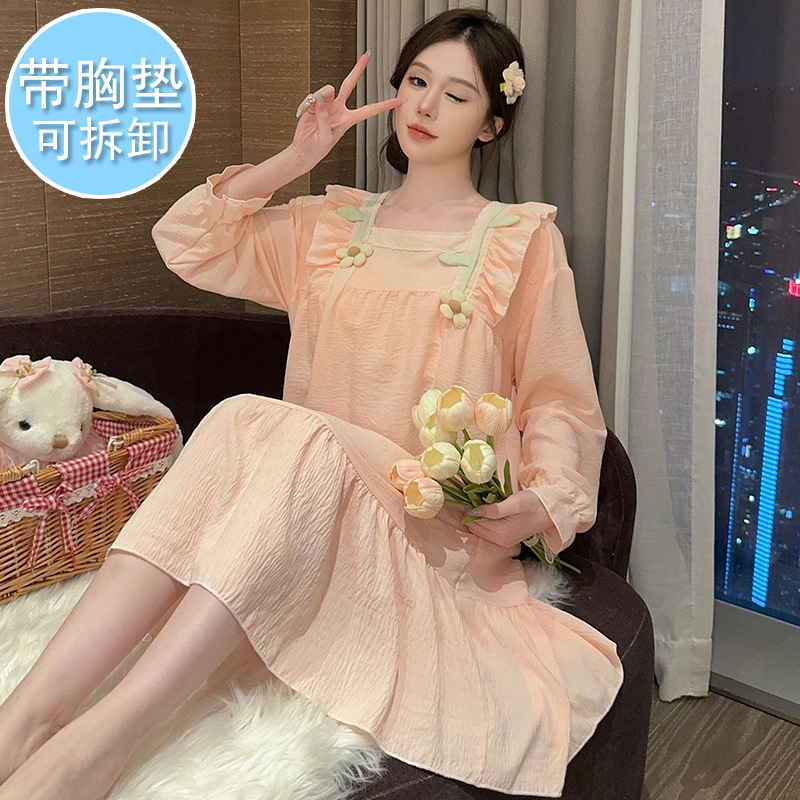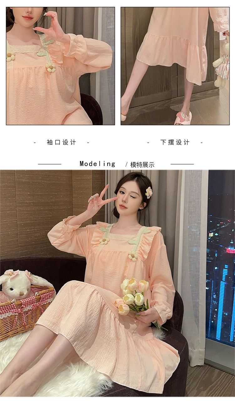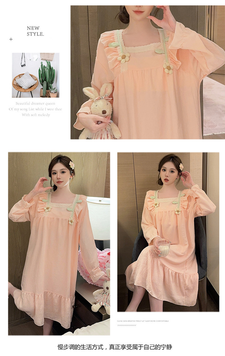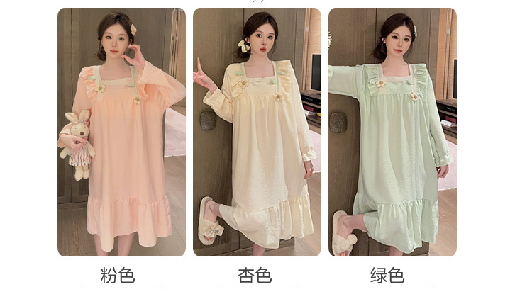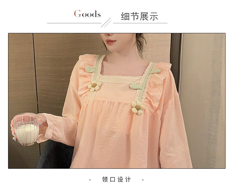 2024年新款睡衣女秋季云朵棉长袖甜美方领宫廷公主风加大码家居服