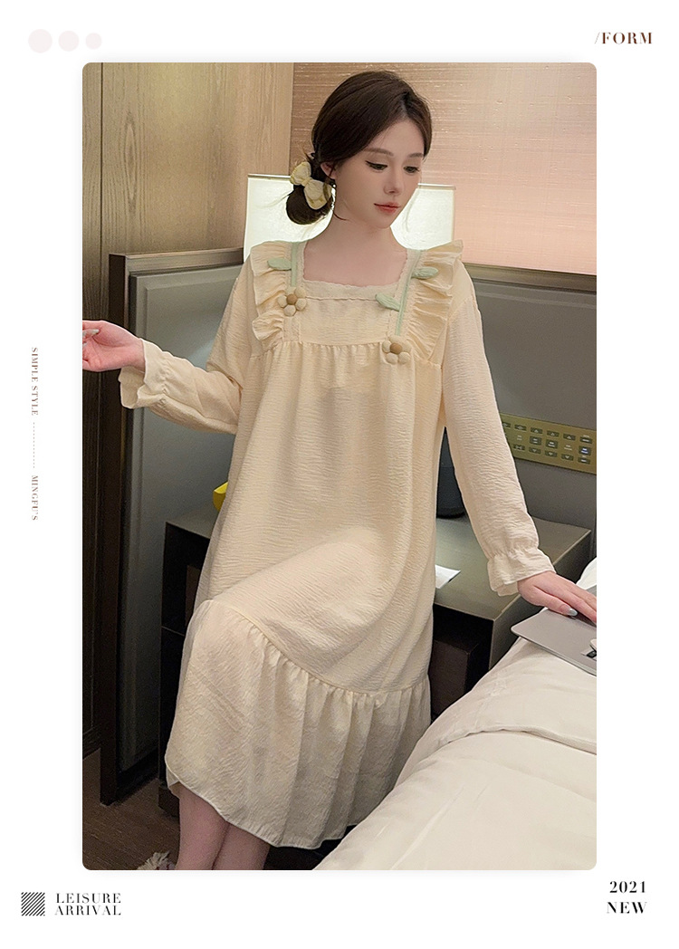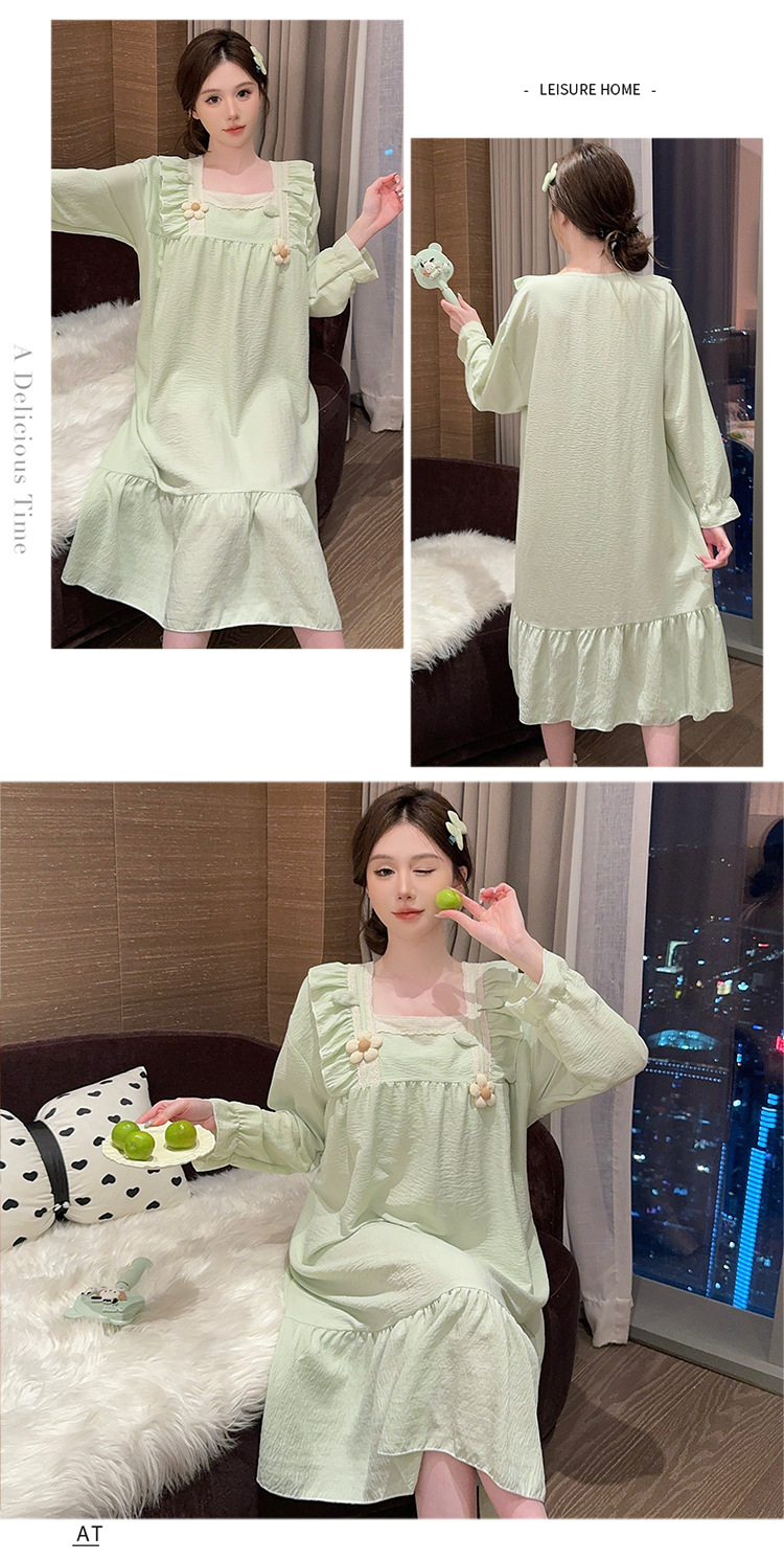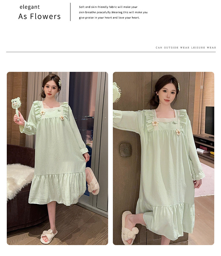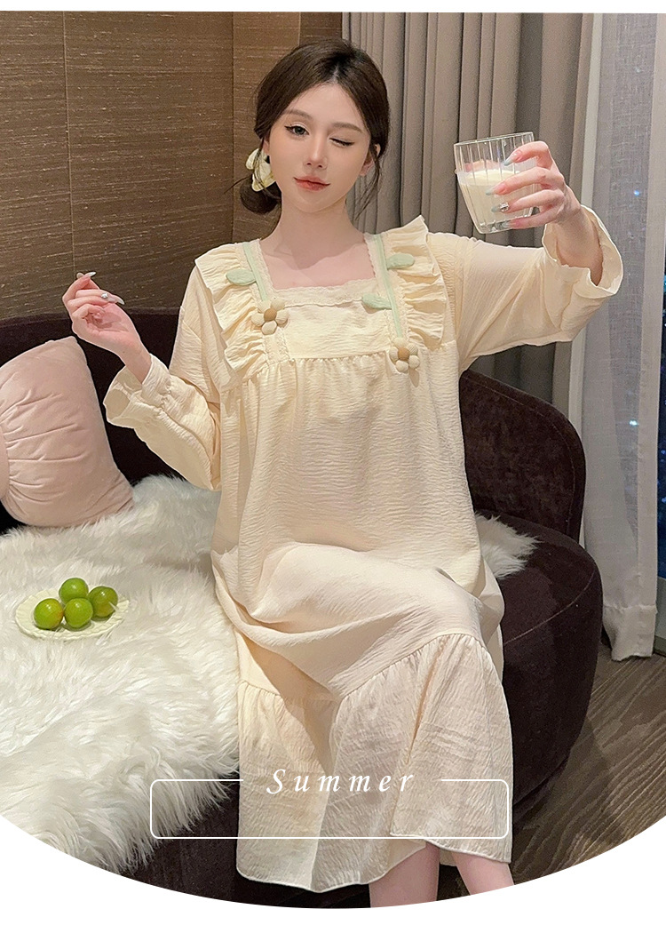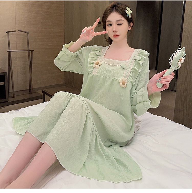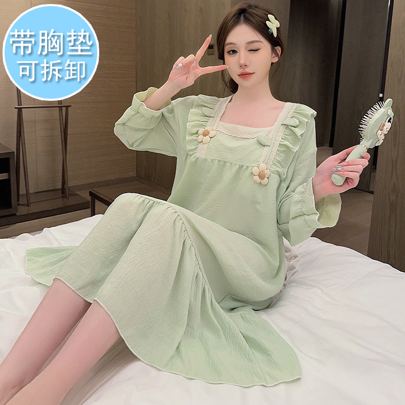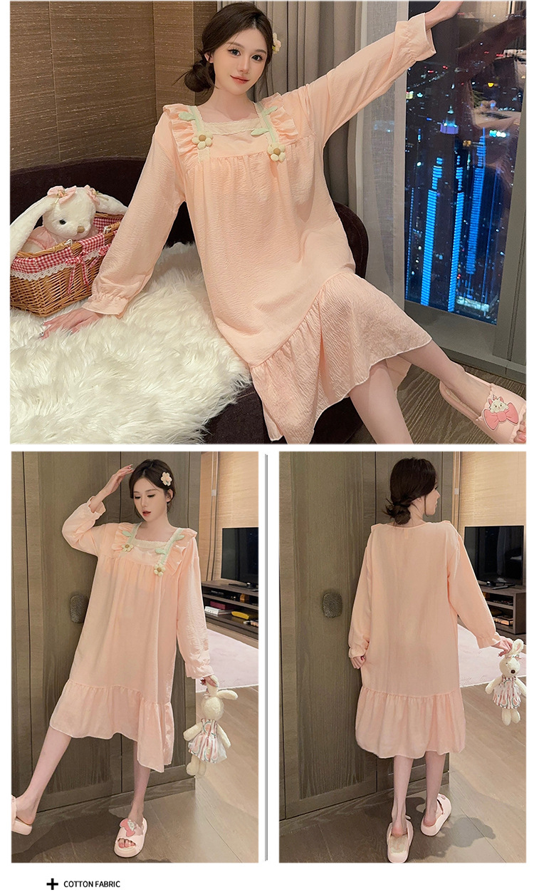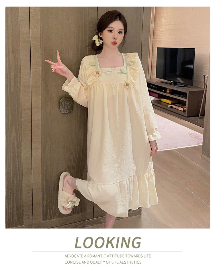 2024年新款睡衣女秋季云朵棉长袖甜美方领宫廷公主风加大码家居服