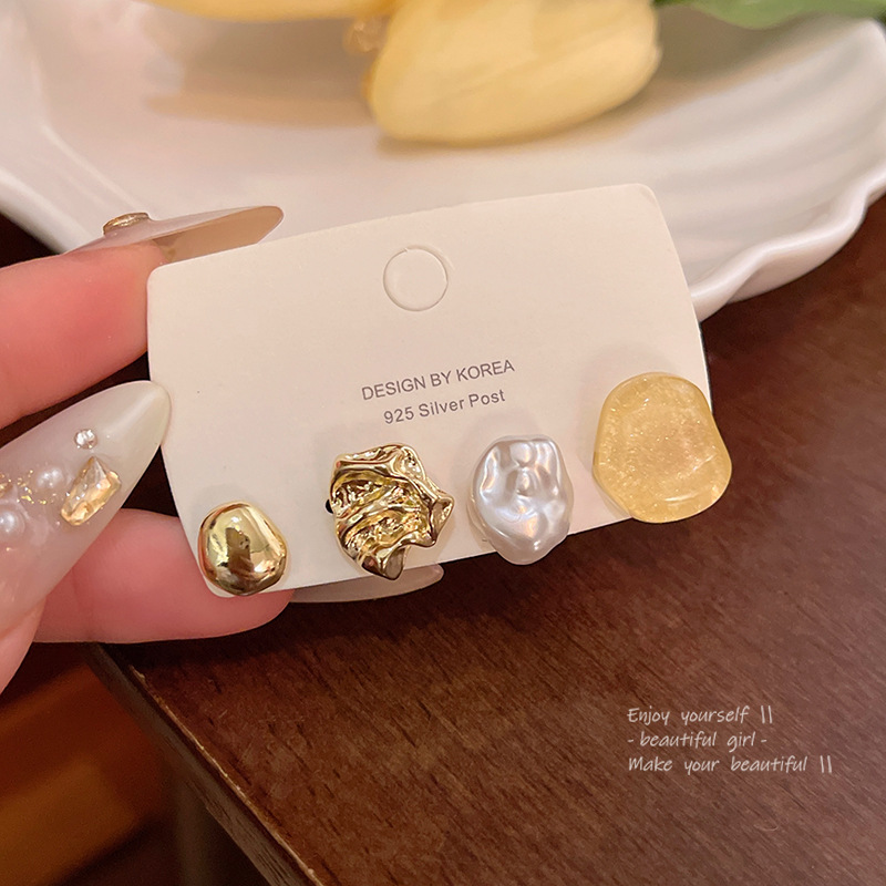 韩系独特设计感养耳洞套装耳钉耳饰不规则液态金属耳环女批发